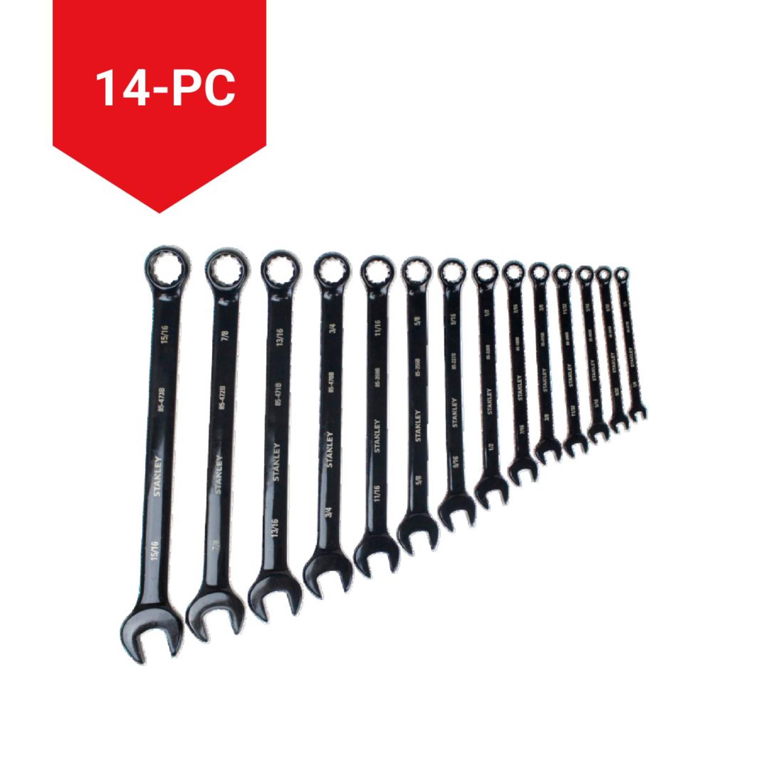 The Stanley Professional Grade Black Chrome Wrench Set features laser-etched markings for easy identification and a black chrome finish for superior rust and corrosion resistance. Built for durability, these wrenches are designed to be a long-lasting addition to your tool collection. The kit features a variety of sizes for versatile applications, and the ergonomic design of each tool offers a comfortable and secure grip during use.