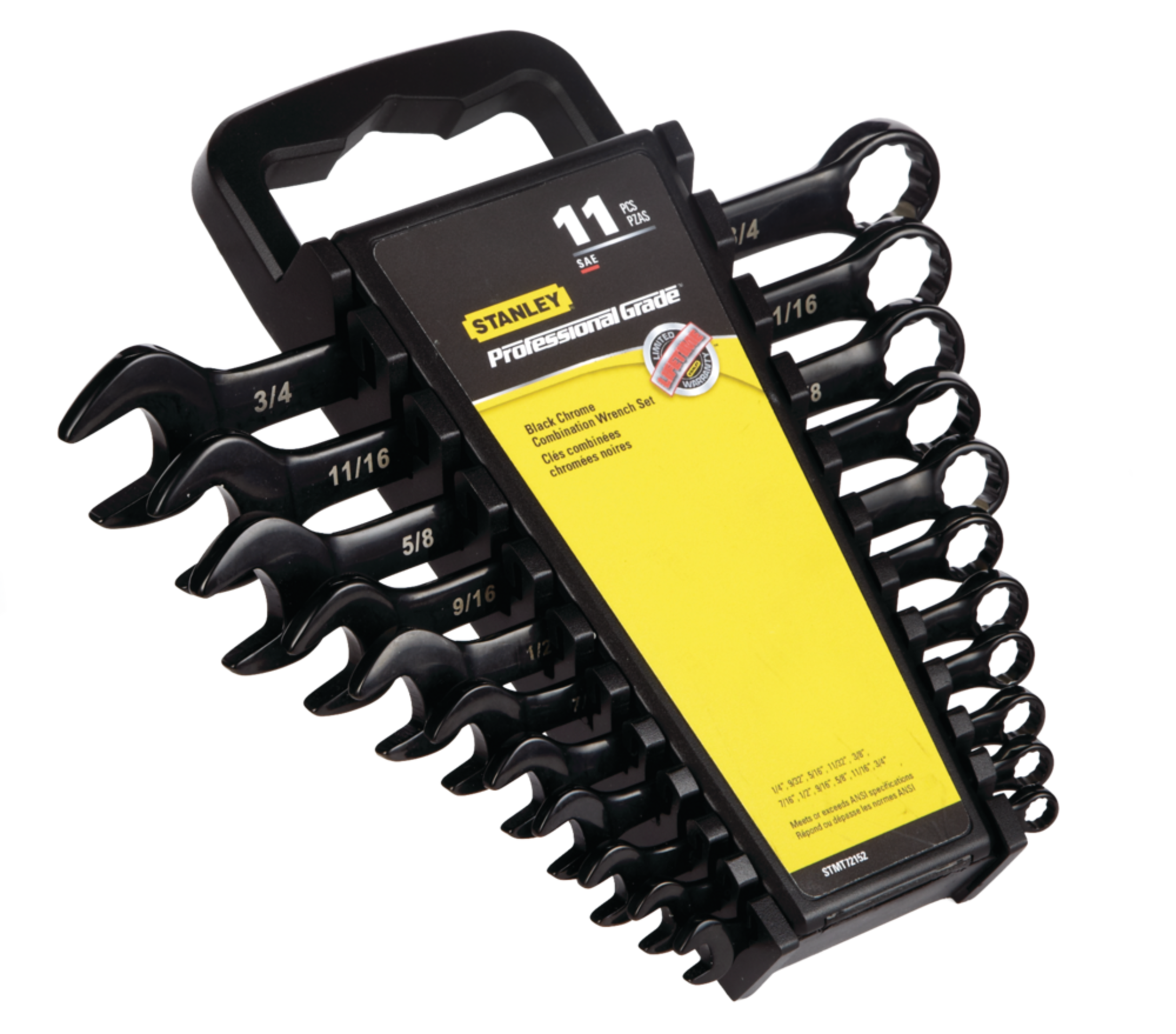 Stanley Black Chrome Wrench Set features durable black chrome plating for enhanced rust resistance