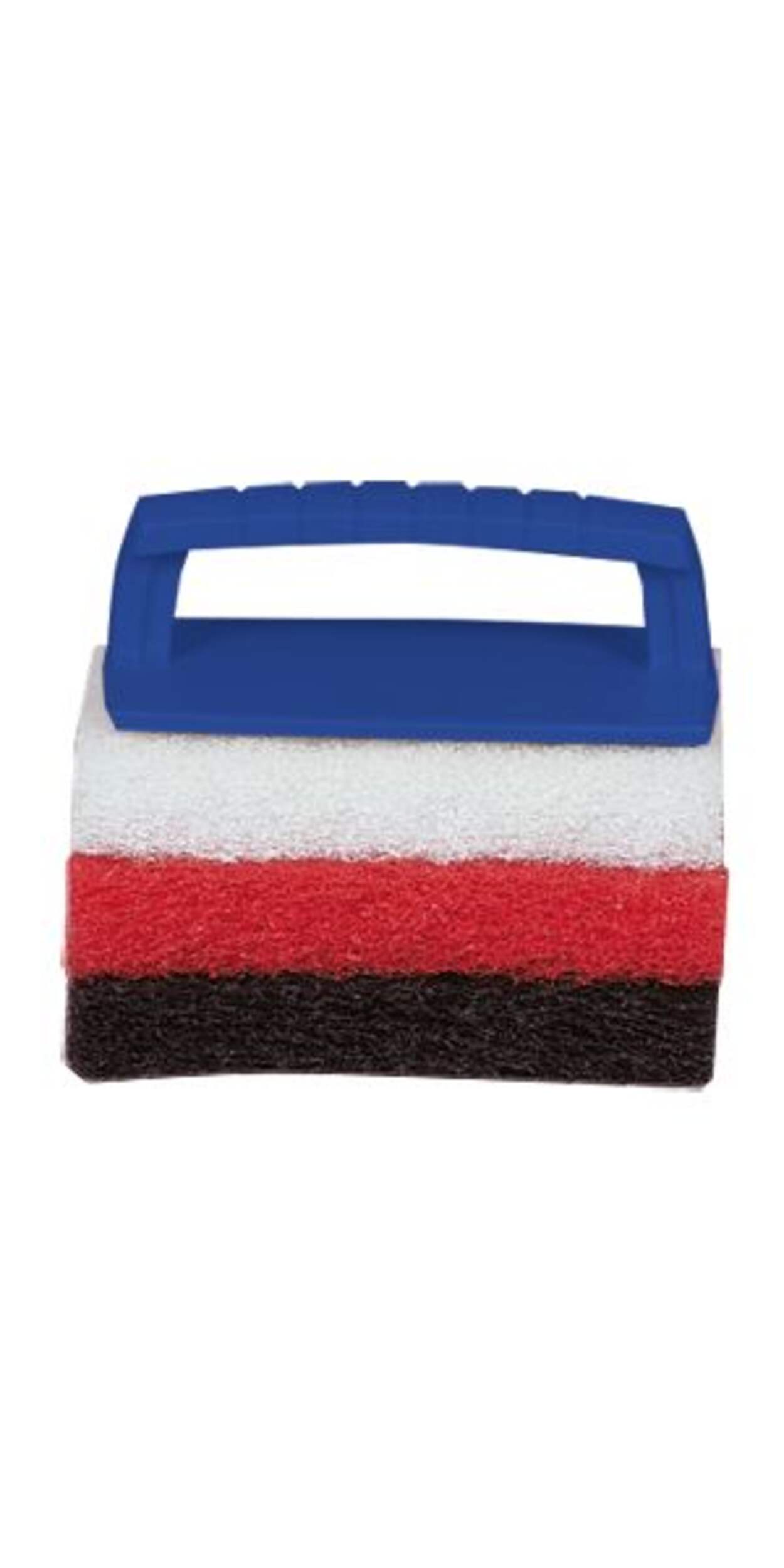 Star brite Scrub Pad Kit - Handle with 3 Pads provides everything you need for effective cleaning. This kit, available in regular and large sizes, contains three different textured pads – fine (white), medium (red), and coarse (black) – to handle any cleaning task. The soft white pad is perfect for delicate surfaces such as hard or soft vinyl, plastic, and upholstery. The medium red pad is ideal for general cleaning, including teak and other types of wood. The coarse black pad is made for tough jobs like cleaning concrete, raw metal, and stubborn deposits on the bottom of the boat. The set comes with a handy interchangeable handle that can easily attach to any pad and is also compatible with other scrub pads, making this kit a versatile choice for all your cleaning needs.