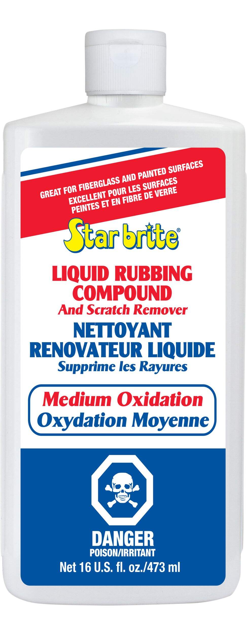Starbrite's liquid rubbing compound is your fast track back to a clean, restored surface. The convenient liquid formula removes medium oxidation and scratches from fiberglass, painted metal and more with either hand or buffer applications. After quickly restoring surfaces like boat hulls, trim or outboard motors, you'll be ready to hit the water again with a maintained finish using Starbrite's premium marine polish.