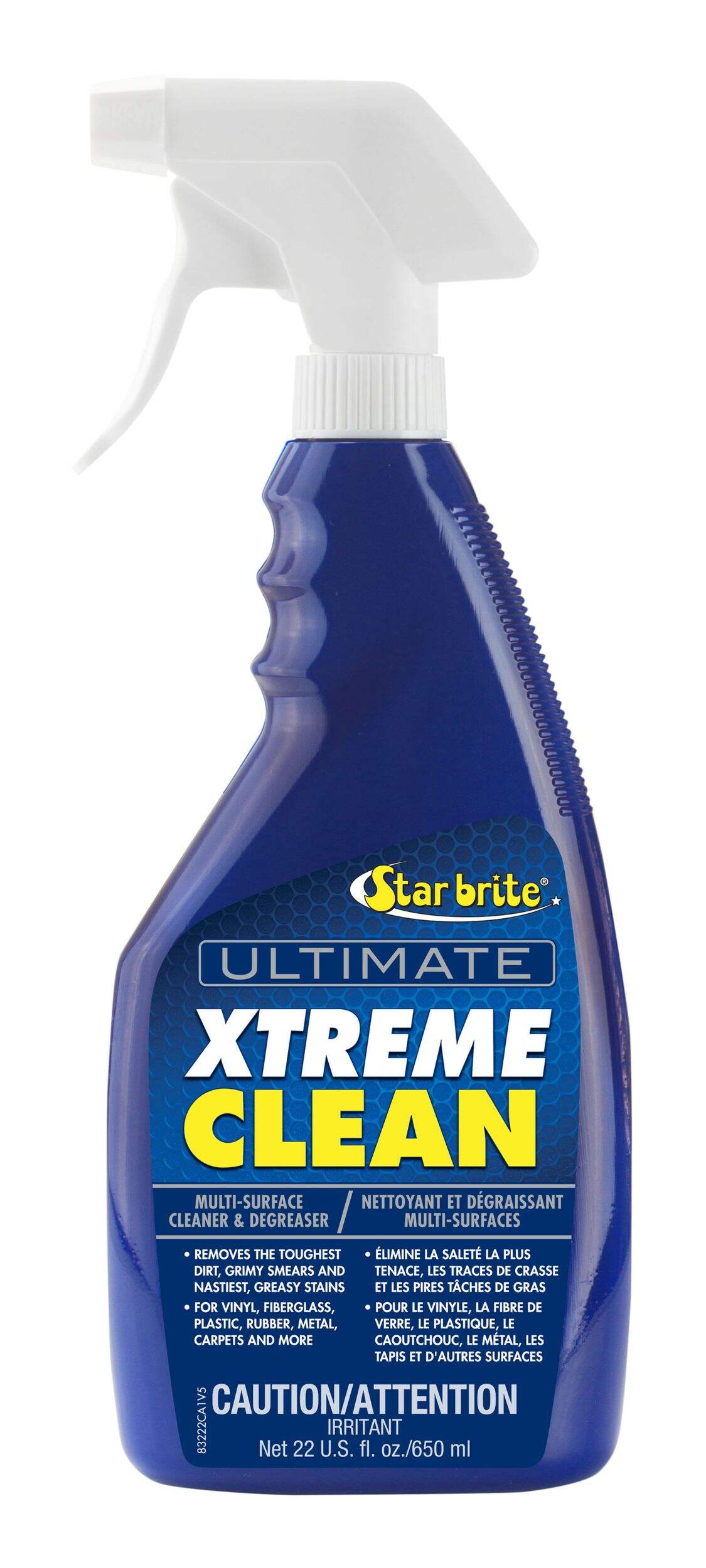 Star brite's ULTIMATE Xtreme Clean is formulated with the latest technology ingredients to be the toughest crud-buster ever. The special chelating agents attack road grime, bug bits, bird deposits, greasy smears and more, breaking the bond that holds them to the surface so they can be wiped away without heavy scrubbing. However, unlike most all-surface cleaners that use cheap, harsh ingredients, Xtreme Clean does not contain caustic, dangerous chemicals that can damage the finish. Xtreme Clean is safe for use on all metal, fiberglass, plastic, chrome, stainless, wrapped, leather and rubber surfaces.