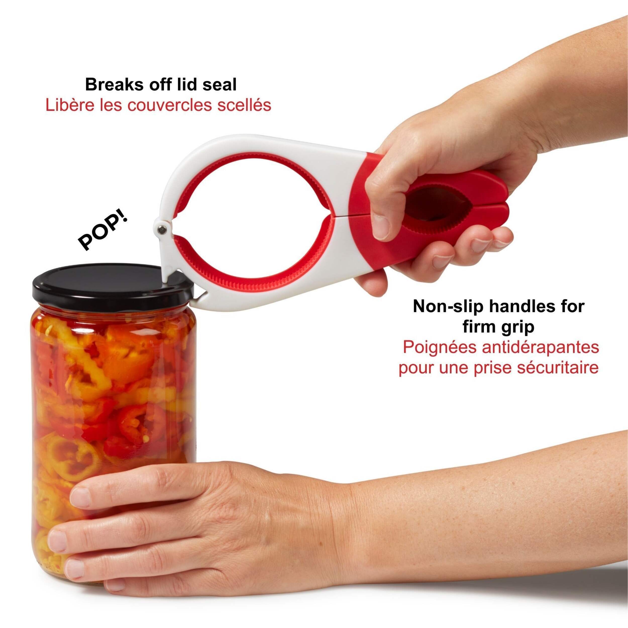 With its ingenious engineering and user-friendly features, this versatile tool ensures hassle-free opening every time. Equipped with non-slip handles, it guarantees a secure and firm grip, granting you complete control. Additionally, its innovative seal popper allows you to effortlessly break off lid seals using minimal pressure.