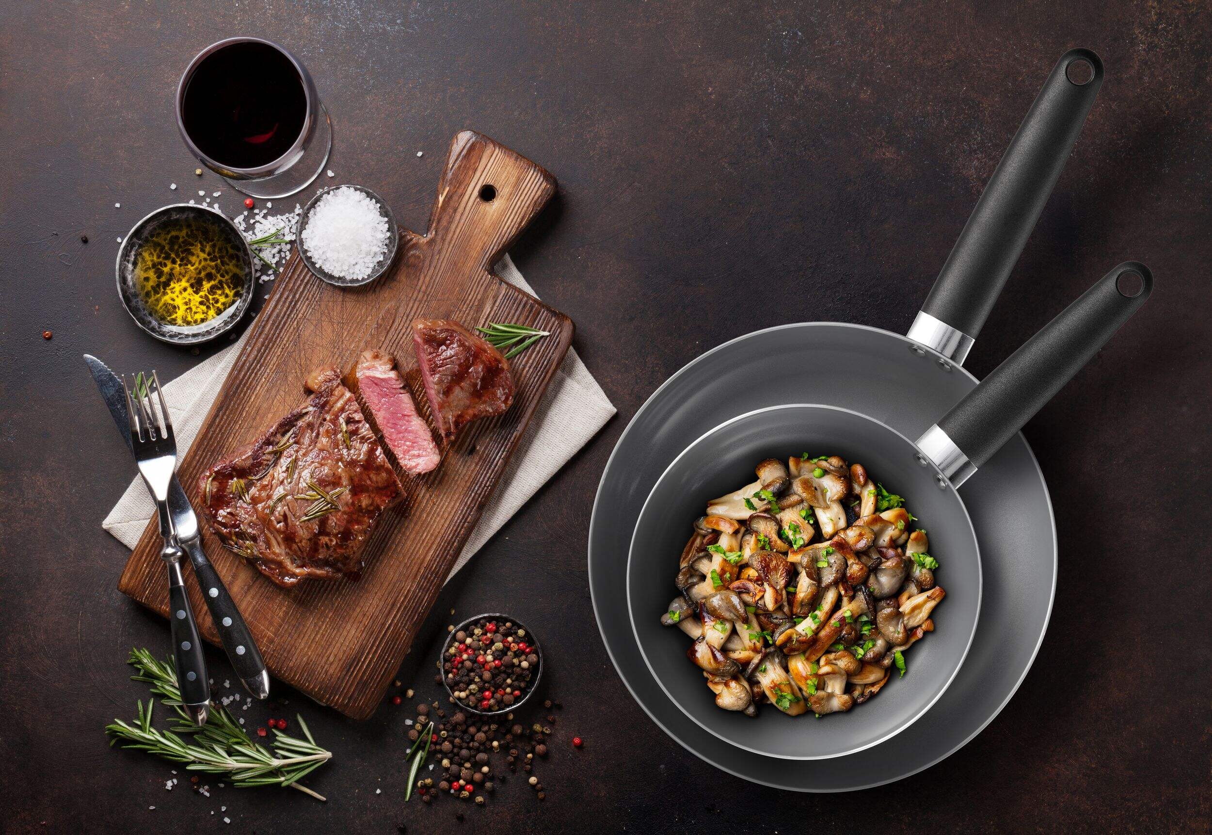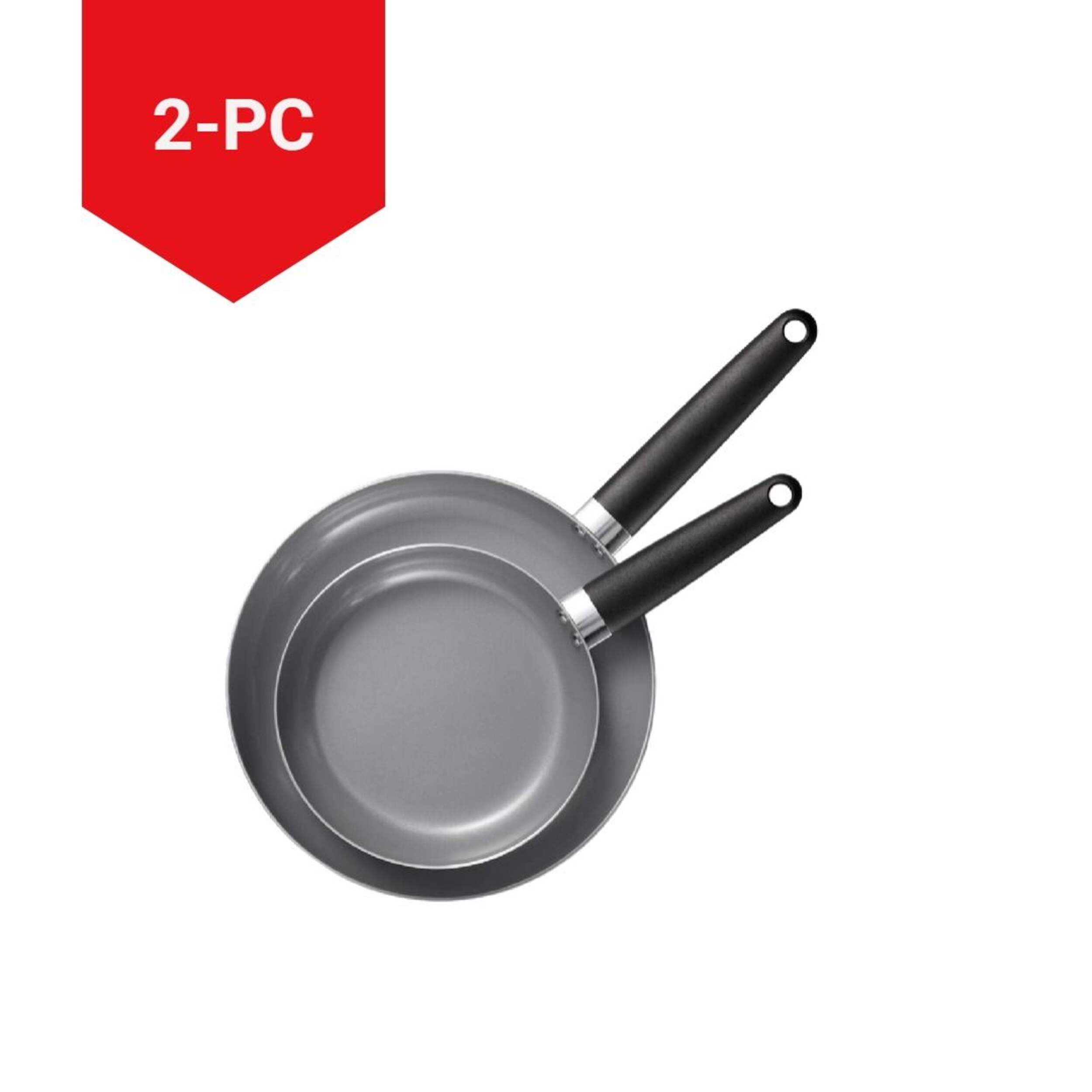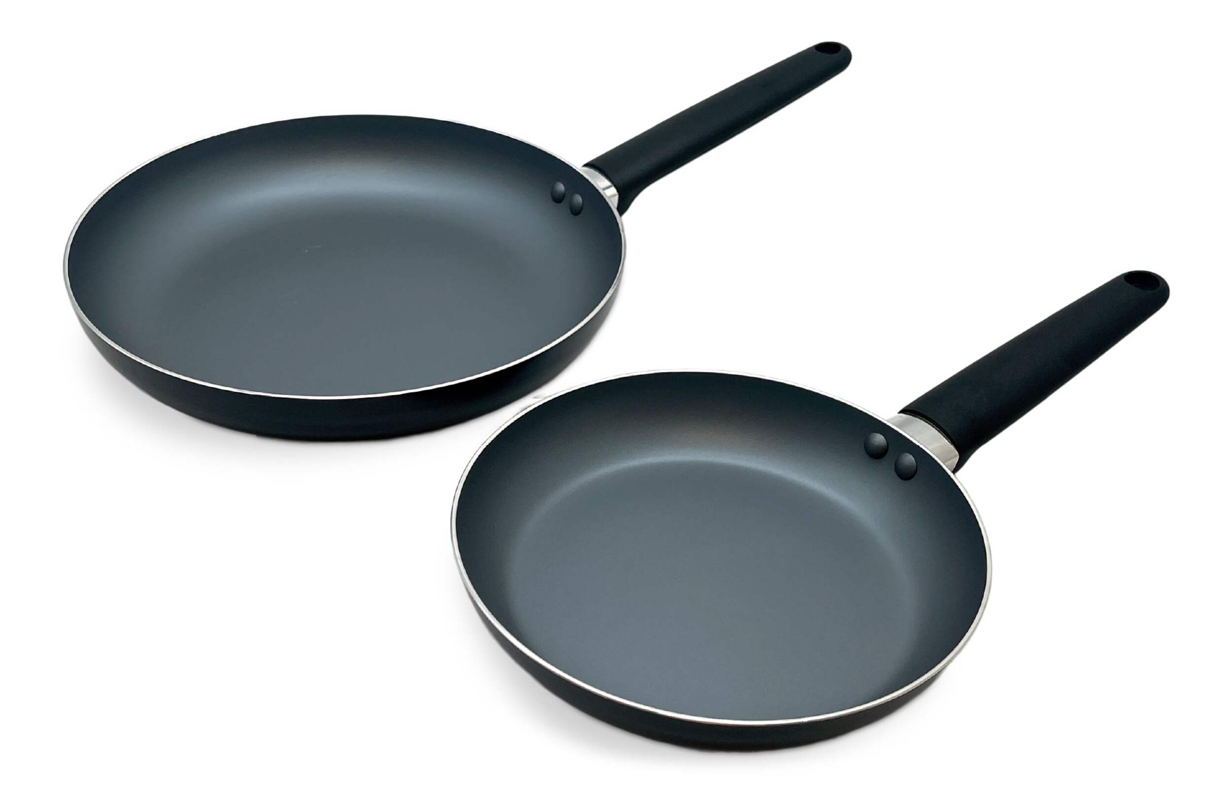 The Starfrit Frying Pan Set includes two durable pans perfect for everyday cooking. With an aluminum base, these pans ensure quick and even heat distribution for consistent results. The Bakelite handles are securely riveted, providing a firm and comfortable grip. Oven safe up to 350°F/176°C and dishwasher safe, these pans offer convenience and easy cleanup. The non-stick surface not only prevents food from sticking but also makes the pans incredibly easy to clean. This 2-piece frying pan set from Starfrit is a versatile addition to any kitchen.