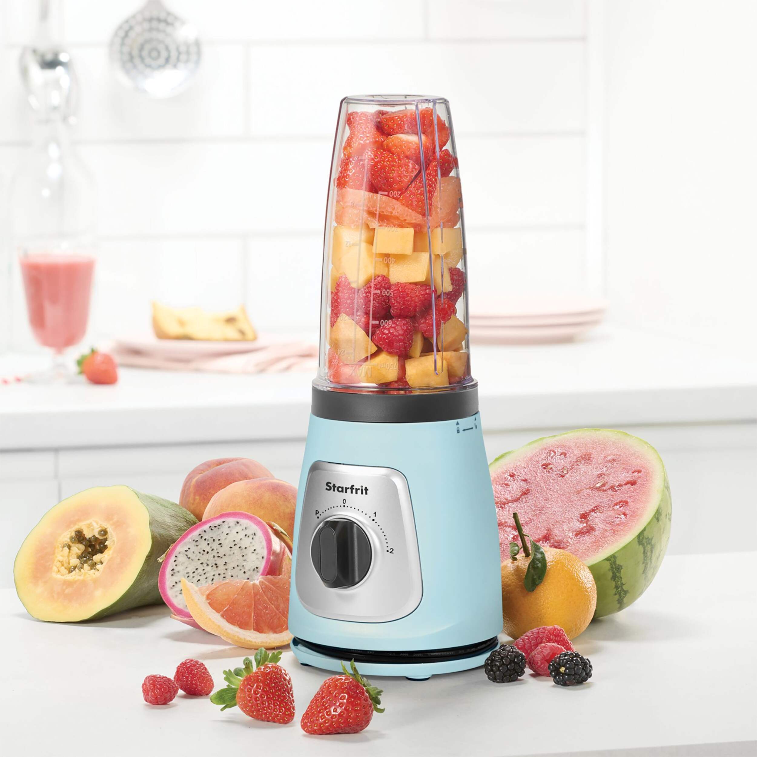Blend your favourite smoothies and shakes effortlessly with the Starfrit Personal Blender in Light Blue. This compact and stylish blender offers customizable blending options to suit your needs, making it perfect for quick and easy meal prep. Its sleek design and practical features make it a must-have for any kitchen.