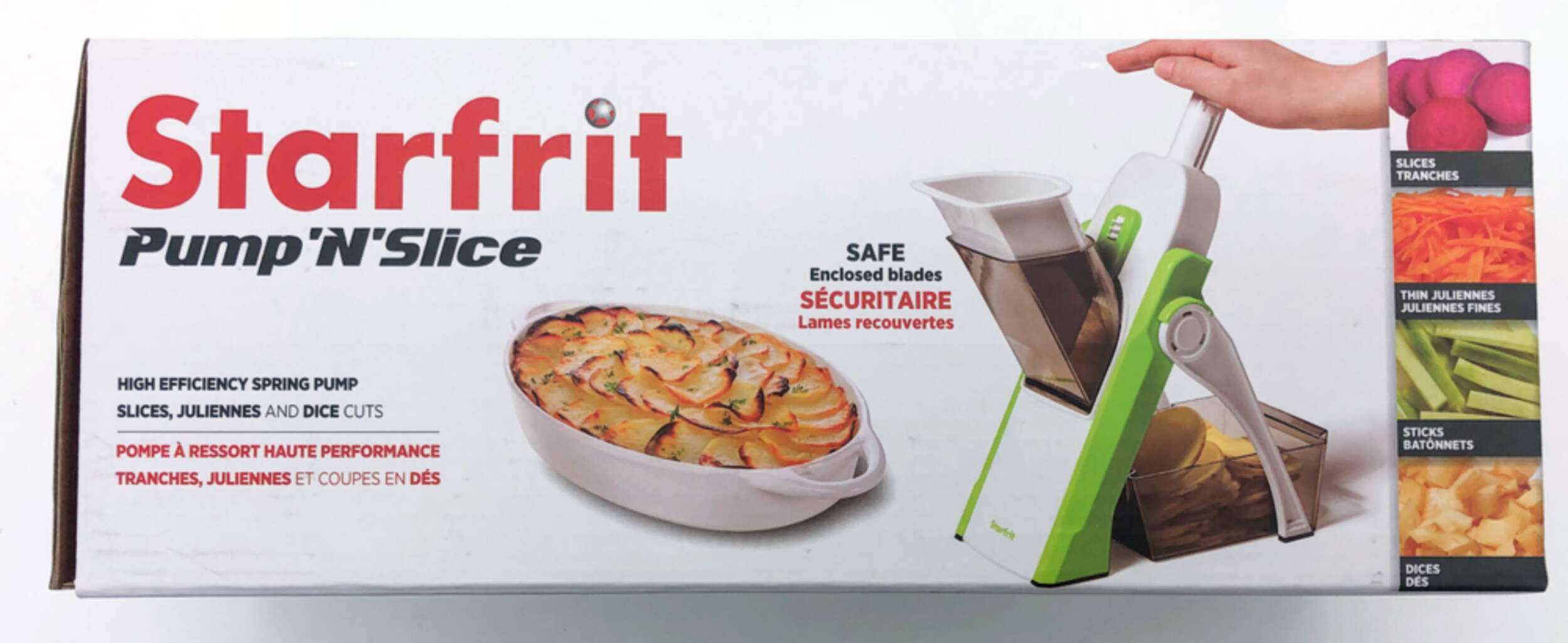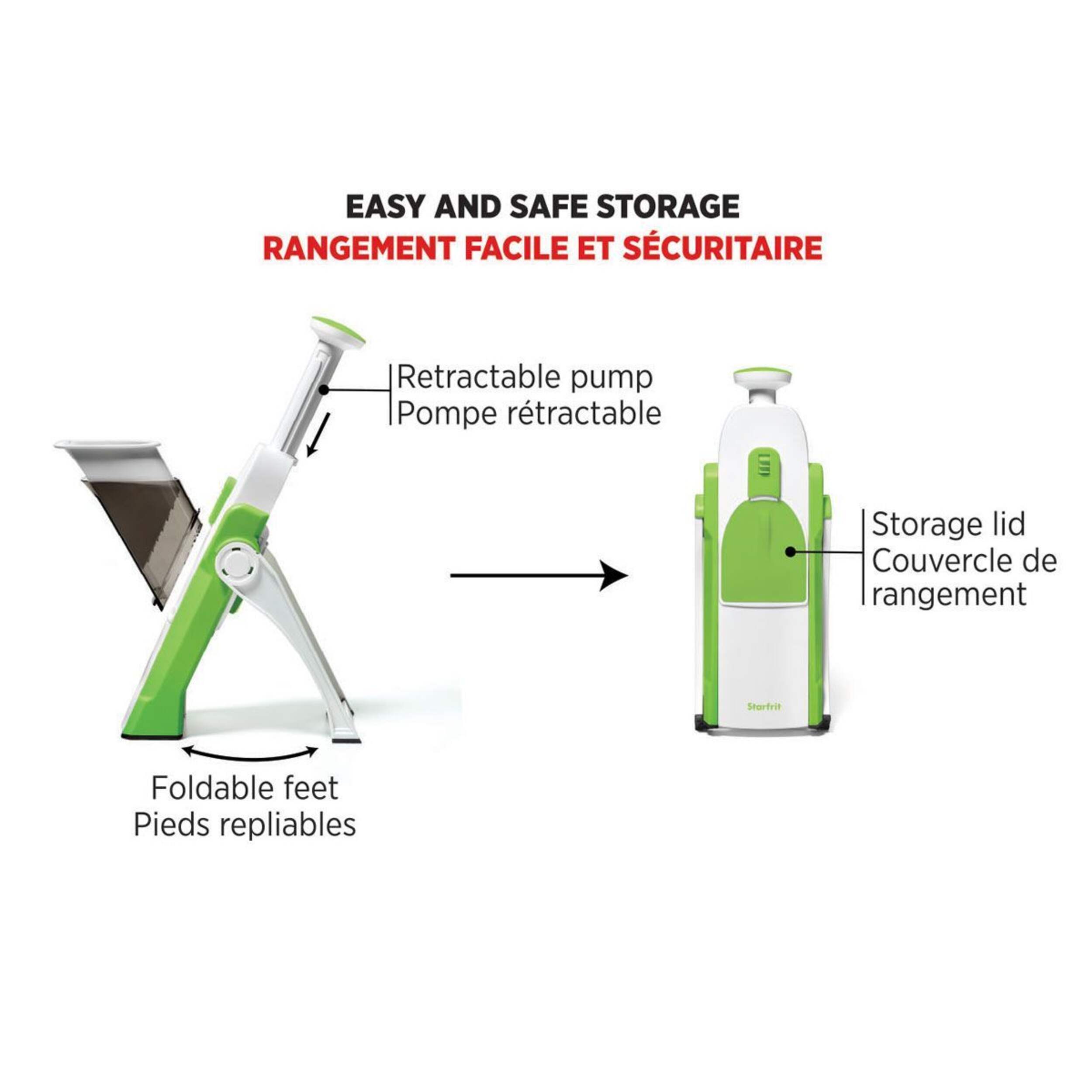 Innovative and easy to use, this Starfrit Pump-N-Slice Chopper & Slicer is a must-have tool for your kitchen. Designed to cut up a range of fruits and vegetables quickly and easily, this chopper features a container with pump handles for perfectly sliced pieces. The stainless steel blades are ultra-sharp, ensuring clean and precise cuts without the hassle of traditional slicing methods, allowing you to prep for cooking faster. This Starfrit chopper and slicer also has a compact size, so it's easy to store, with dishwasher-safe parts for simple clean-up.