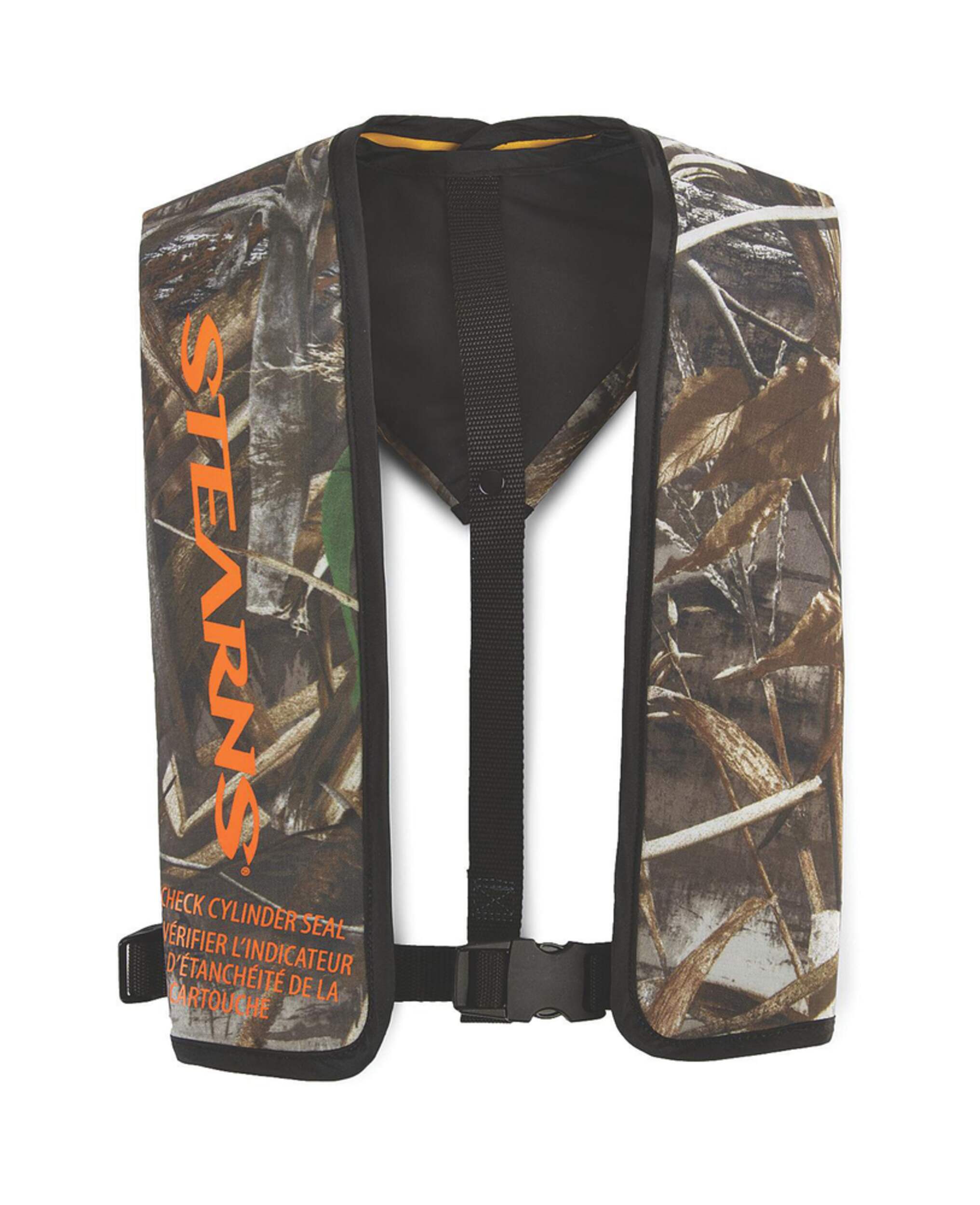 Stearns Camo Manual Inflatable Personal Flotation Device is coloured in realtree Max-5 camo; perfect for those hunting trips