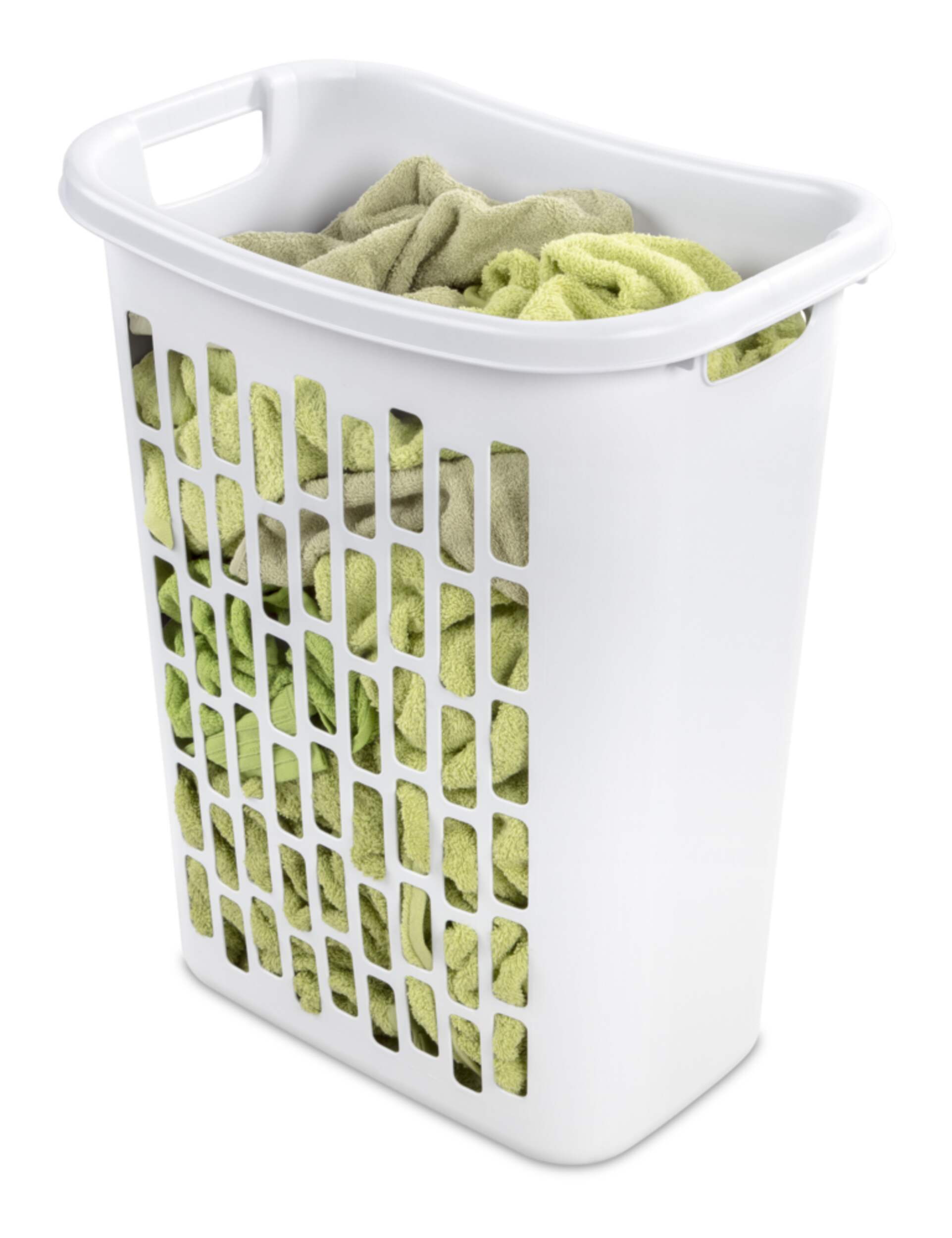 Keep dirty laundry out of sight with the Sterilite Open Rectangular Laundry Hamper
