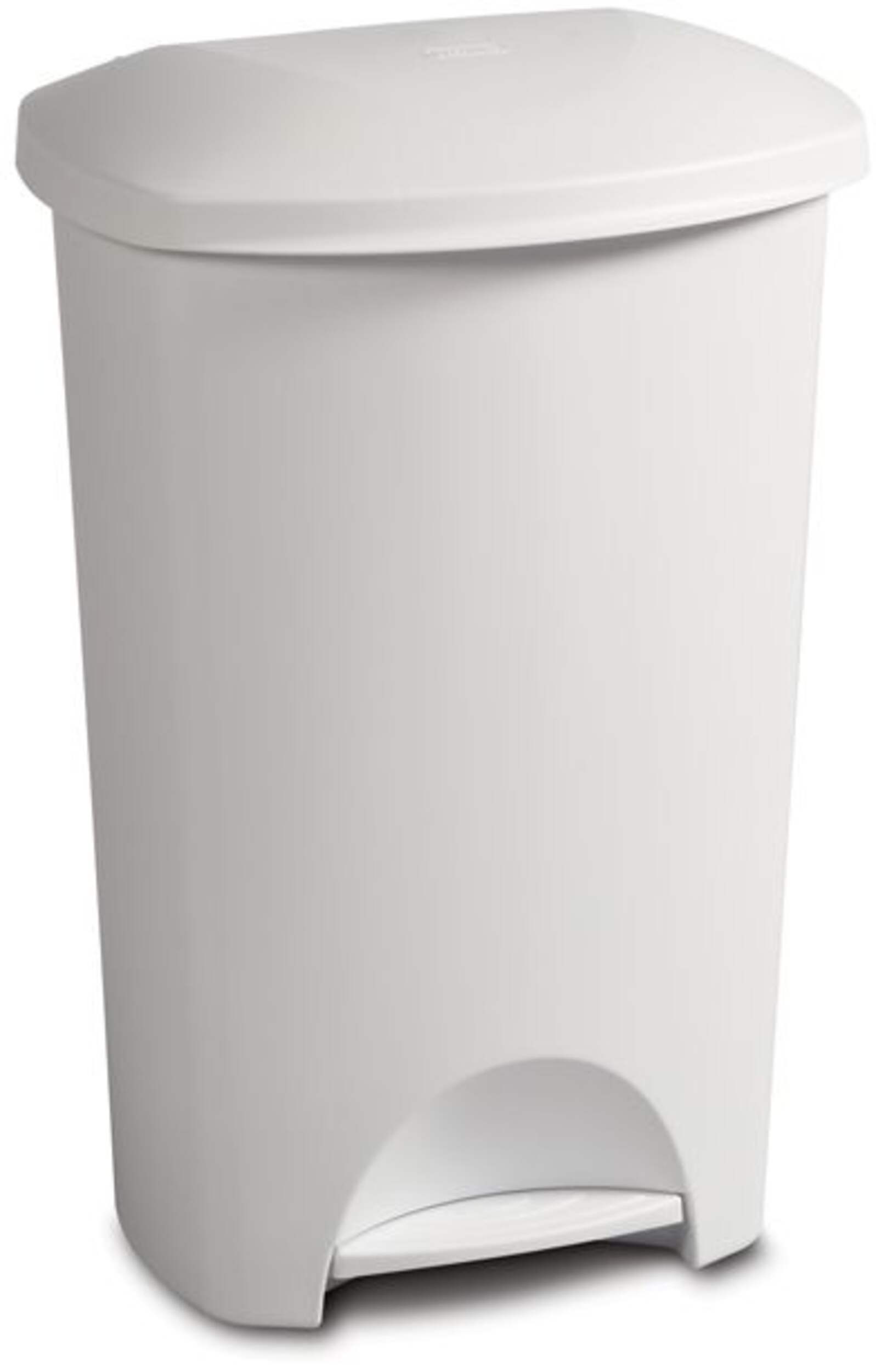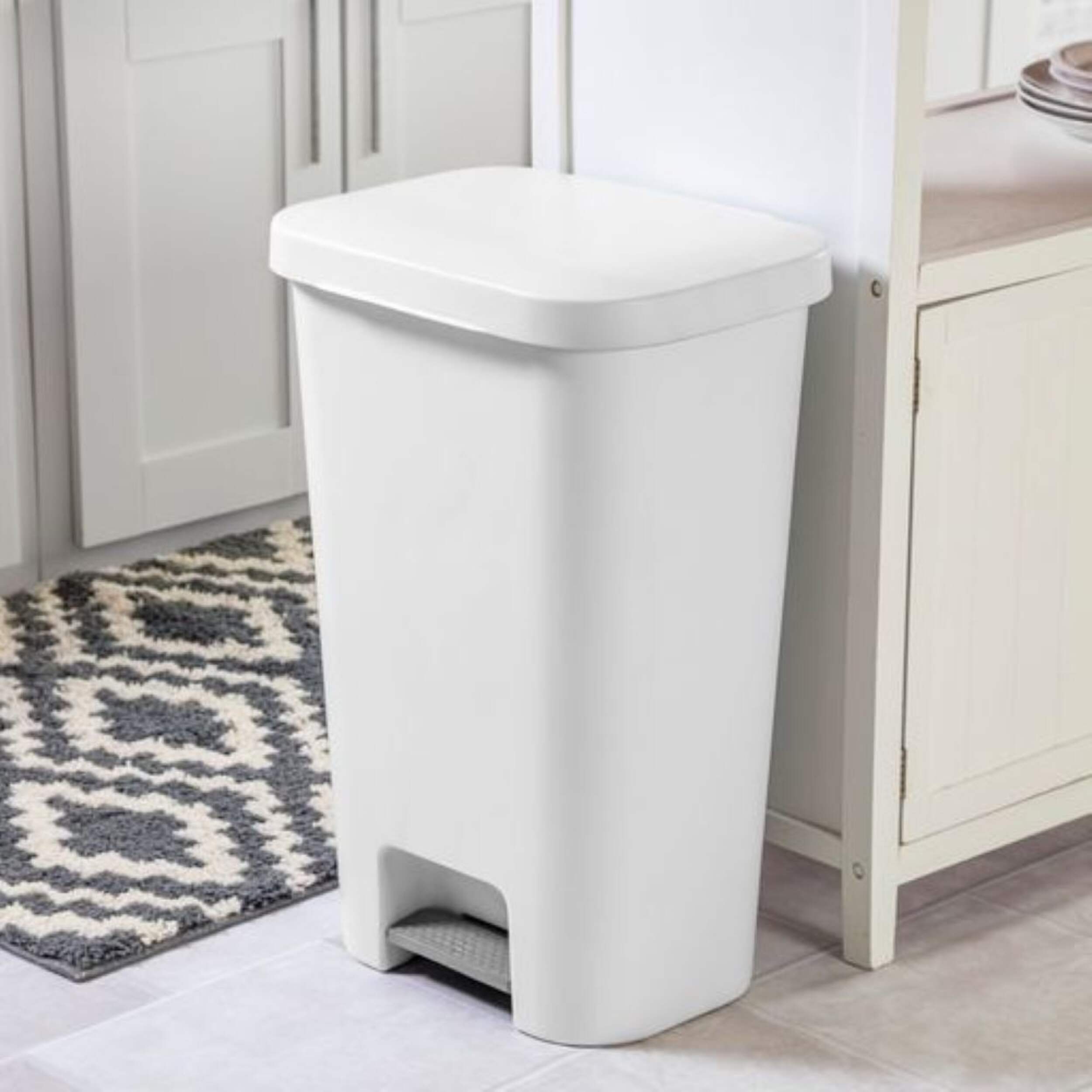 The Sterilite Plastic Rectangular Step Garbage Can brings modern style to any kitchen with its sleek, space-saving design. Its textured foot pedal allows for easy, hands-free opening, while the wide lid opening makes changing the trash liner simple. The oversized lid conceals the bag for a clean look, and the comfort handle on the back makes it easy to lift and move. The simple-to-clean surface of this garbage can makes it easy to keep your kitchen looking neat.