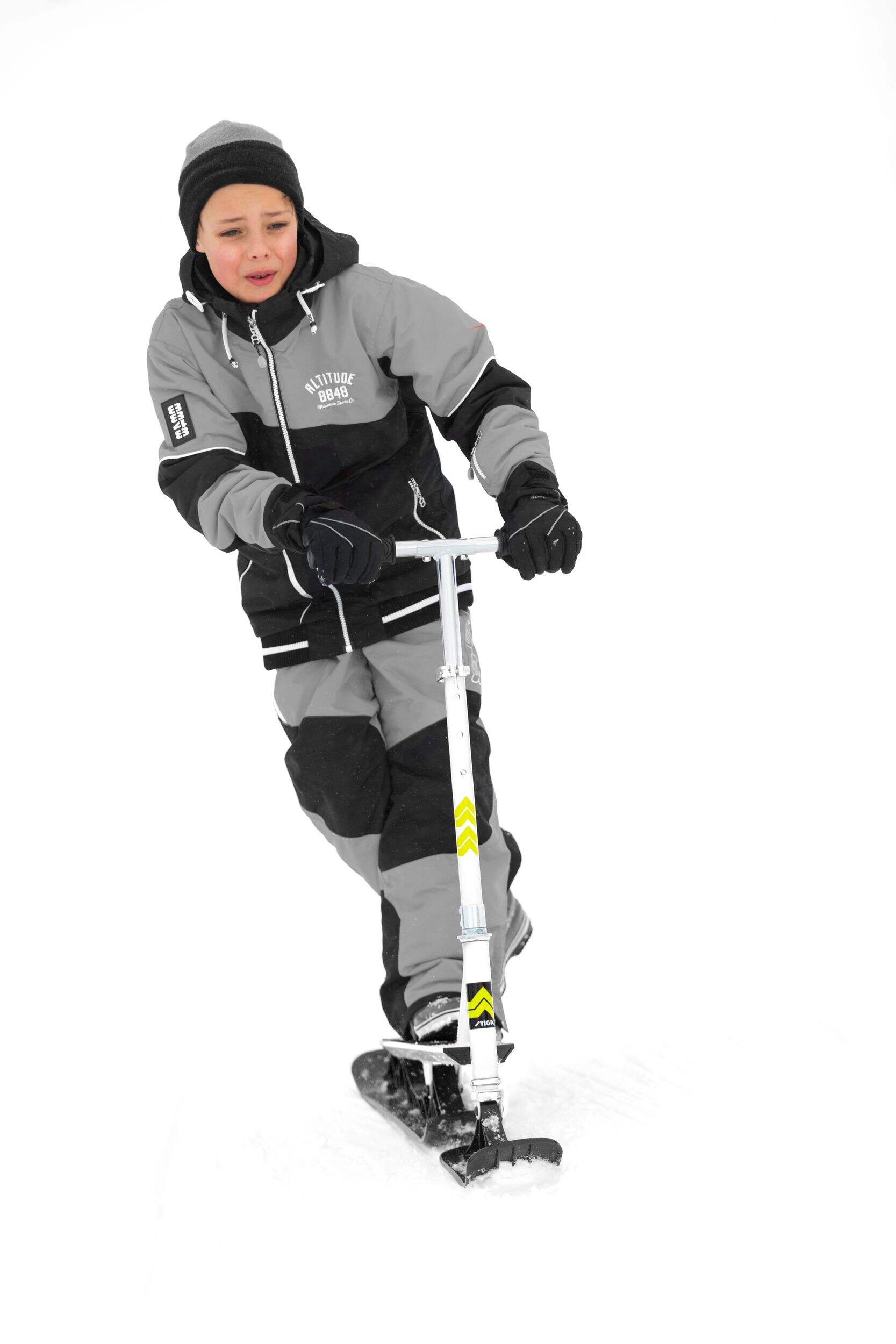 The Stiga Snow Kick Free Scooter is perfect for winter fun, designed for easy navigation on snowy trails. Its active rear ski enhances snow contact, ensuring a smooth ride on uneven surfaces. The carving-shaped front skis are made from durable high-density polyethylene and deliver excellent turning and performance. With a non-folding design for added strength and an angle-adjusted front fork for comfort, this scooter lets you glide effortlessly through the winter wonderland.