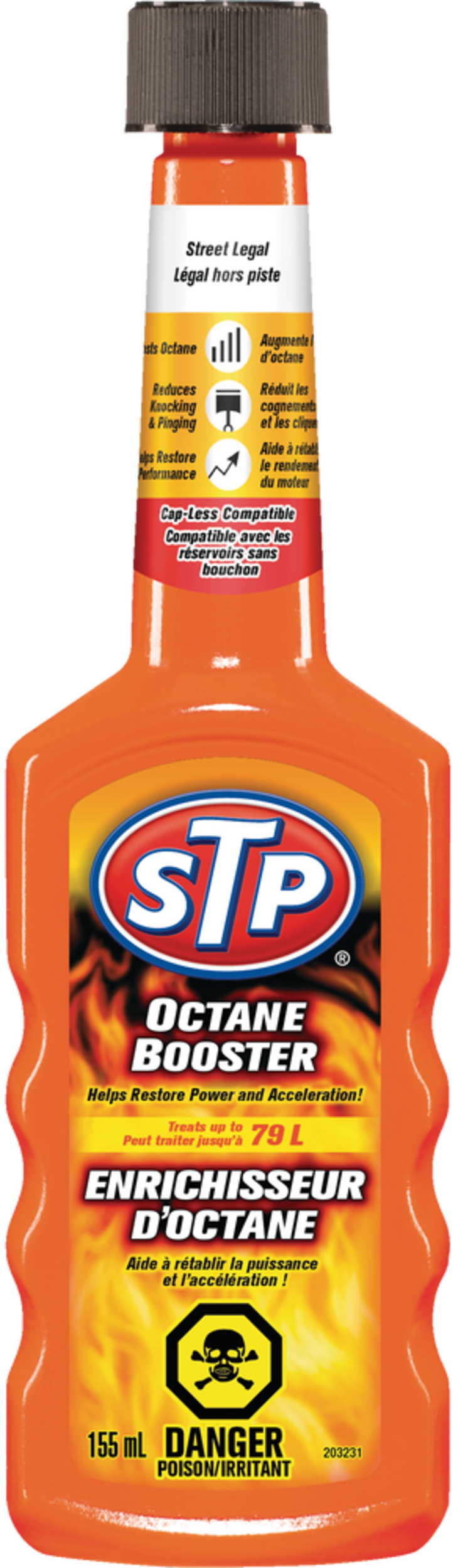 Remontant d'octane STPSTP® Octane Booster helps restore horsepower by removing deposits and cleaning the fuel intake system. Pour one bottle into the fuel tank every fill up.