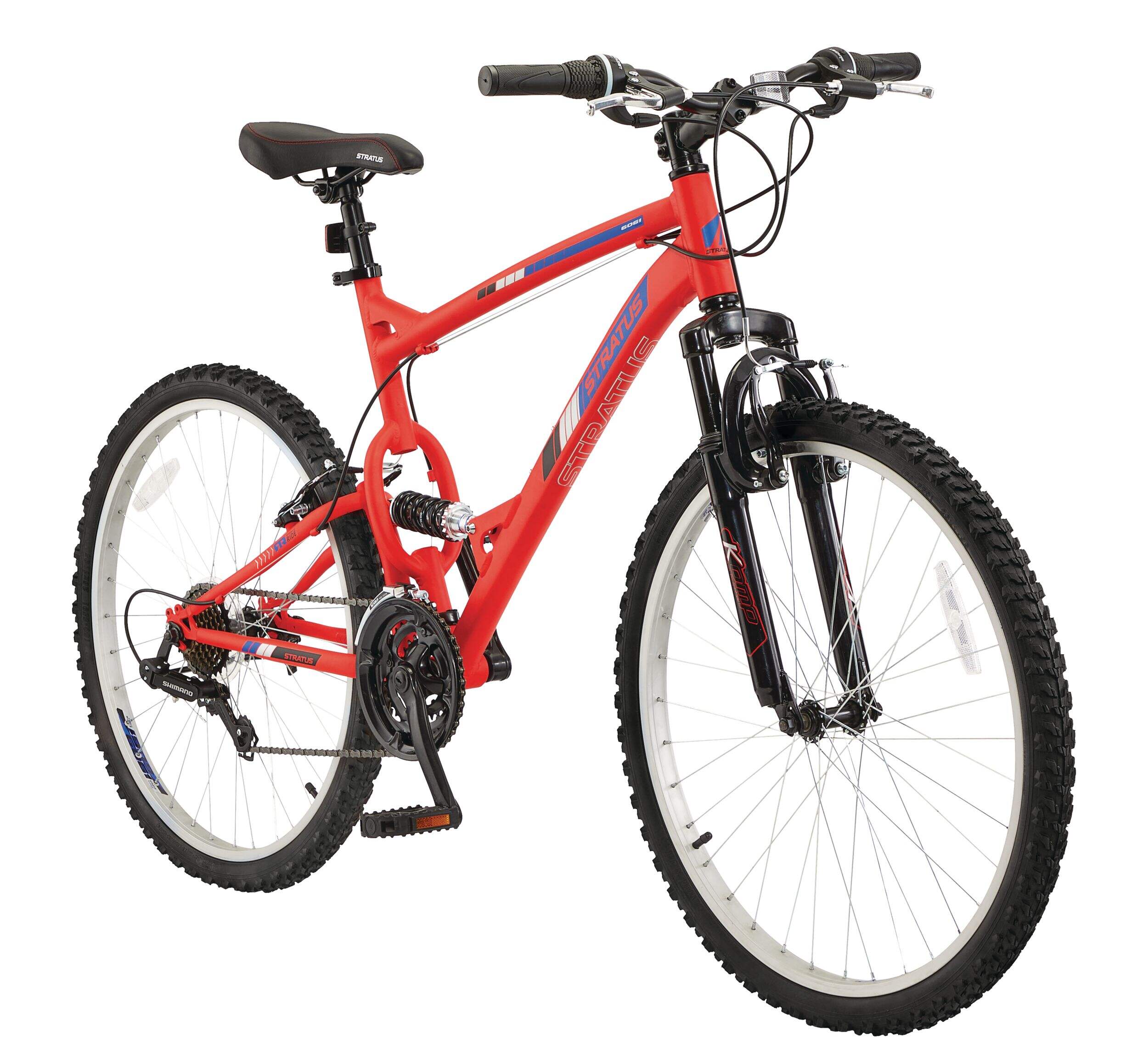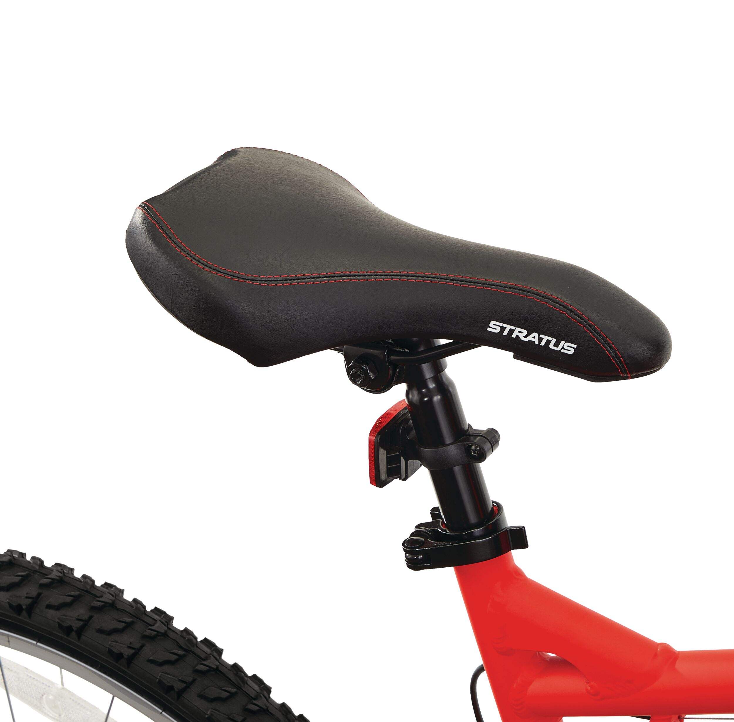 The Stratus Richter DS Mountain Bike offers a reliable and smooth off-road experience, built to handle a variety of terrains. Its durable construction ensures long-lasting performance while providing a comfortable and controlled ride for all your outdoor adventures. Whether you're cruising through trails or navigating tough paths, this bike, with its thoughtful comfort features, allows you to tackle various terrains with ease.