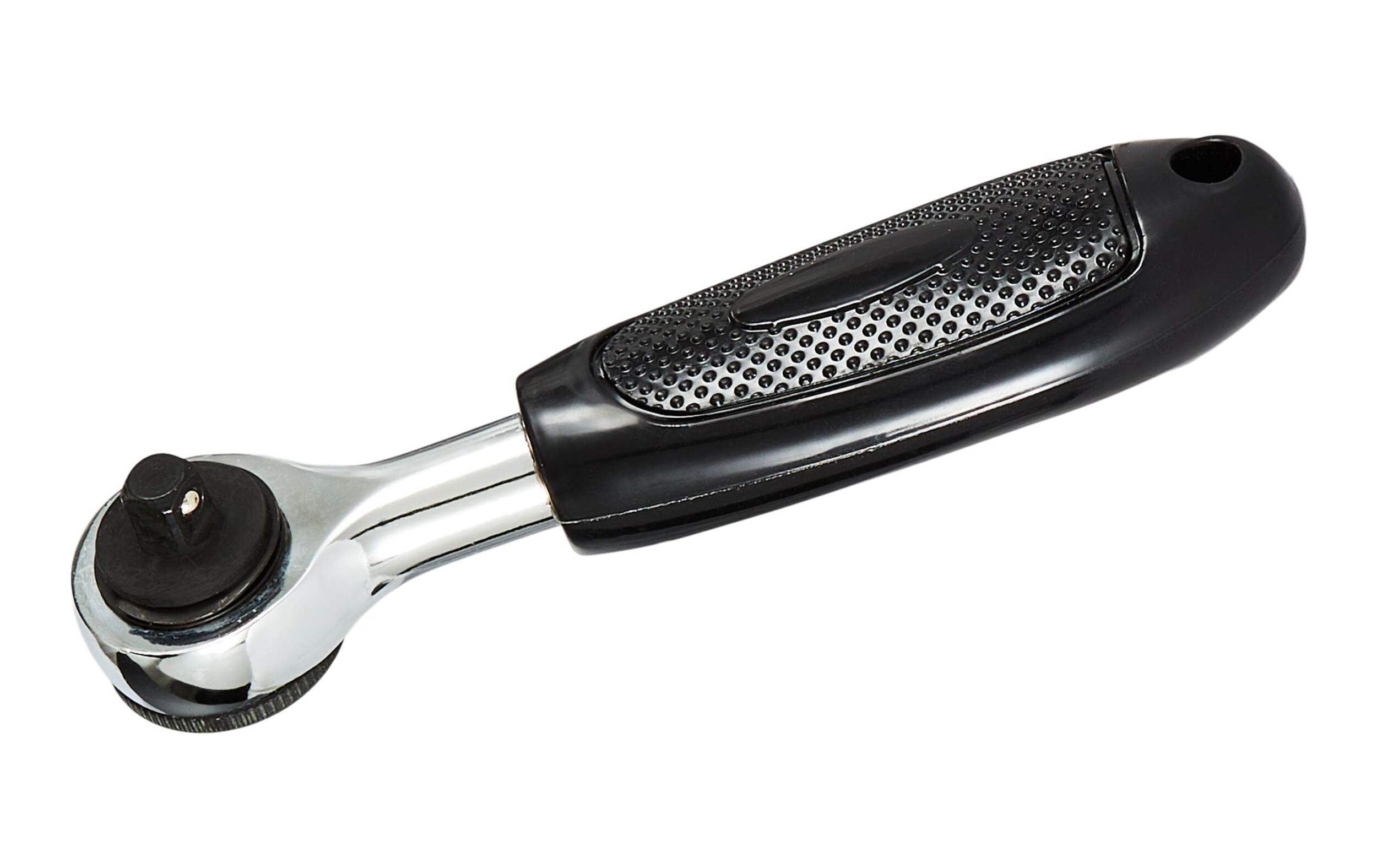 The 1/4-inch drive Stubby Ratchet is perfect for tight spaces with its short handle, where a full-length ratchet doesn't fit. Made of durable carbon steel, it can reach hard-to-access areas, great for automotive repairs.