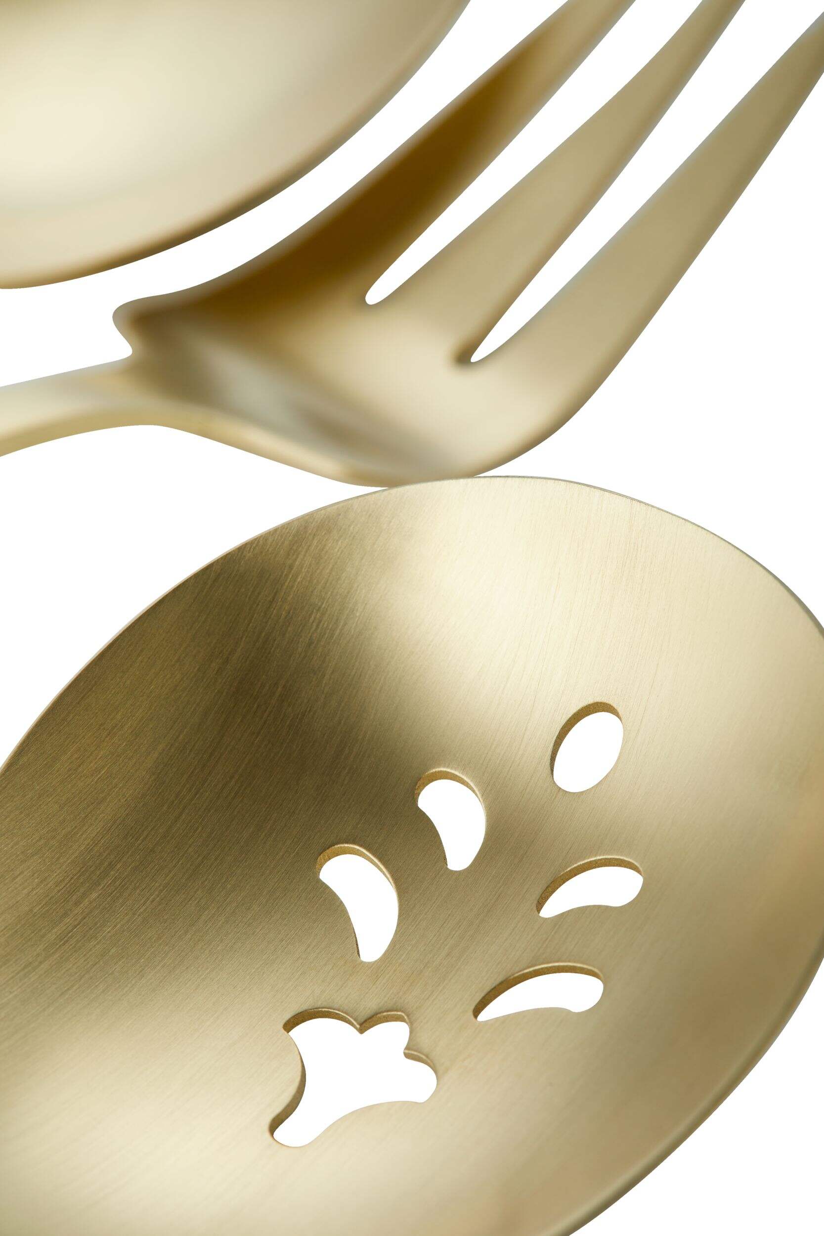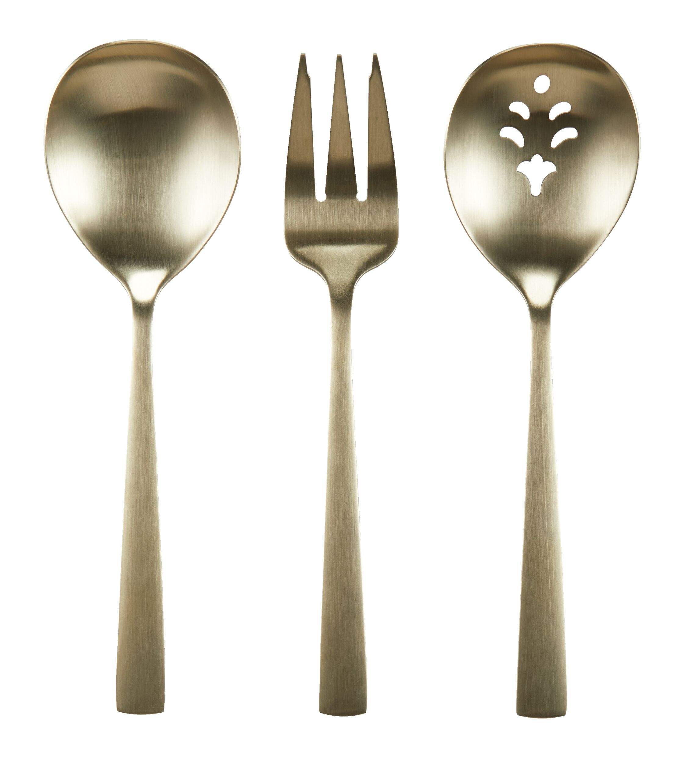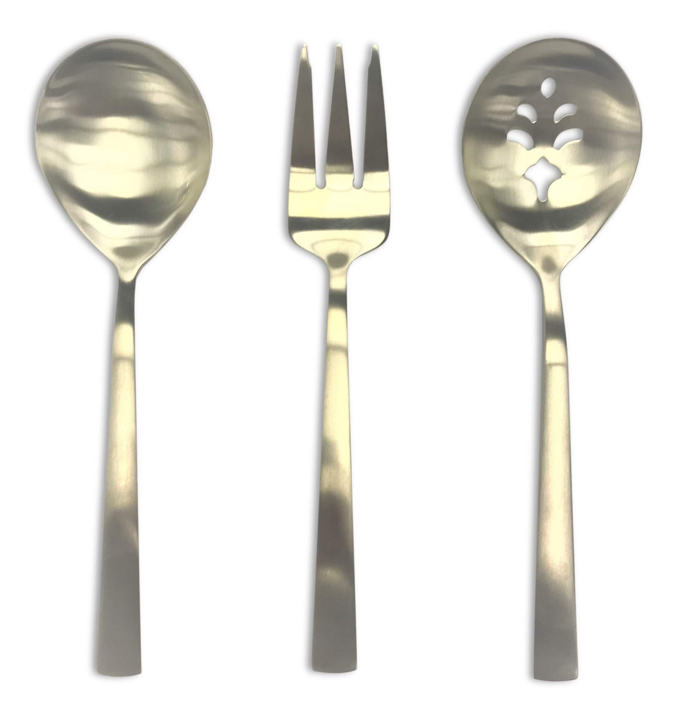 Set includes (1) Serving Spoon, (1) Slotted Serving Spoon, and (1) Serving Fork