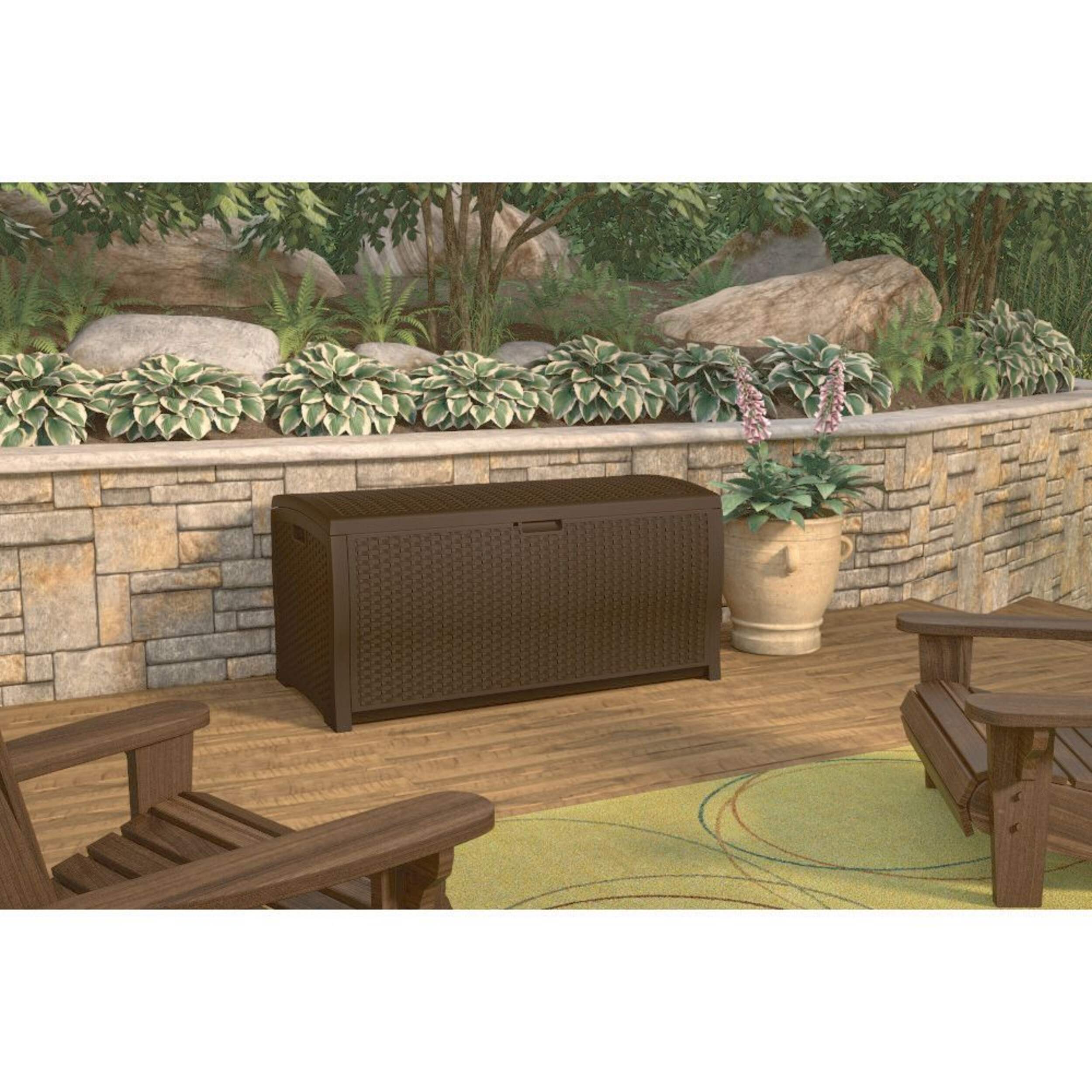 The 99 Gallon Large Deck Box by Suncast® provides easy and efficient organization in one elegant package. The spacious interior is perfect for storing away furniture cushions, gardening tools, sports equipment and firewood. If security is a concern, the Large Deck Box also features a pad-lockable lid to keep contents safe around the clock (padlock not included). The decorative wicker pattern complements your existing outdoor decor, while the sturdy and reliable resin construction ensures easy maintenance and allows for year-round use. With this handy storage solution from Suncast®, outdoor organization has never been easier!