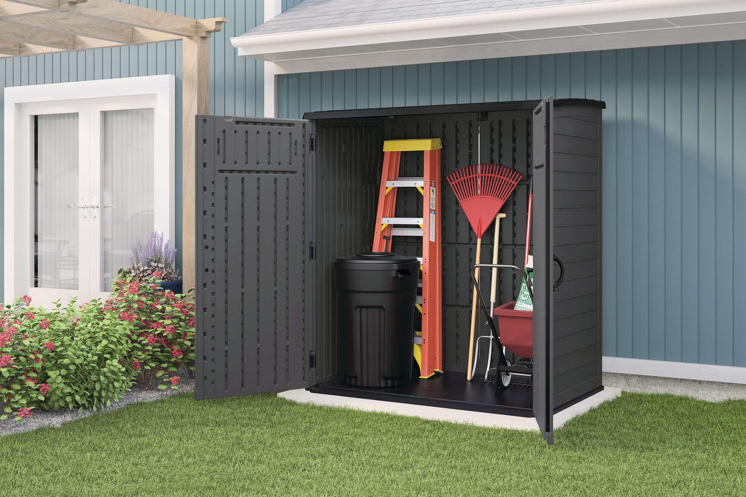 The Suncast Outdoor Storage Shed offers 106 cubic feet of storage space, ideal for organizing lawn and garden equipment. Its slim profile fits neatly alongside a house or garage, perfect for limited yard space. The durable construction withstands all weather conditions, providing reliable protection and long-lasting durability throughout the year. Enhanced security features ensure your items remain safe and secure.