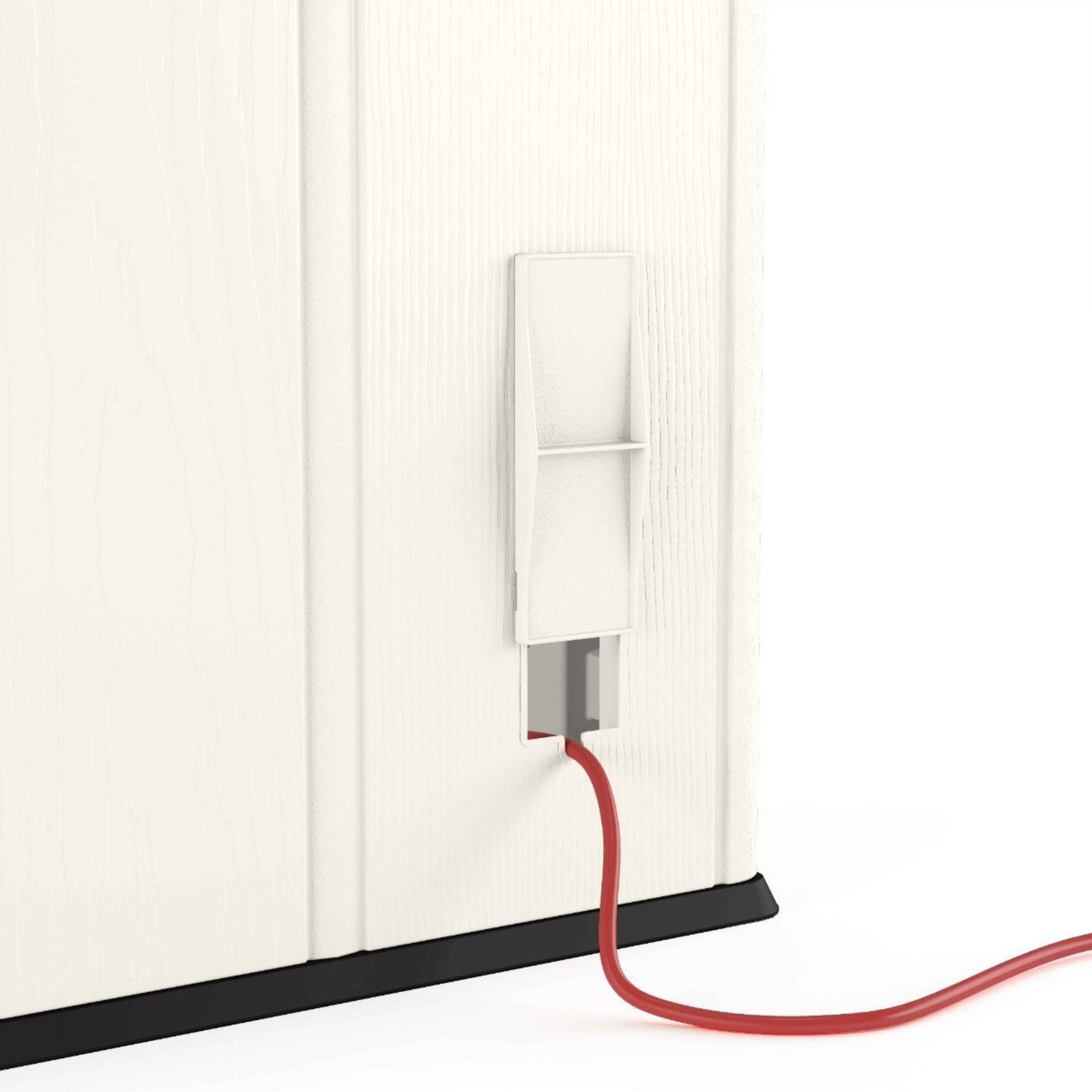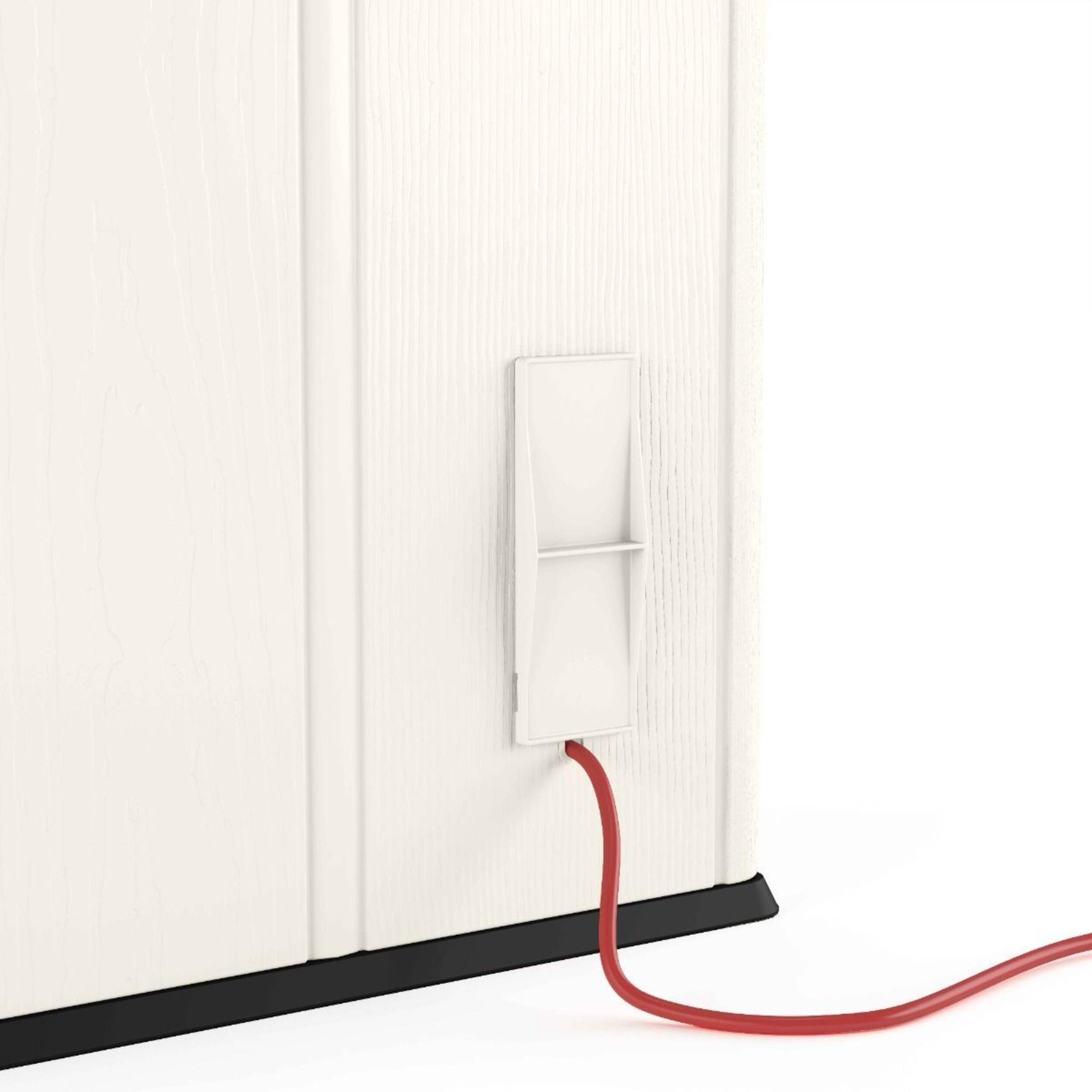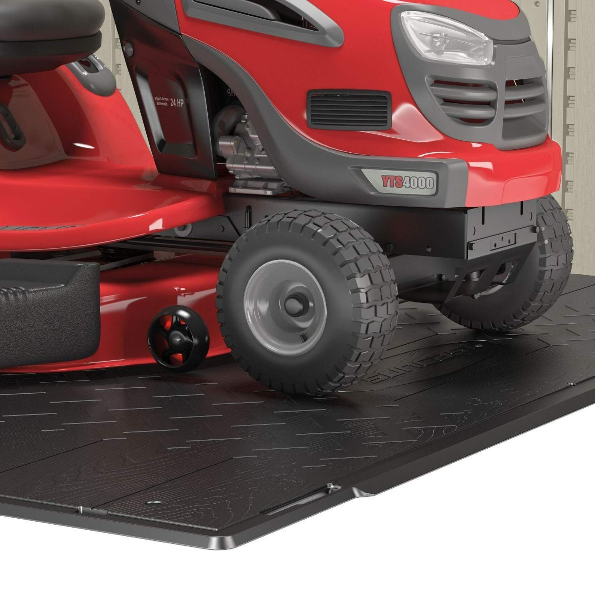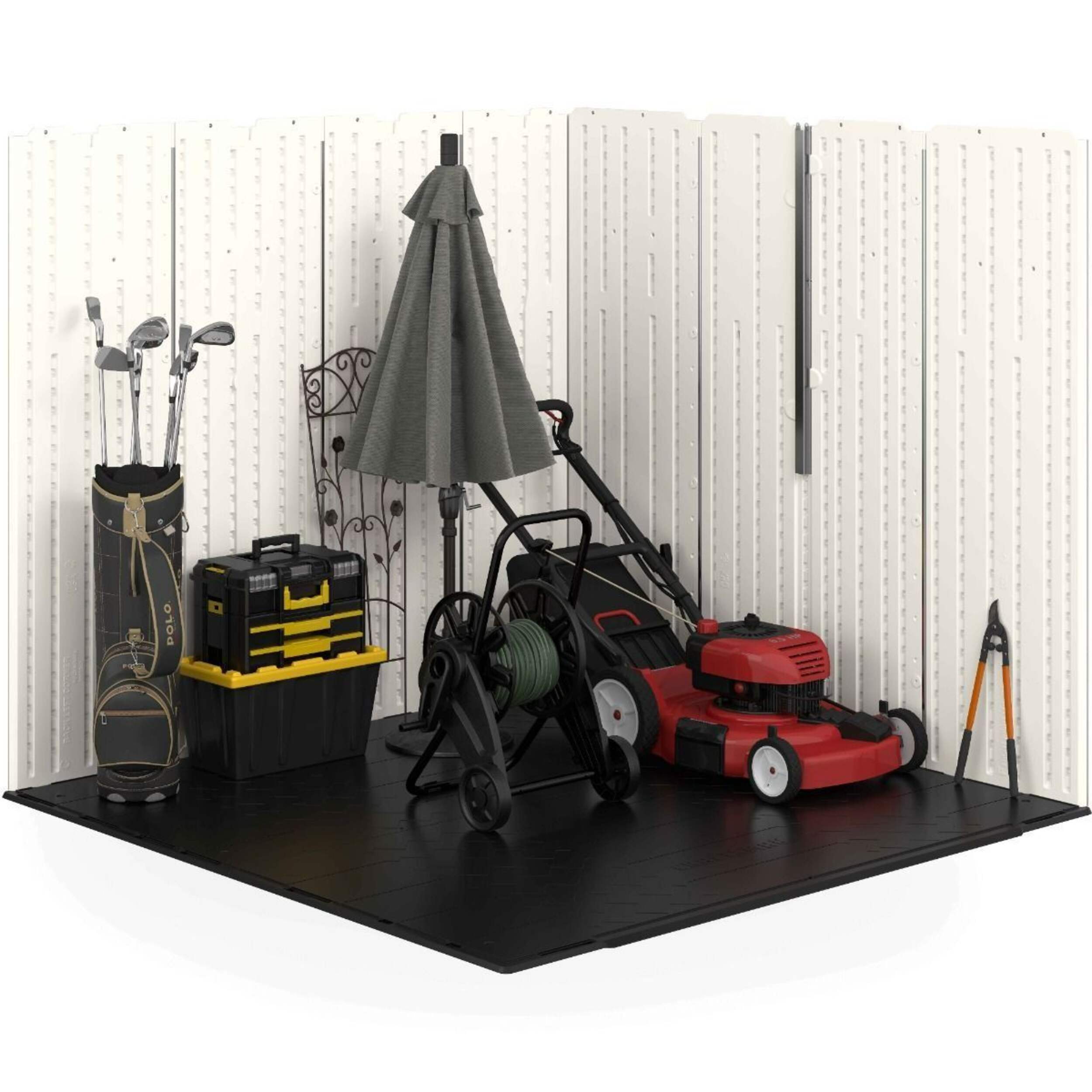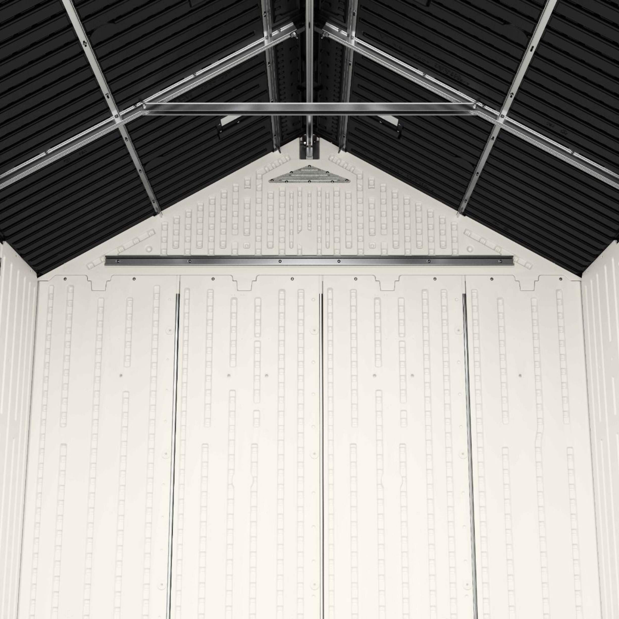 The Suncast® Ridgeland™ Storage Shed keeps outdoor supplies organized and safe. With ample room for gardening tools, bicycles, lawnmowers and such, this shed combines practicality and style. The sturdy double doors with metal hinges offer easy access and they're equipped with upper and lower metal latches to keep them securely closed. The doors are also pad-lockable for added security (lock not included).