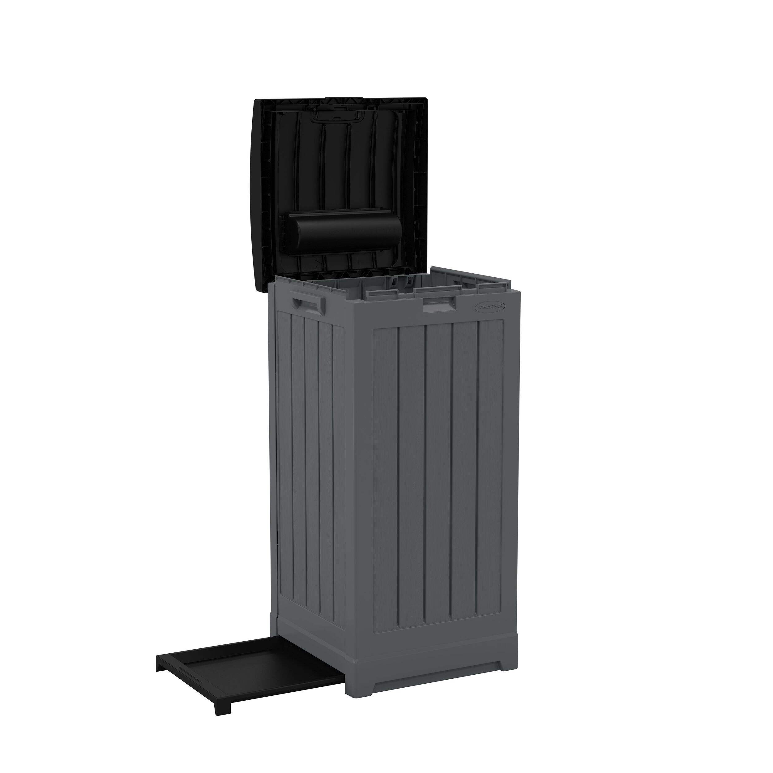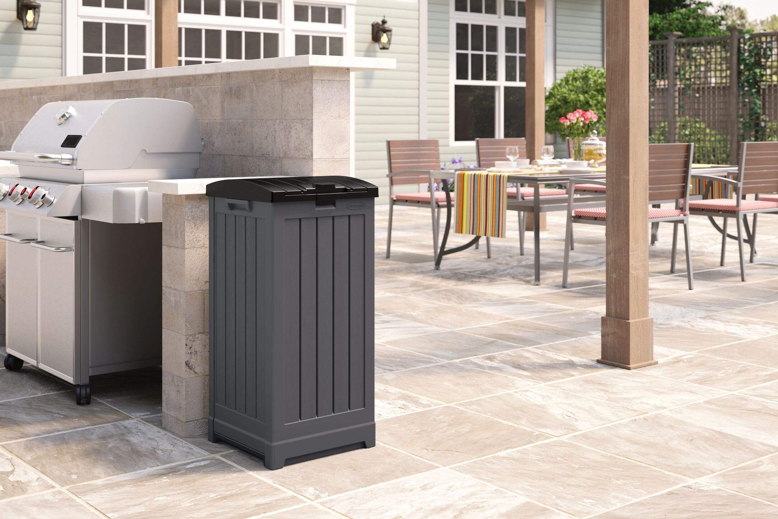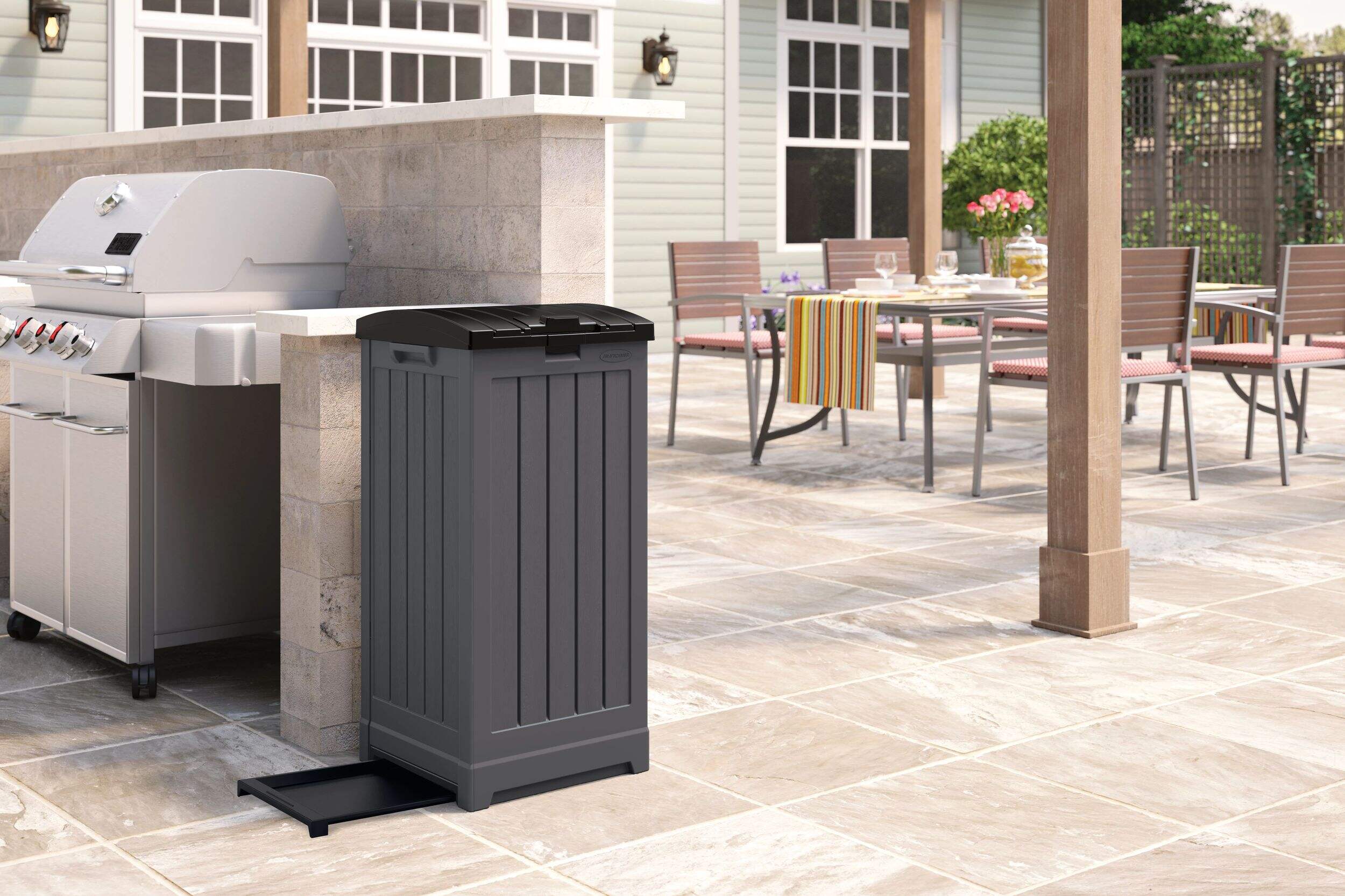 Keep your outdoor spaces clean and clutter-free with the Suncast Trash Hideaway Outdoor Garbage/Trash Refuse Container. Perfect for patios, decks, or gardens, this stylish container blends seamlessly into any setting while keeping garbage or recyclables neatly concealed. Its thoughtful design, including a latching lid and a pullout tray, ensures effortless maintenance and a tidy appearance year-round.