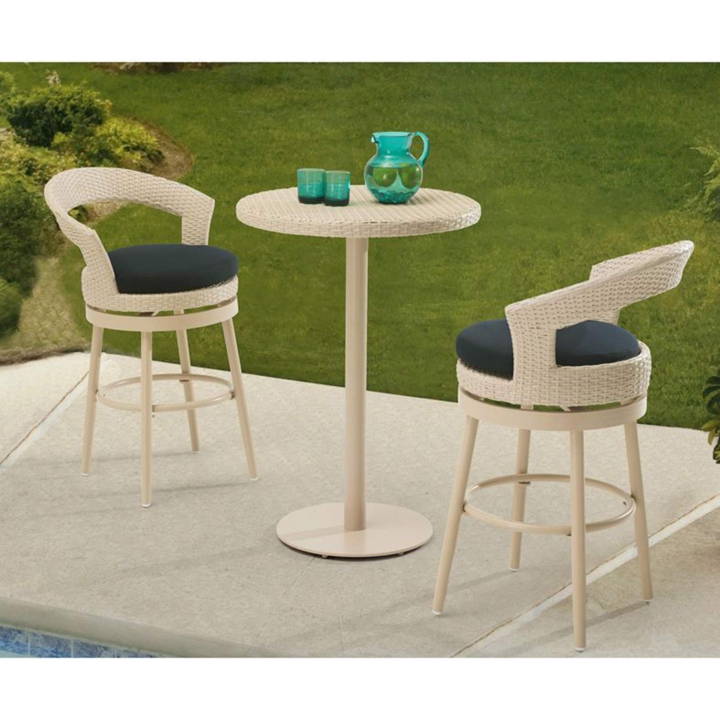Sunjoy Chalk Wicker Fresh High Bistro Set boasts a modern design for easy serving and entertaining on your patio or deck