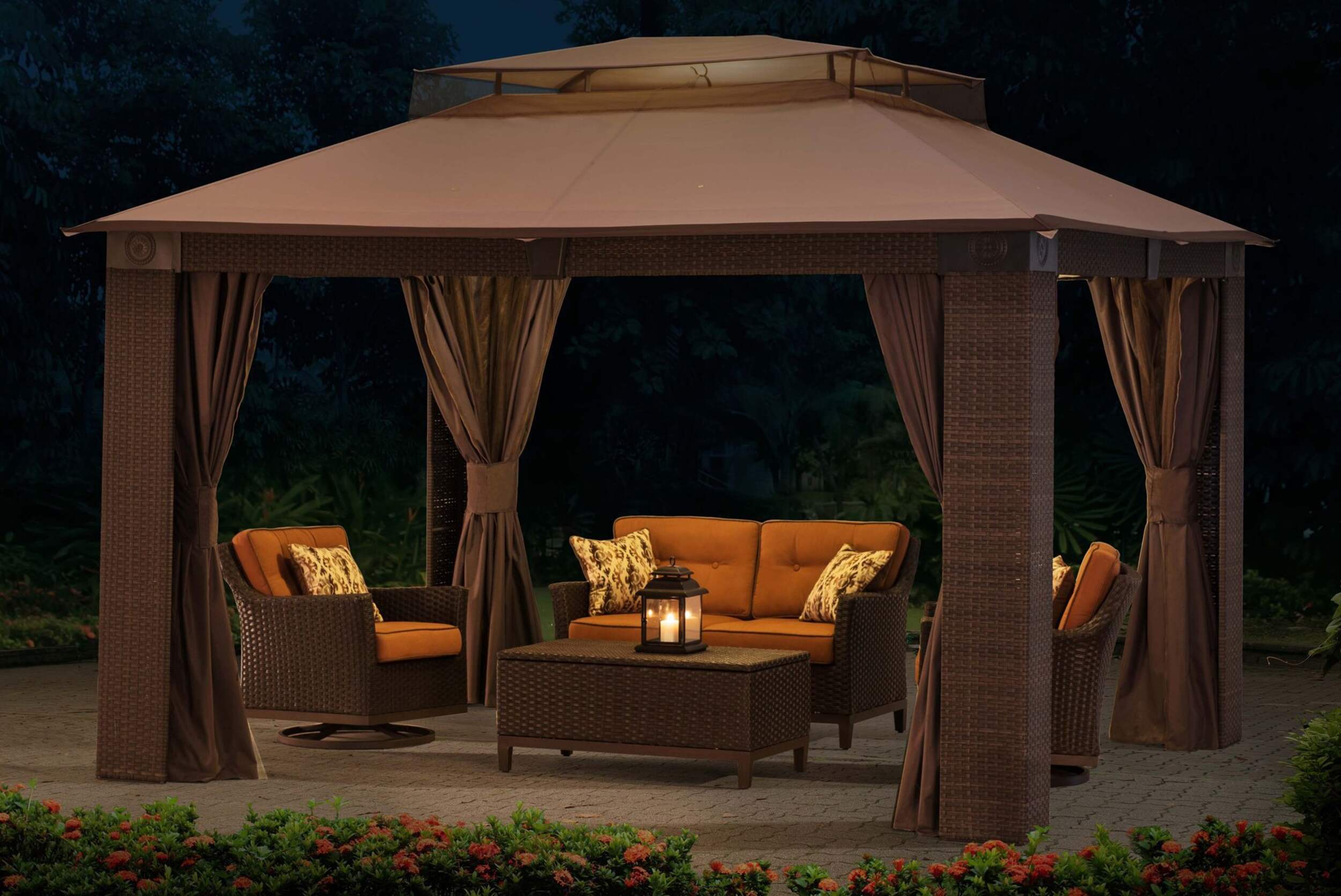Sunjoy Wicker Gazebo features a soft-top design and a durable steel frame that will last for many seasons