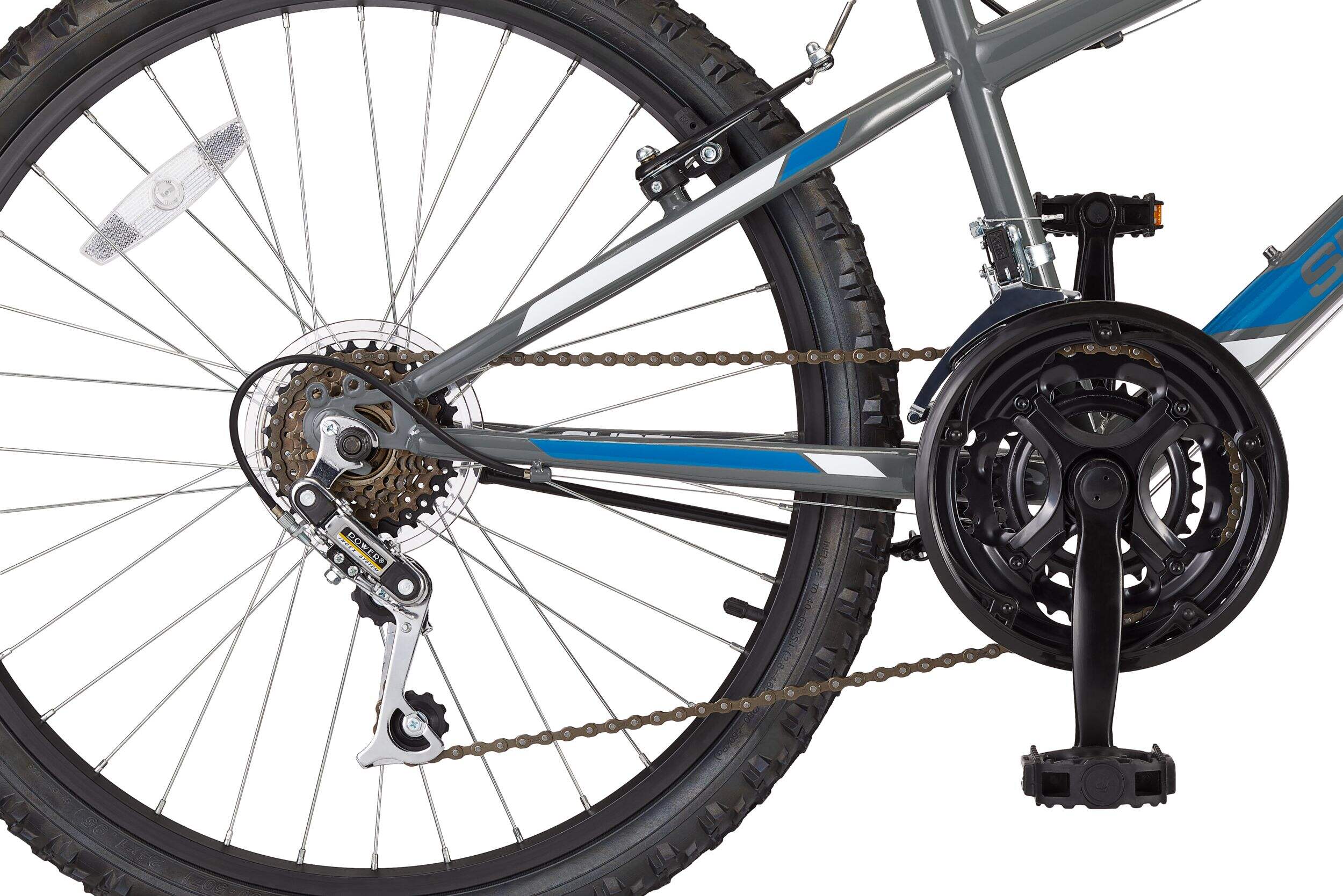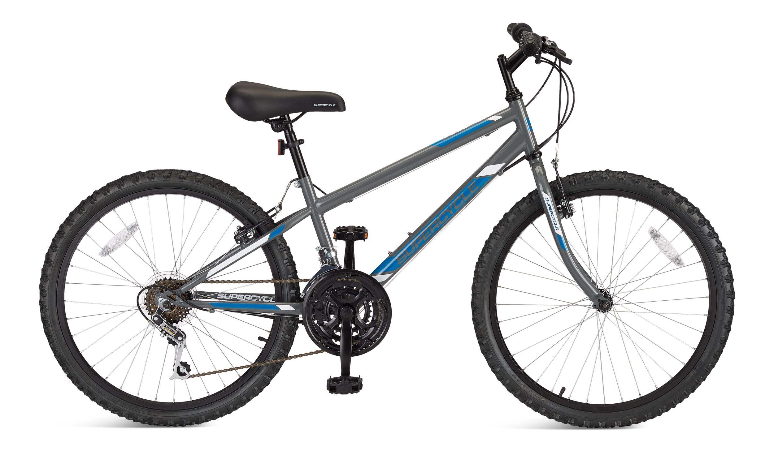 The Supercycle Reaction Youth HT Mountain Bike is a great choice for new riders. Built with a high-tensile steel frame for long-lasting durability, and large 24-inch wheels to take on various types of terrain, this youth bicycle has just about everything a young rider needs to get started.