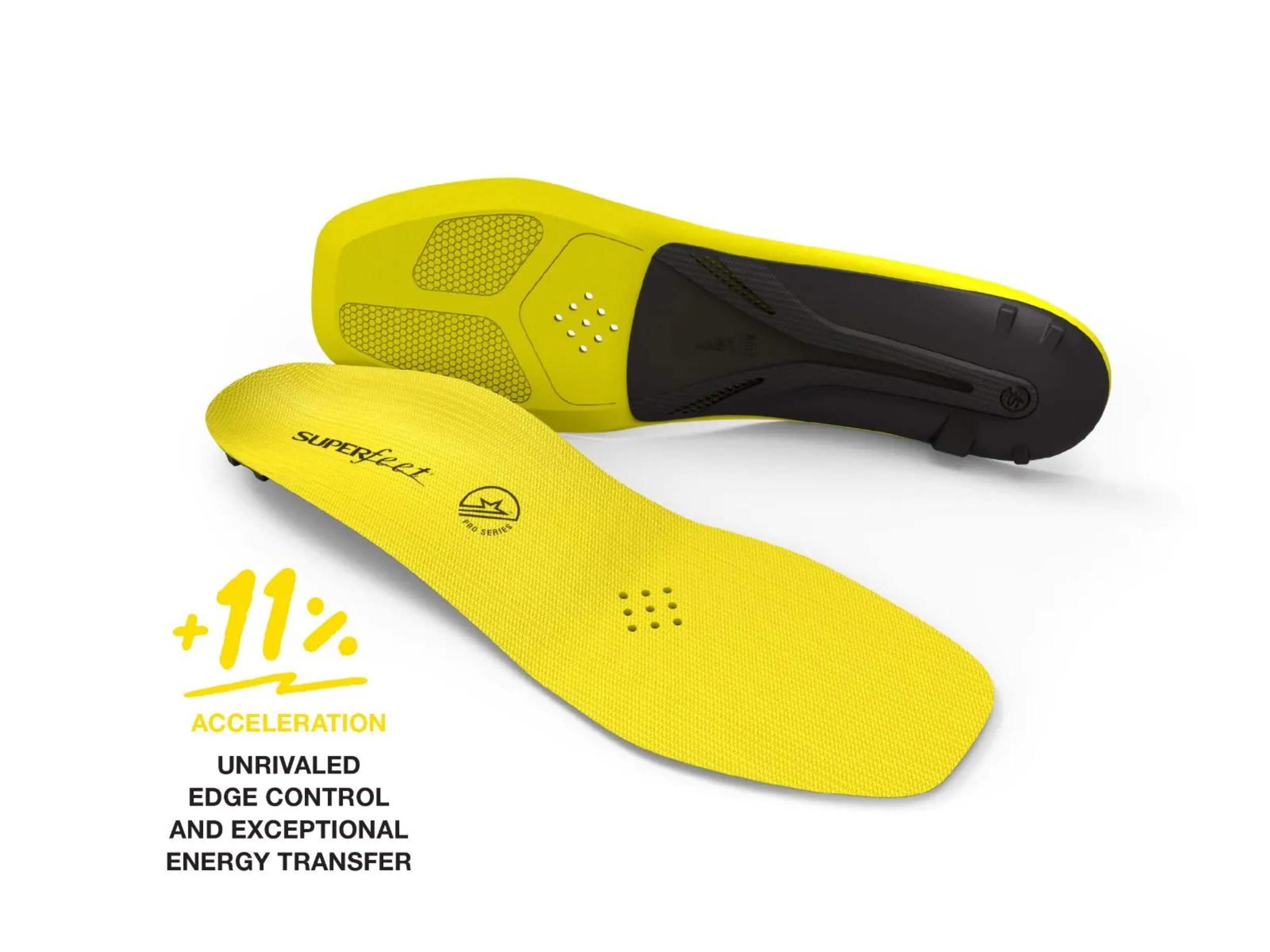 Superfeet Carbon Pro Hockey Insoles feature a contoured shape that minimizes friction, hot spots and blisters