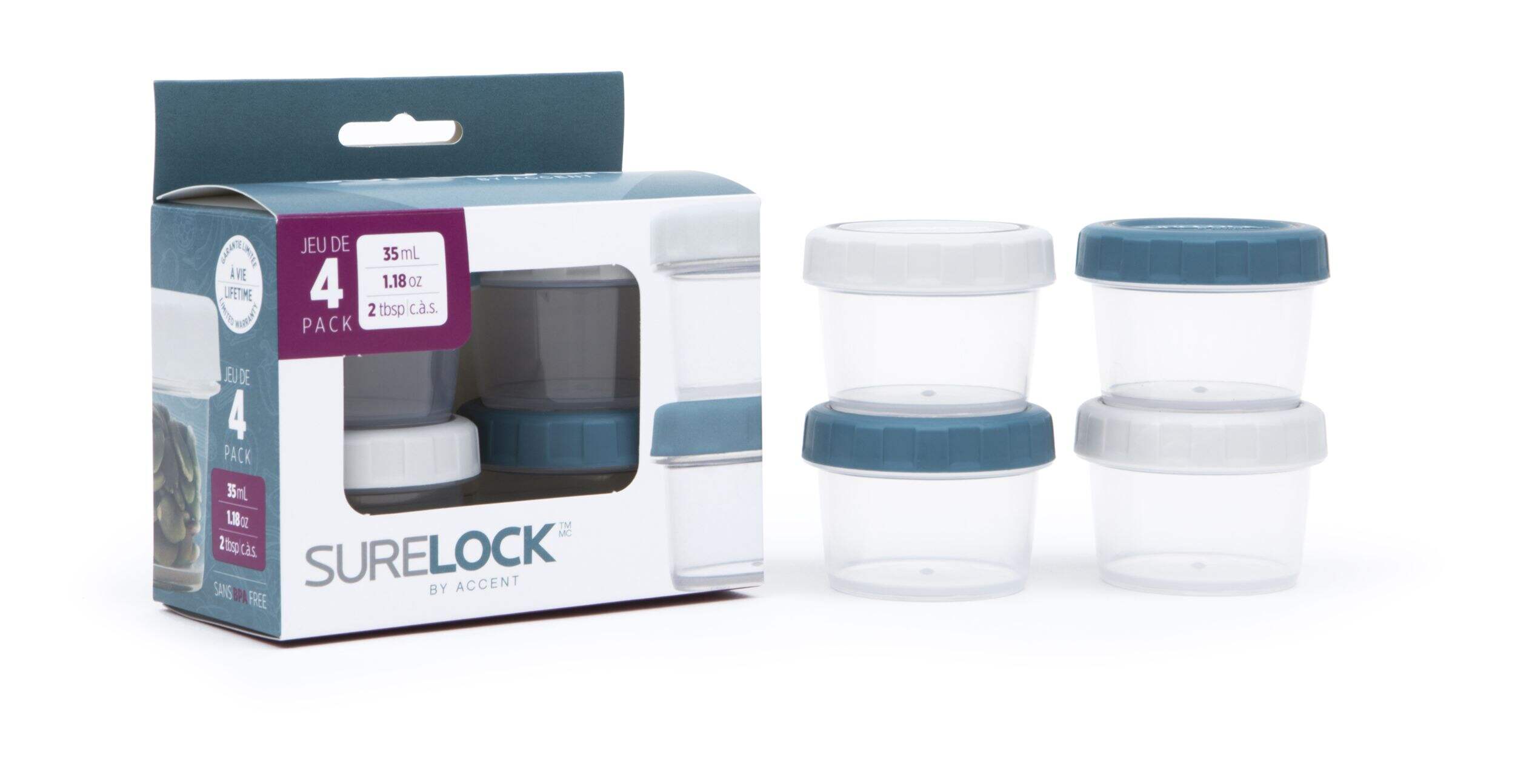 The Surelock Plastic Food Storage Containers feature injection-molded polypropylene construction and unique co-molded, threaded lids that seal airtight to keep your leftovers fresh. The graduated sizing allows the containers to nest inside each other for space-saving storage, perfect for tucking away pantry staples like flour, rice and sugar or packing lunchbox snacks.