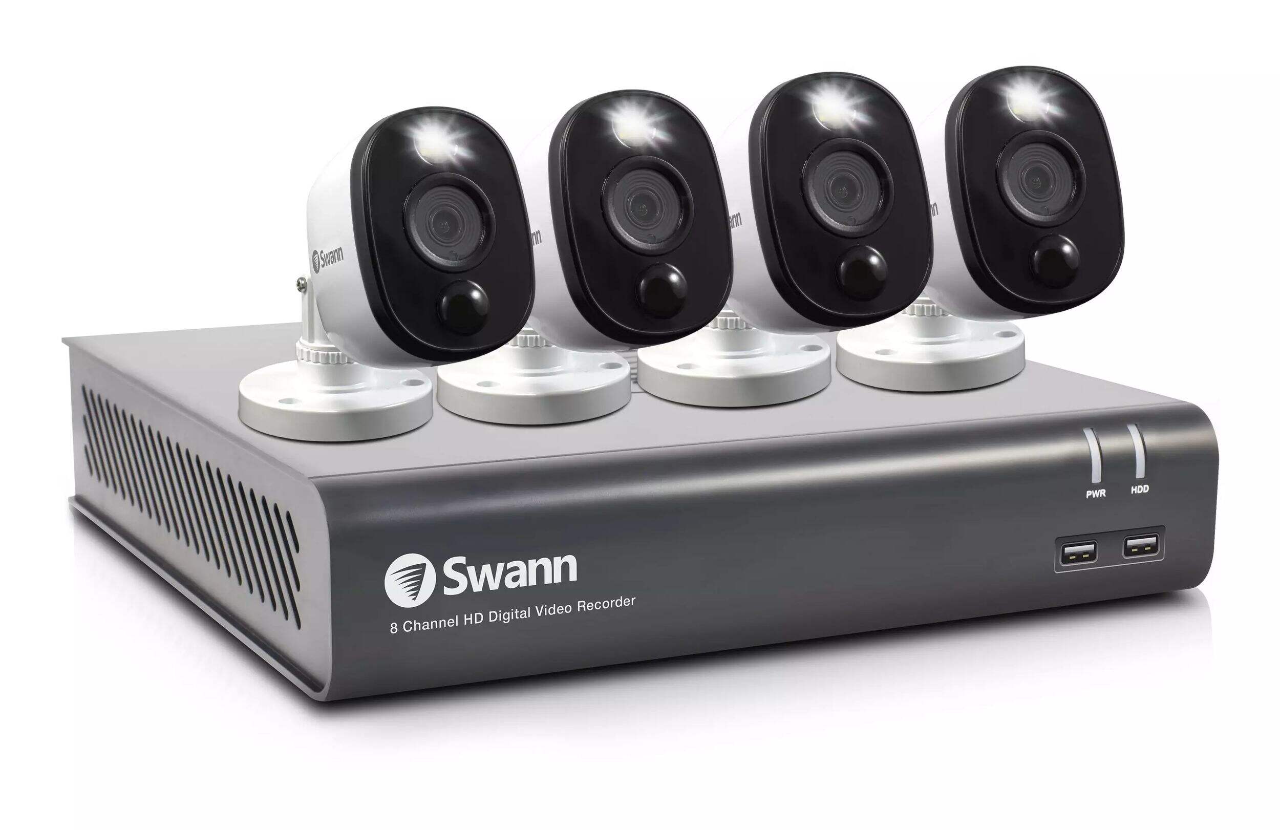 Enhance your home or business’ safety with the Swann Outdoor Security Camera System, a cost-effective solution for crime prevention. Equipped with powerful spotlights, these compact weatherproof cameras deliver clear 1080p Full HD video, day or night. Enjoy the convenience of live viewing on your mobile, monitor, or TV, while advanced features like colour night vision and heat and motion detection provide smarter, more reliable security. It’s the all-in-one system that brings peace of mind to your doorstep.