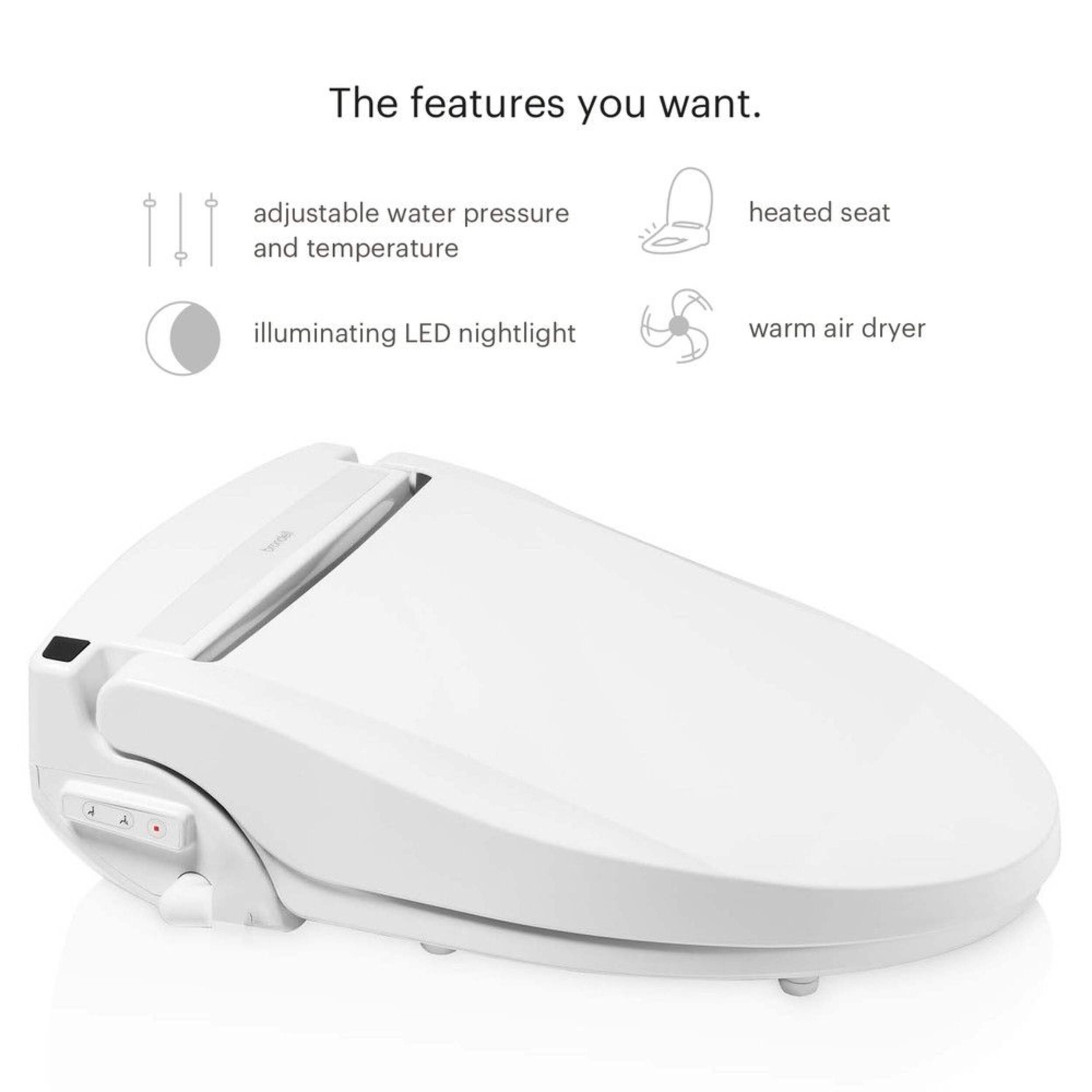 The Swash EM617 offers the cleanliness you’re looking for, with all the comfort of today’s tech-savvy electronic bidets. You’ll love the adjustable wash settings, warm water wash, and warm air dryer—all controlled by an included wireless remote. The addition of an LED nightlight provides a welcoming touch.