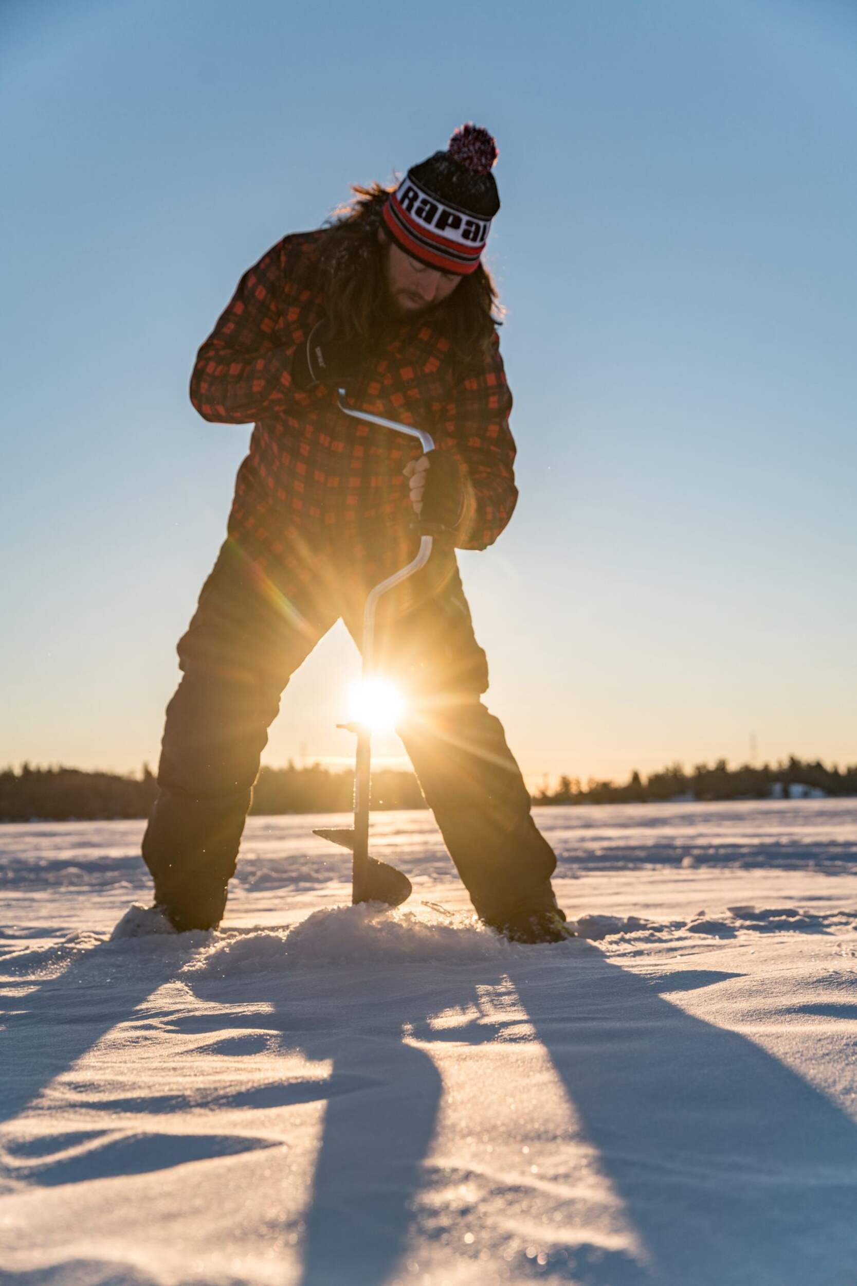 A 6" (15 cm) diameter ice drill with telescopic handle