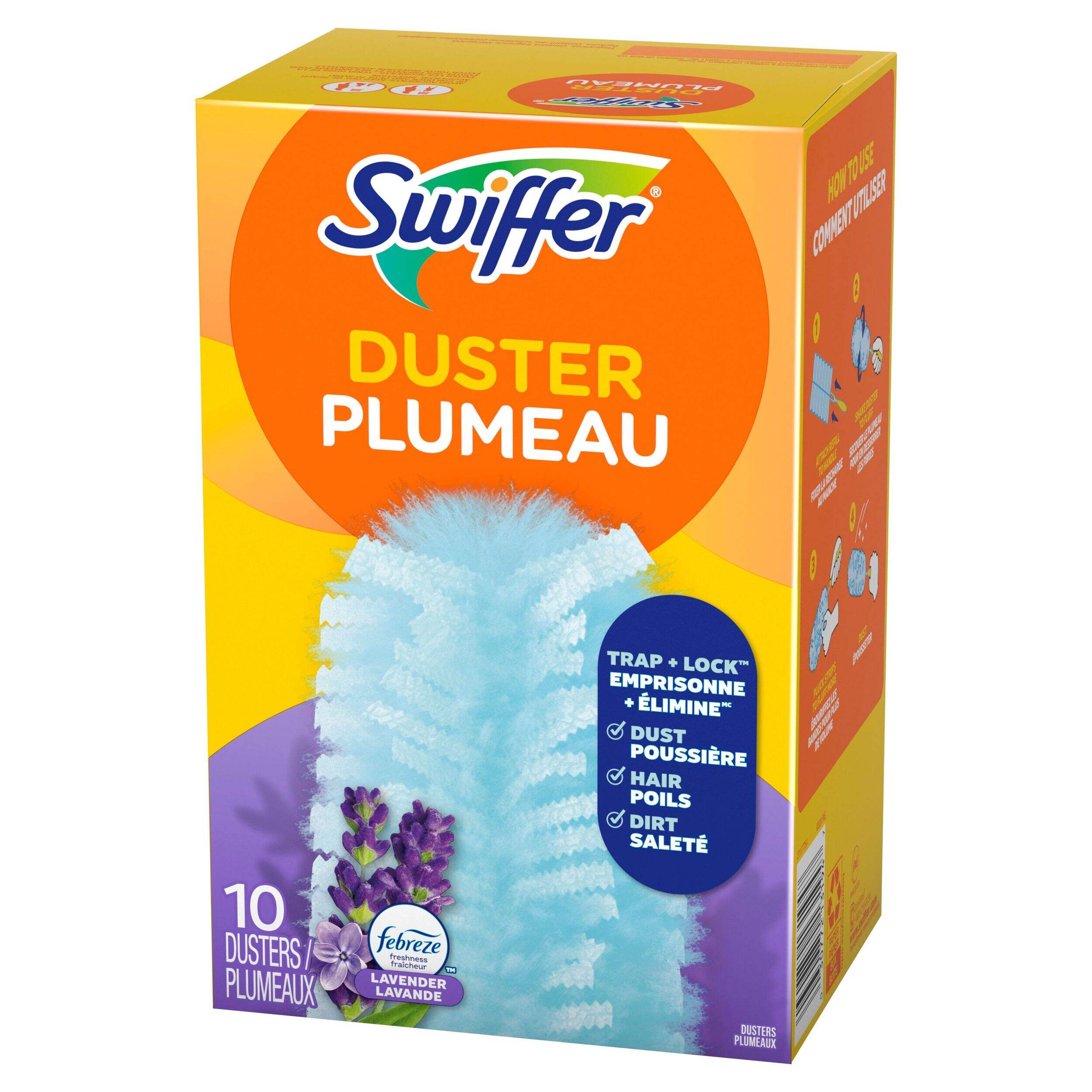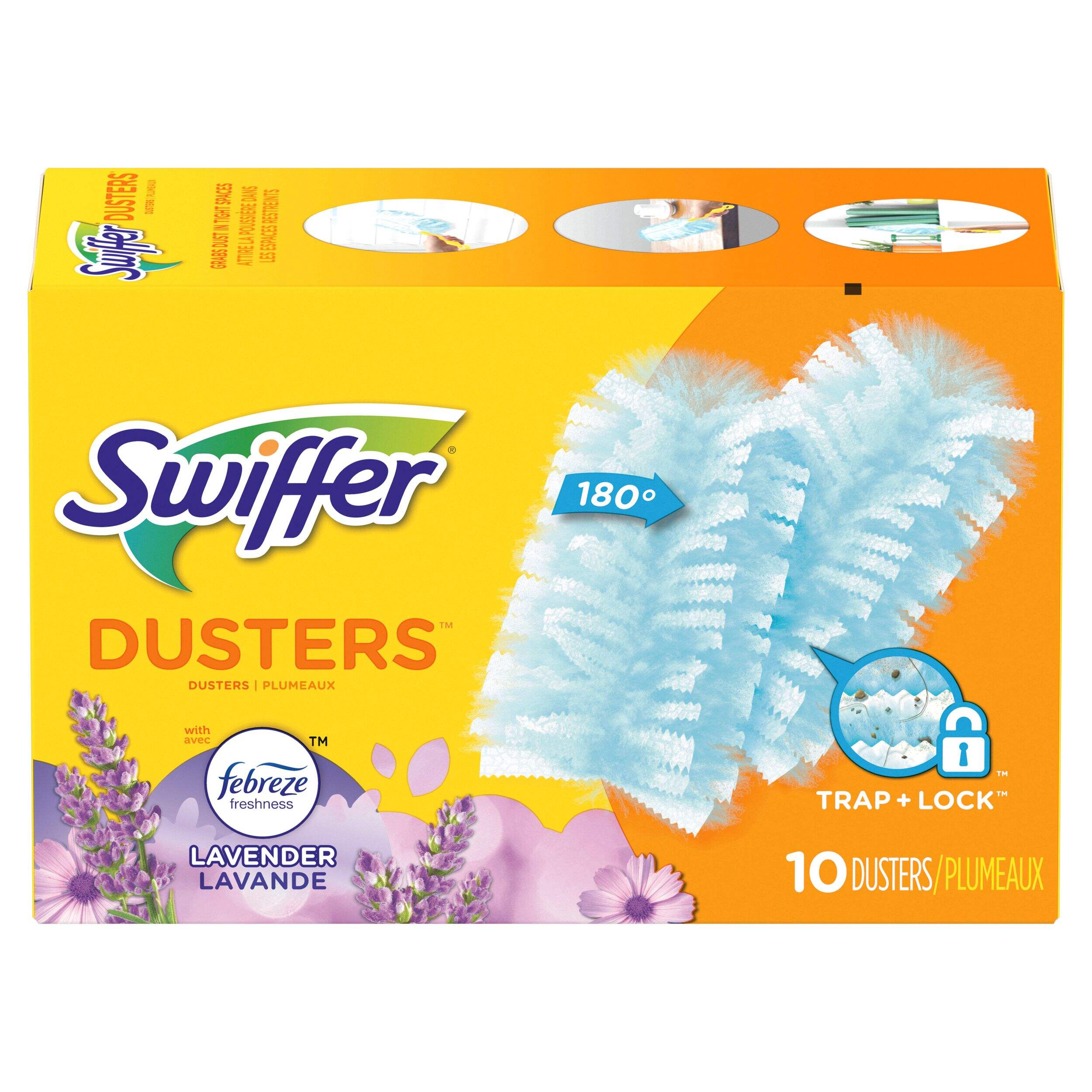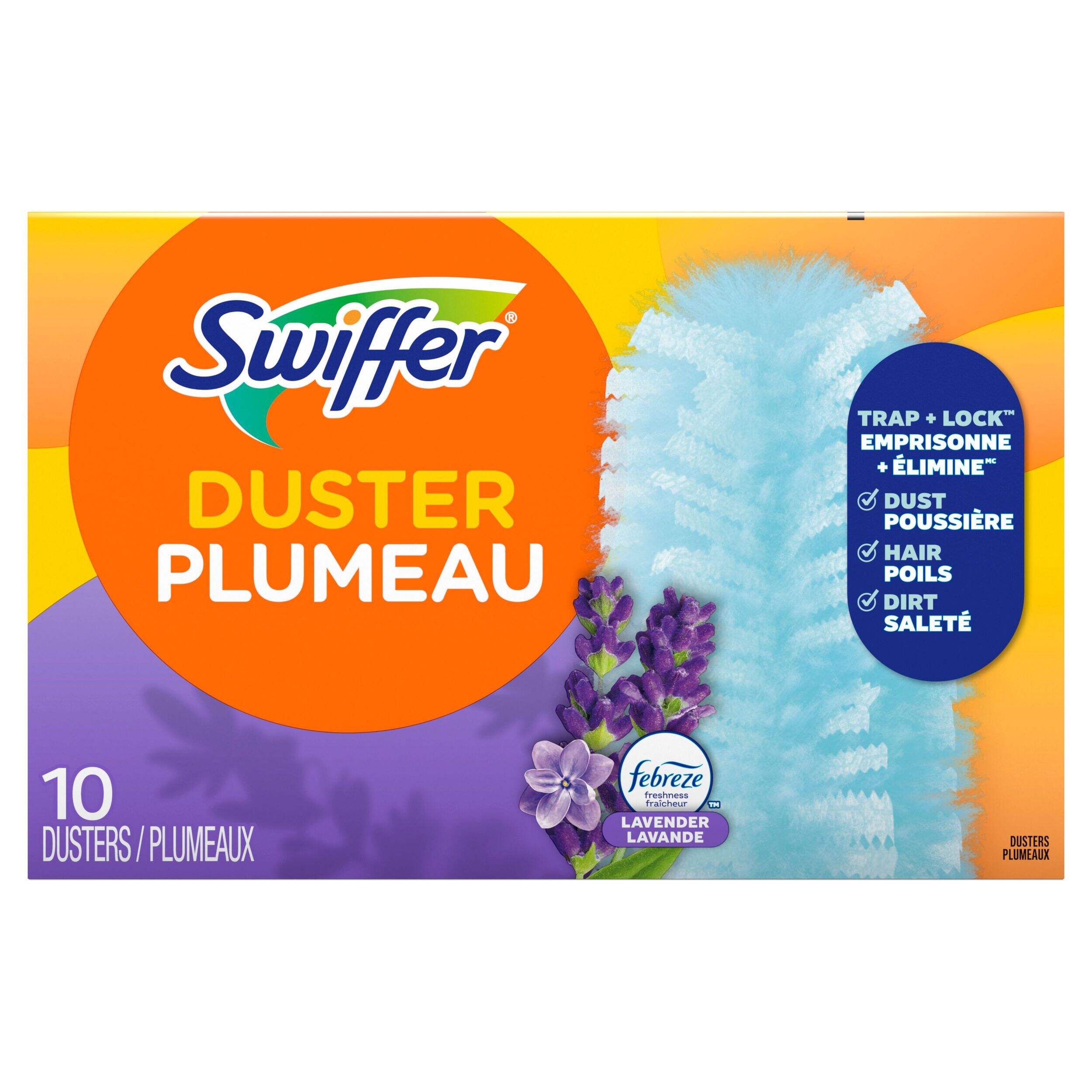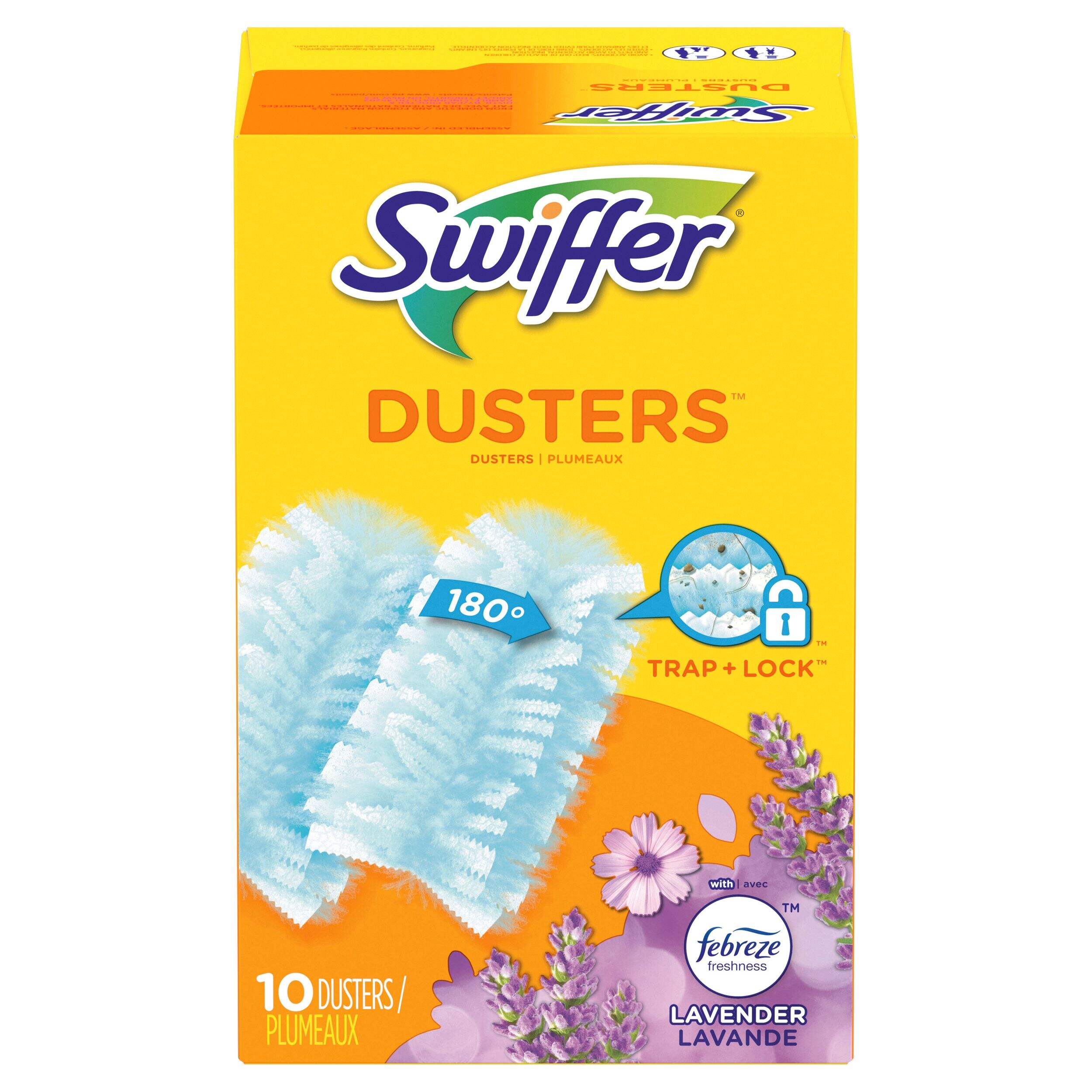 Swiffer Dusters TRAP + LOCK dust wherever dust shows up, including fan blades, blinds, car interior, keyboard vents, bookcases, and more. They are made with specially coated fibers that grab onto dust & don't let go. Enjoy the lasting freshness* of lavender as you clean. *Leaves behind up to 1 hour of freshness after initial product use