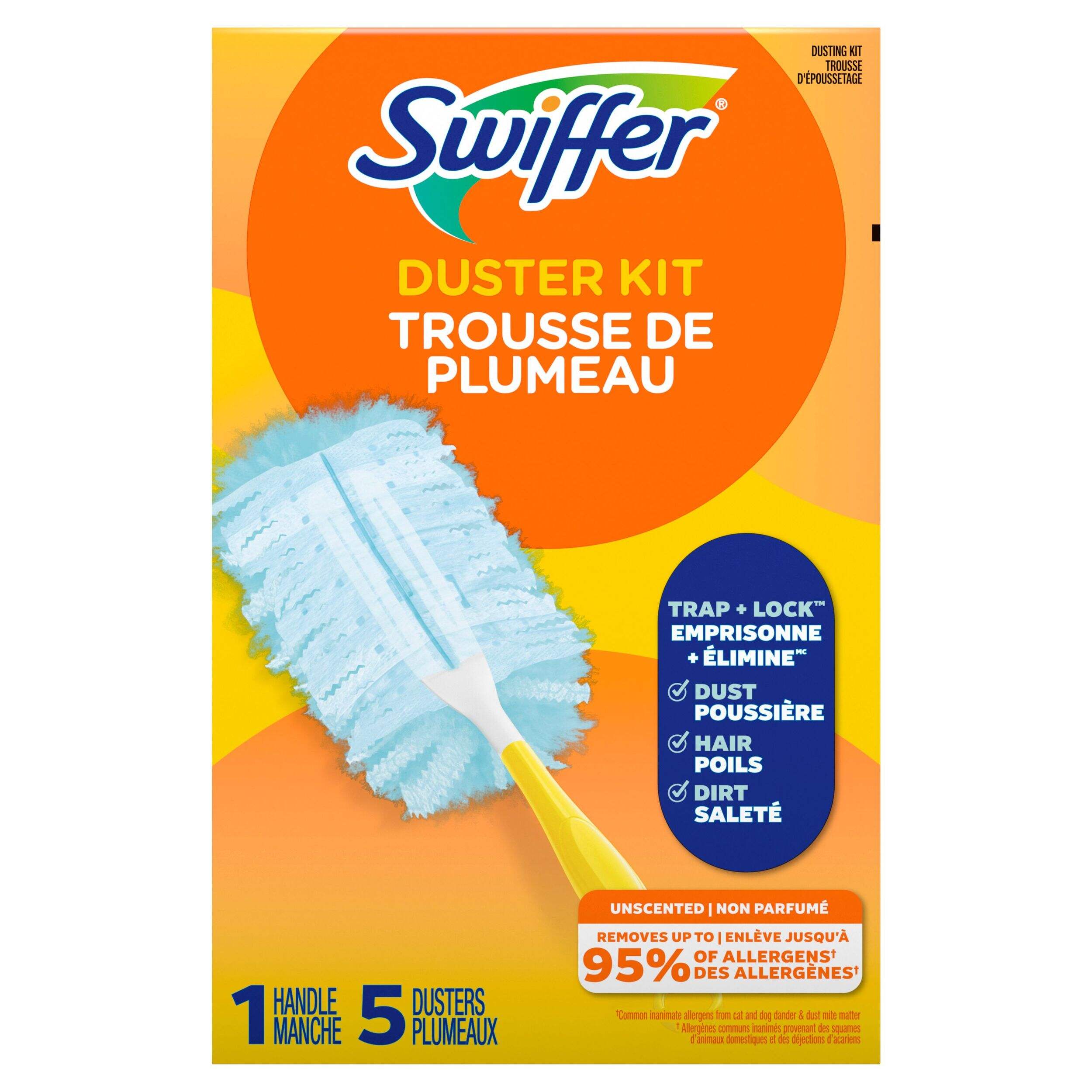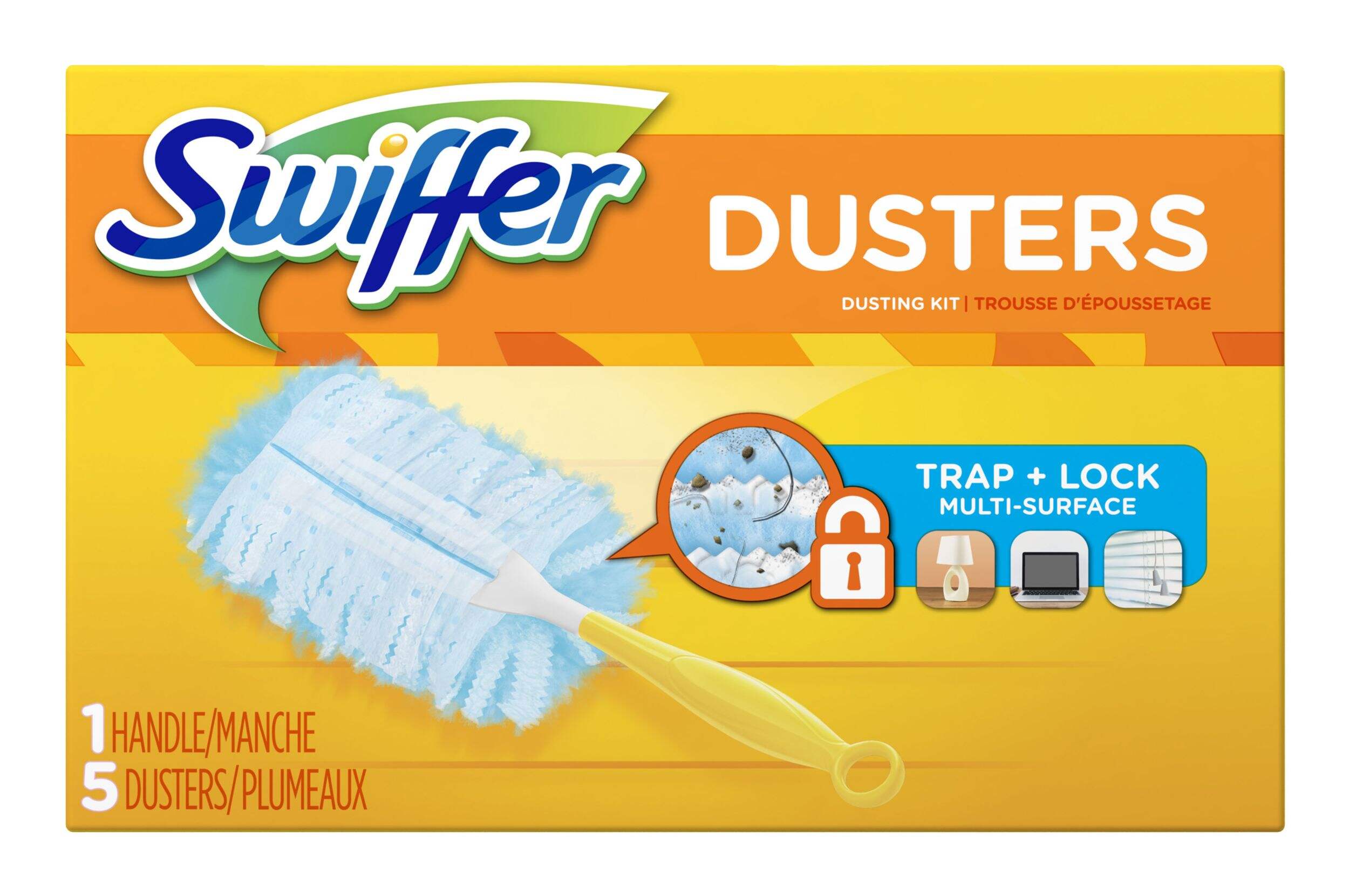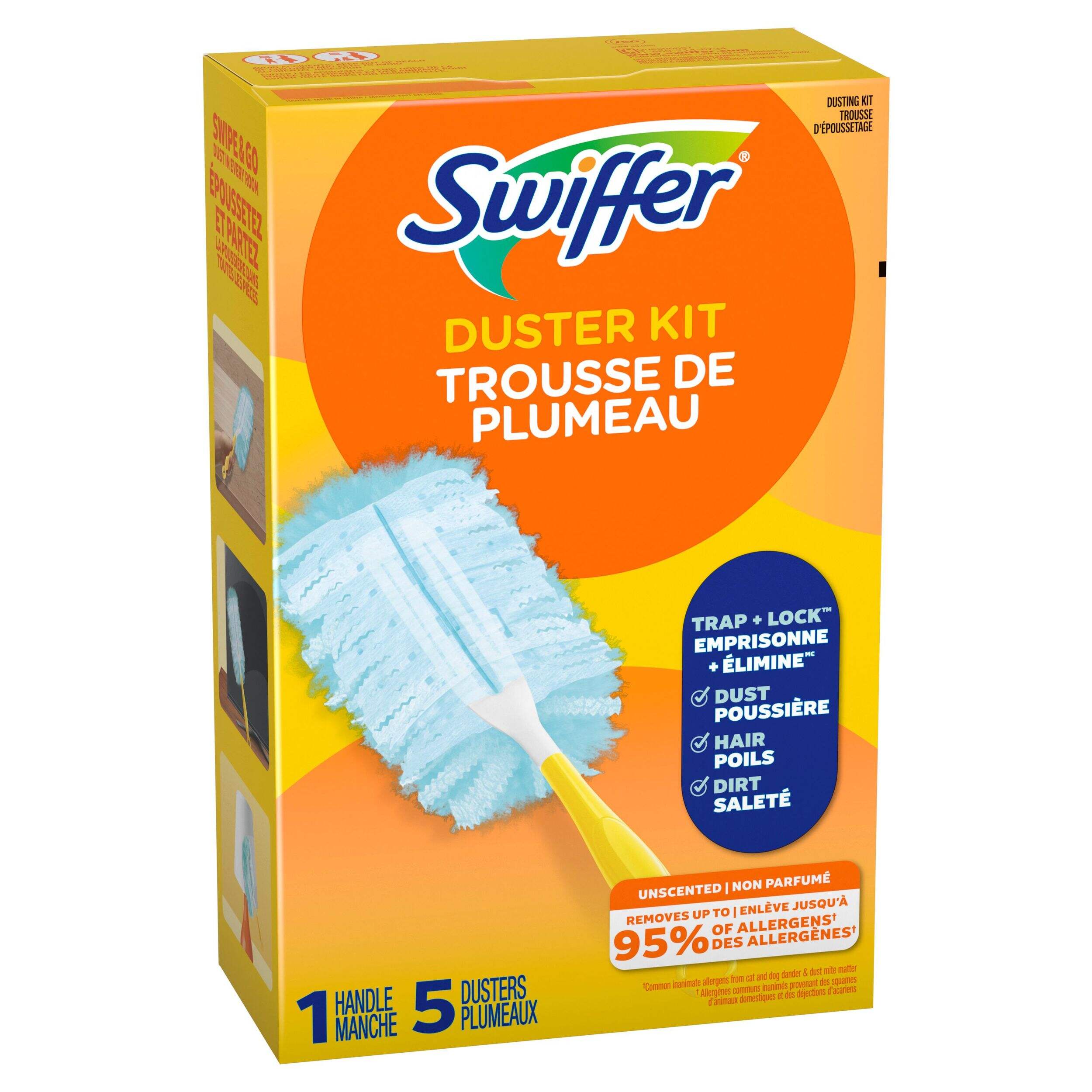 Swiffer Dusters TRAP and LOCK dust and remove up to 95% of allergens. And, with thousands of fluffy, specially coated fibers, Swiffer Dusters grab onto dust and don't let go. Use Swiffer Dusters for cleaning wherever dust shows up, including fan blades, blinds, car interior, keyboard vents, bookcases and more. Common inanimate allergens from cat and dog dander and dust mite matter.