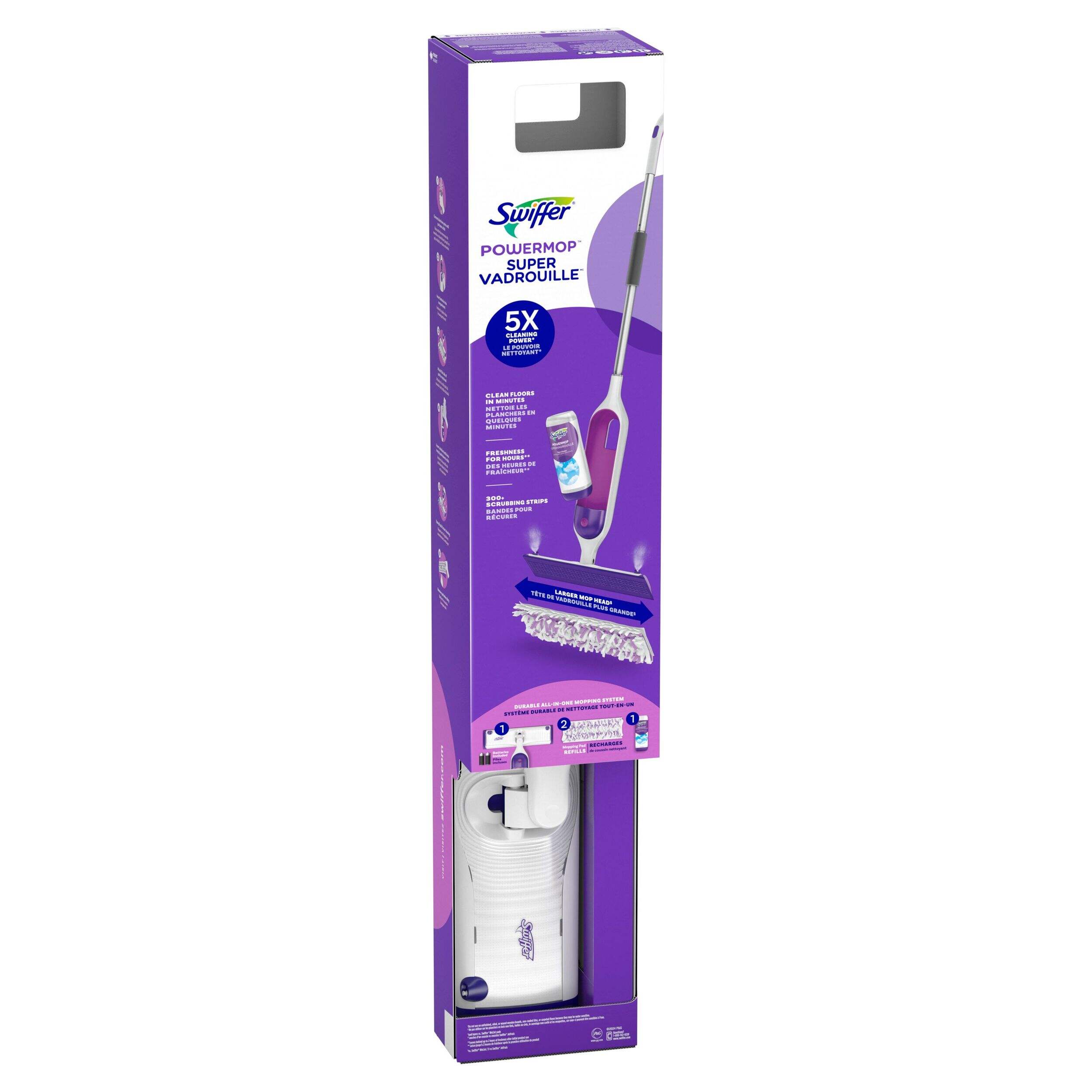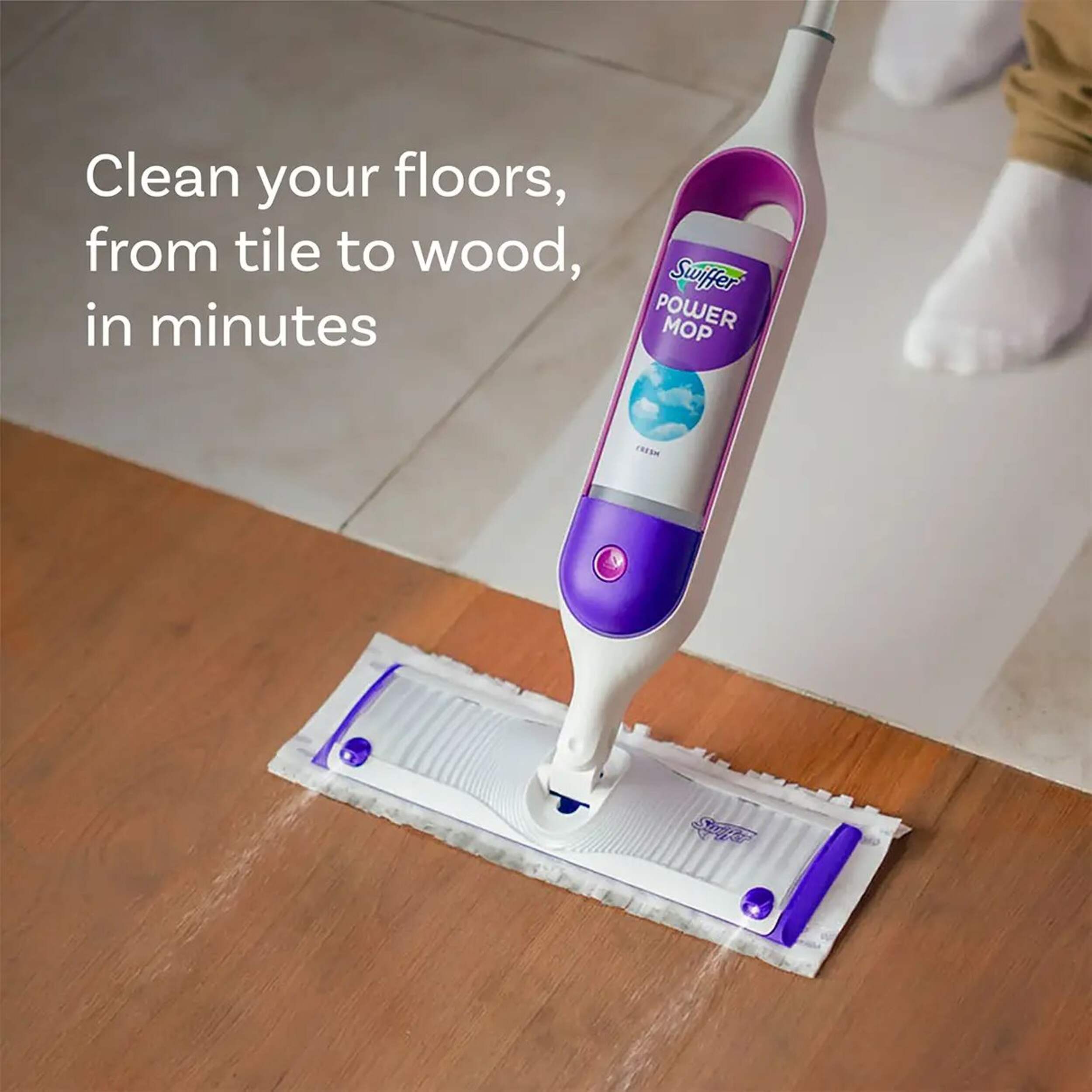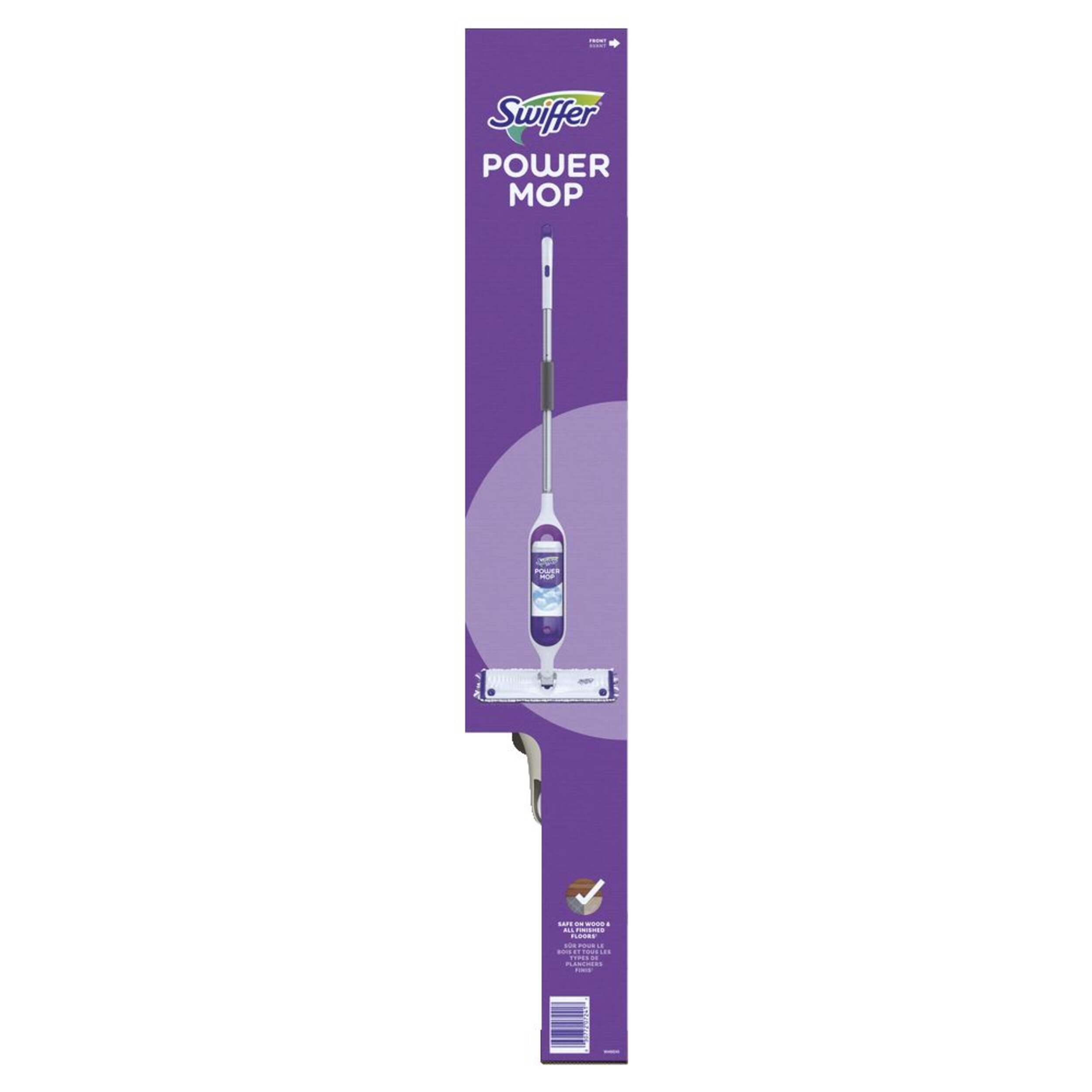 Mop smarter with the Swiffer PowerMop, an all-in-one mopping system that gives you a mop and bucket clean in half the time*. The multi-surface mopping pads have 300+ scrubbing strips that reach deep into grooves and grout to remove sticky spills and daily dirt and grime. The fresh scent of PowerMop solution will fill your home with freshness for hours.