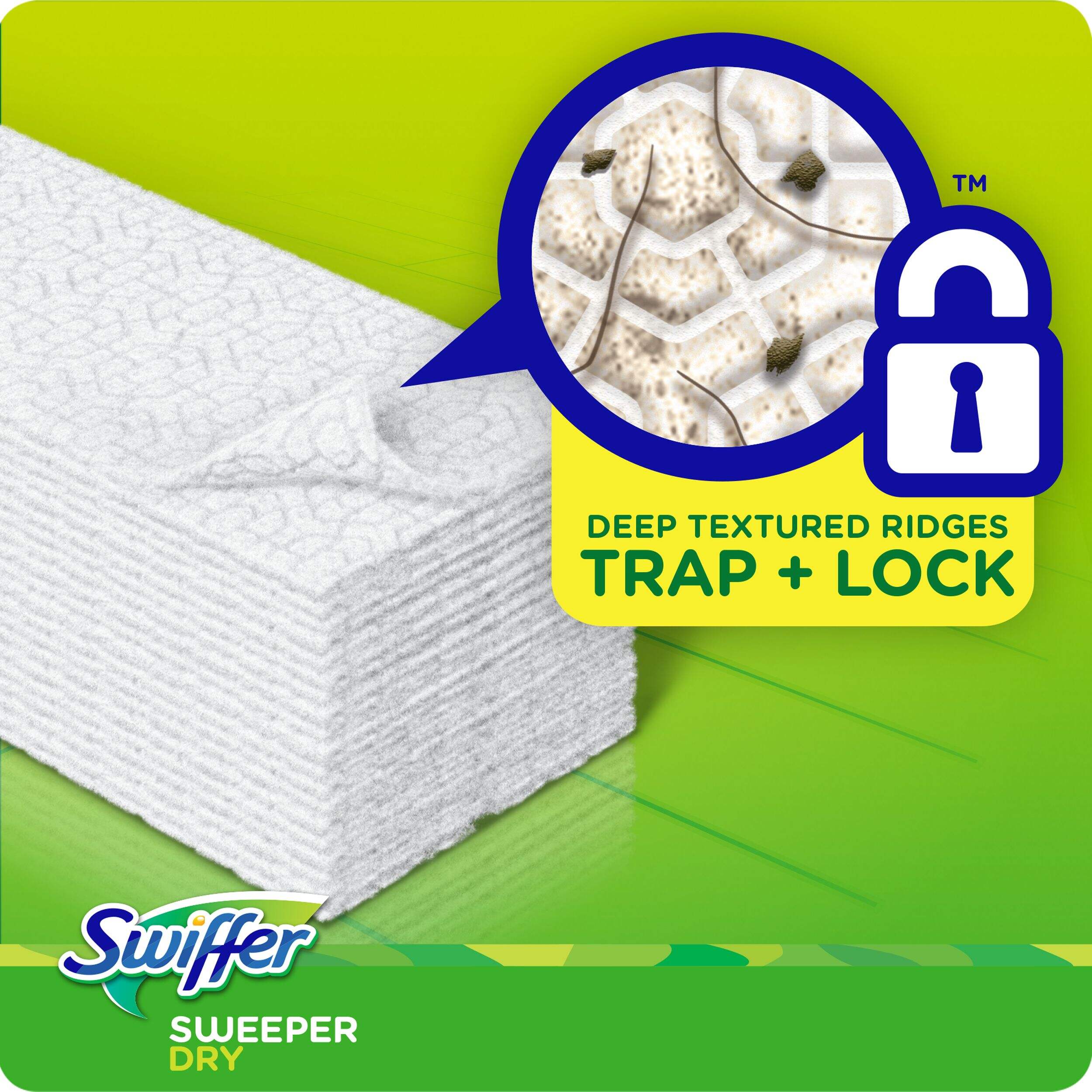 • Swiffer Sweeper Multi-Surface dry sweeping cloth refills have deep textured ridges that TRAP + LOCK dirt, dust, hair and allergens to keep your floors clean and free of debris