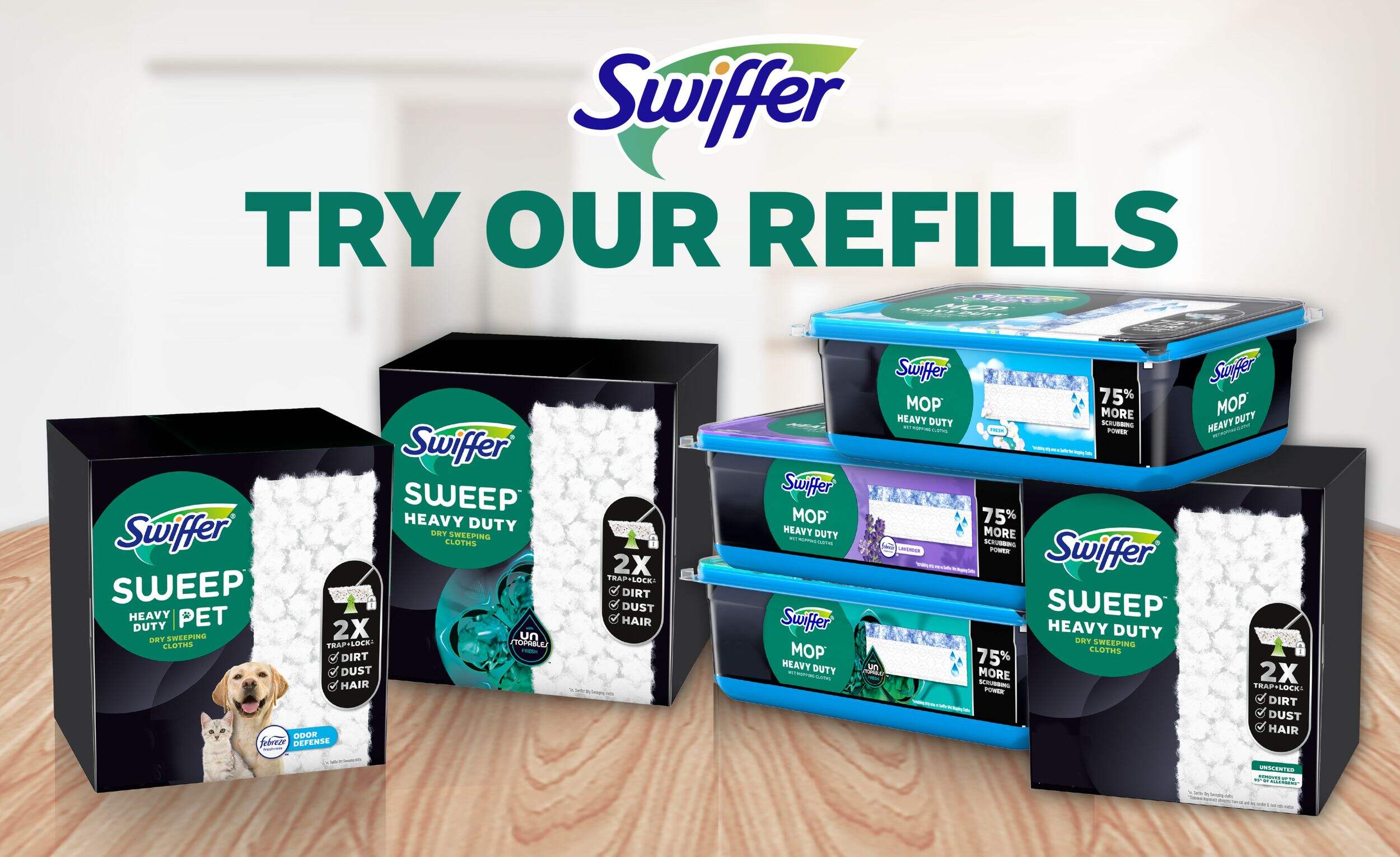 Refill packs come with a new and improved Heavy Duty Mop technology