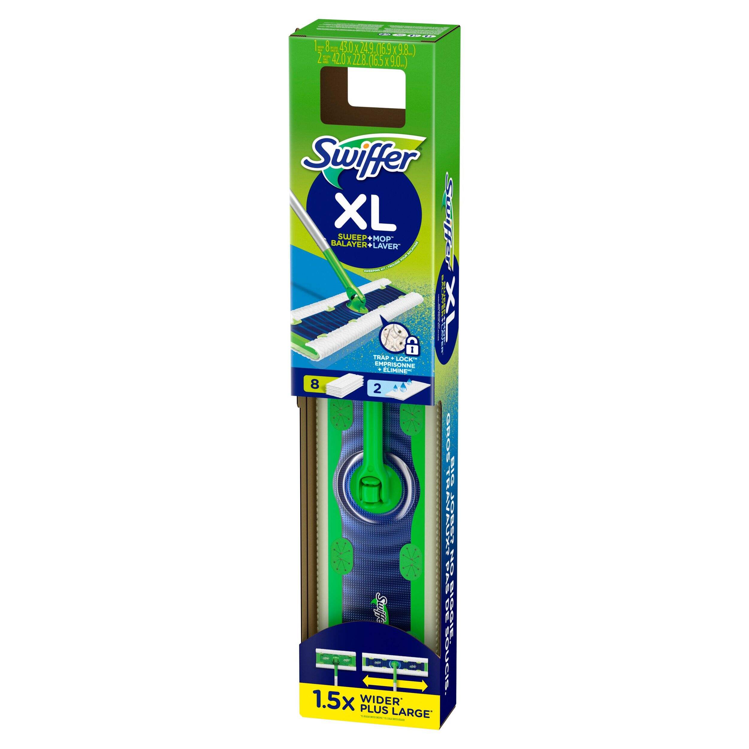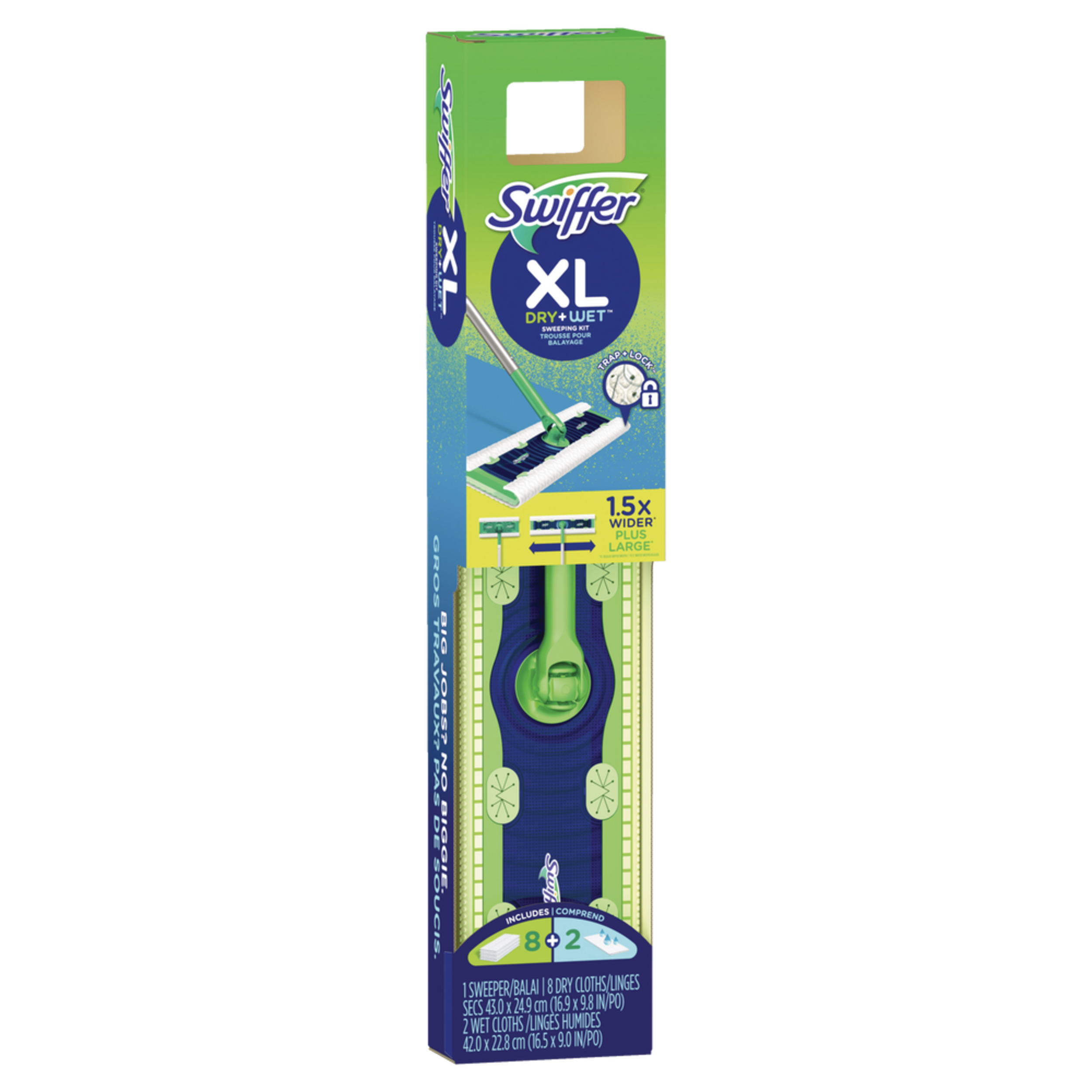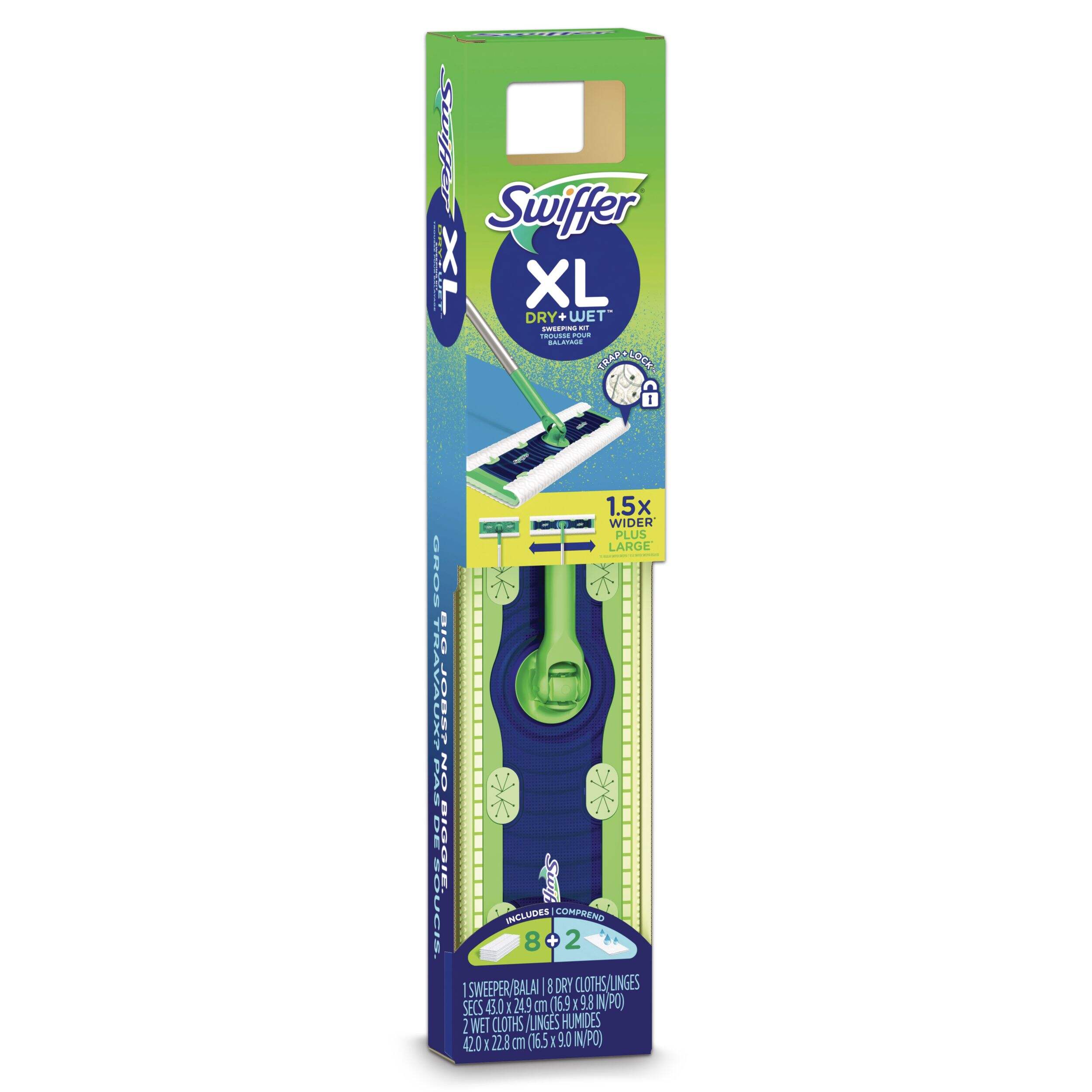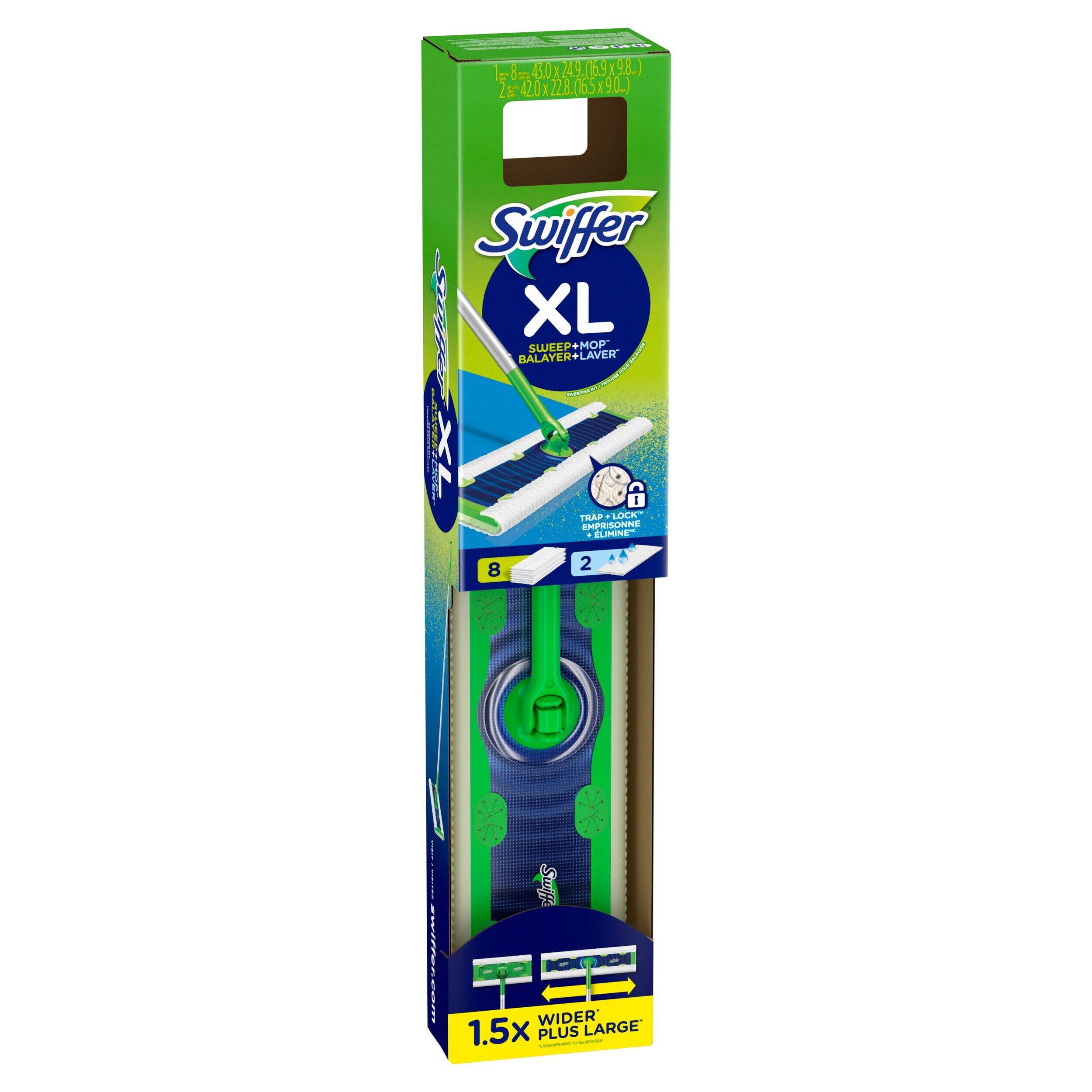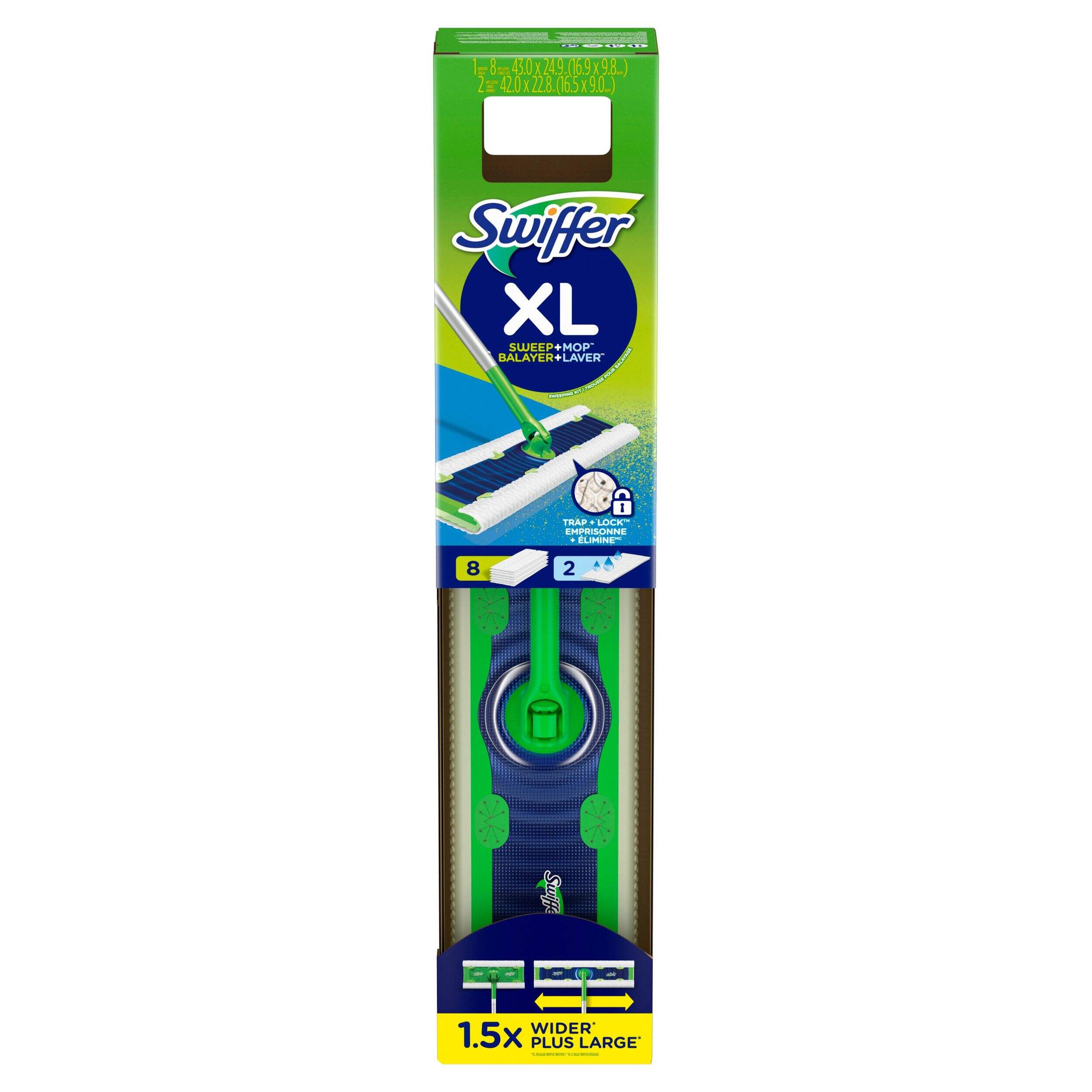 Experience the ultimate cleaning convenience with the Swiffer Sweeper XL 2-in-1 Dry + Wet Floor Mopping and Sweeping Kit. This innovative cleaning tool combines the functions of a broom and mop, making it easier than ever to maintain clean floors without the hassle of a dustpan or bucket. Assembling the sweeper is a breeze—simply click the poles together and attach the cloth. Plus, the swivel head makes it easy to reach tight corners and under furniture, ensuring no spot is left untouched.