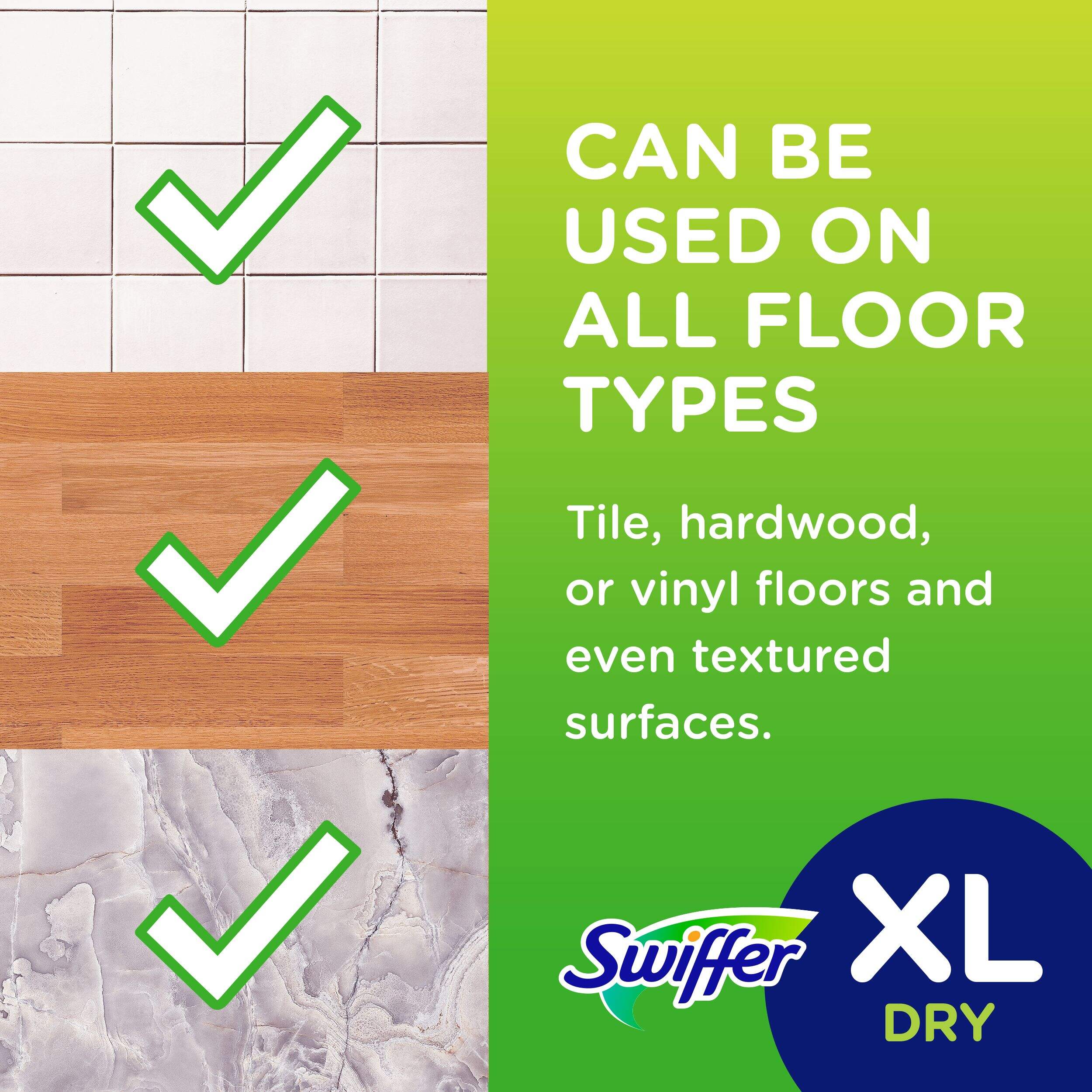 Swiffer Sweeper X-Large is 1.5X wider than our regular Swiffer Sweeper. It picks up even more dirt, dust and hair with each swipe. Using thick dirt-grabbing ridges and grooves, our powerful dry sweeping cloths leave your floors cleaner than a broom, even on textured surfaces.