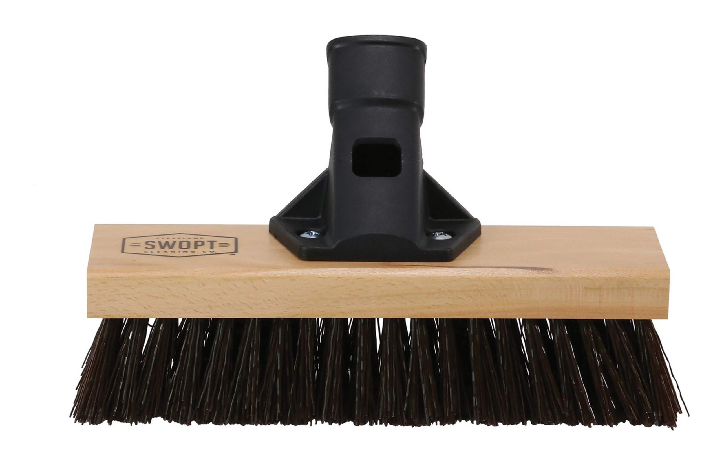 The SWOPT 10" Premium Rough Surface Deckbrush is part of Cleaveland Cleaning's interchangeable cleaning system. This deck brush features SNAPLOCK Technology, which allows it to be 'SWOPT' with the push of a button! Stiff bristles provide heavy-duty scrubbing power over rough and textured surfaces.