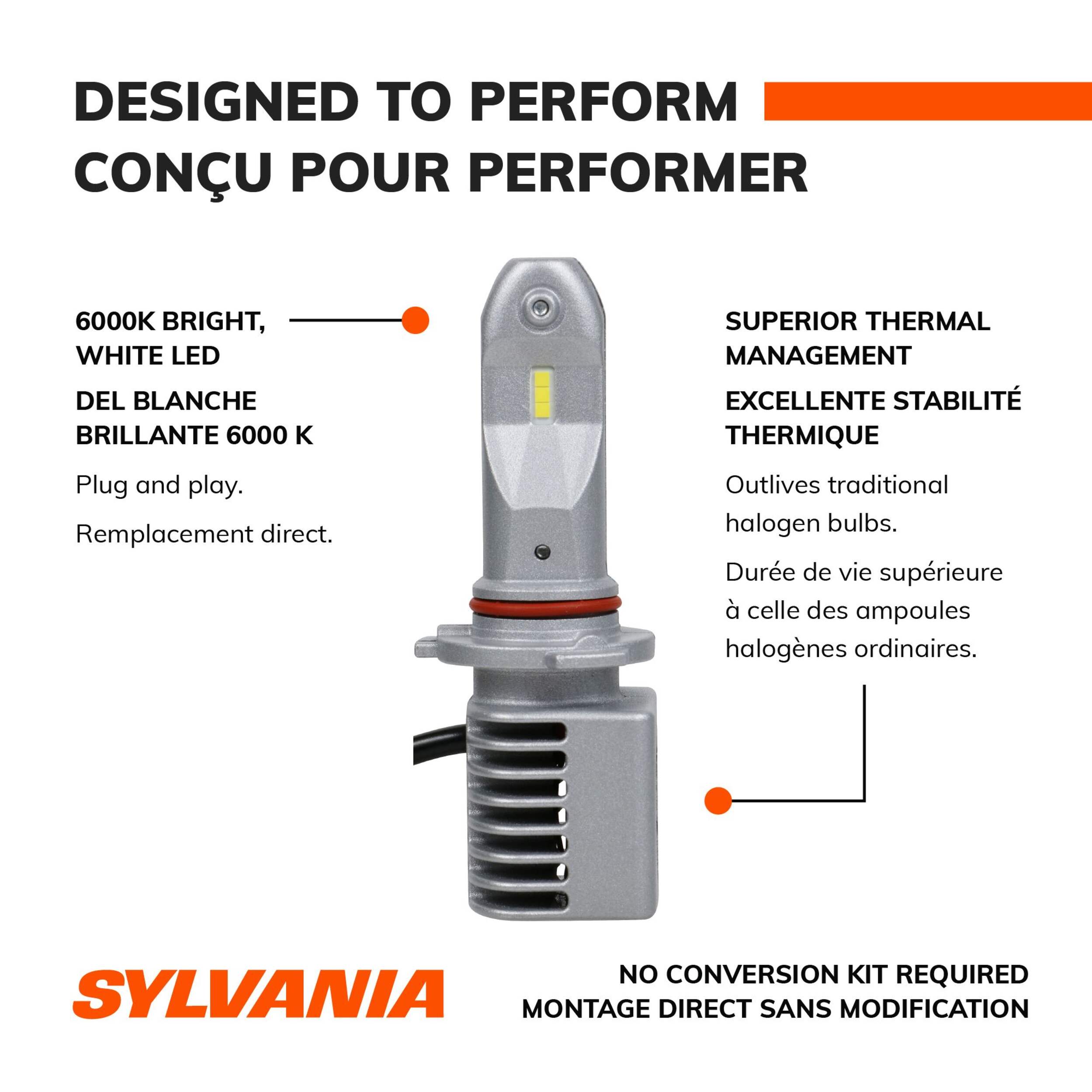 Upgrade to Sylvania's ZEVO® 9005 LED low beam headlights for a night-and-day difference in visibility. These ultra-bright 6000K cool white LED headlights are a direct plug-and-play replacement for your existing halogen bulbs with no conversion kit required. Featuring robust LED construction with no fragile filaments or glass to break, Sylvania's ZEVO® LEDs are engineered for durability, longevity, and consistent bright white light output to help you see potential hazards sooner and drive with more confidence at night.