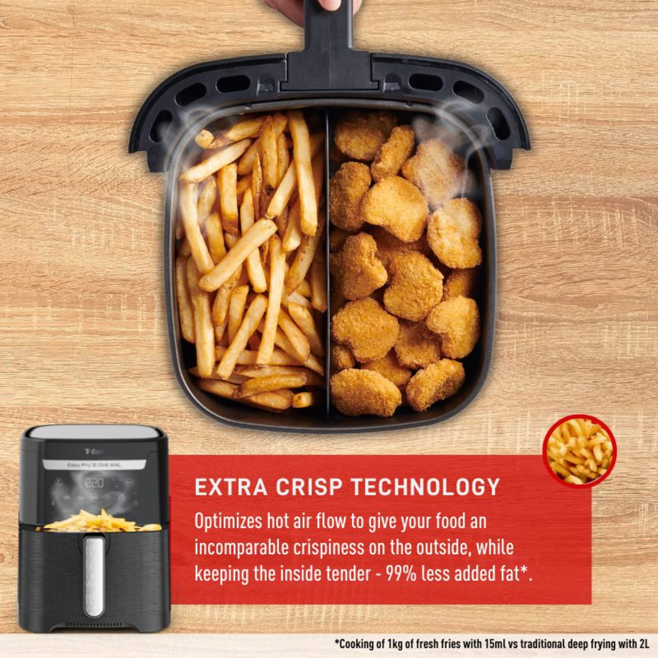 Air fry with extra crisp technology (99% less added fat*)