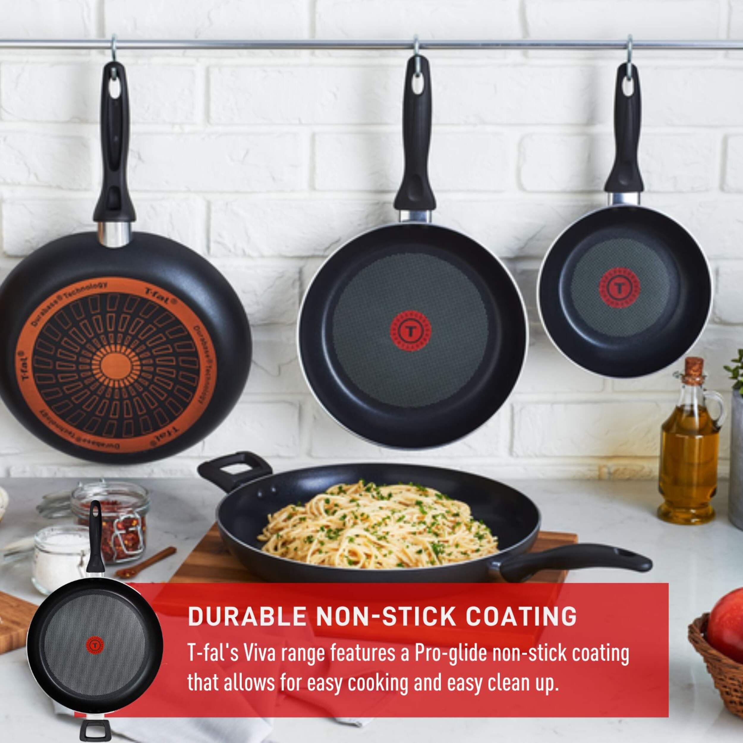 T-Fal's Giant Aluminum Frying Pan is designed for cooking and cleaning ease, ensuring reliable results when preparing meals for the whole family. This 34 cm pan enables healthy cooking with little to no oil, making it perfect for a variety of dishes, such as searing steaks and sautéing vegetables. Its even heat base allows for no hot spots, providing consistent cooking every time. Enjoy the convenience and performance of the T-fal Giant Frying Pan.