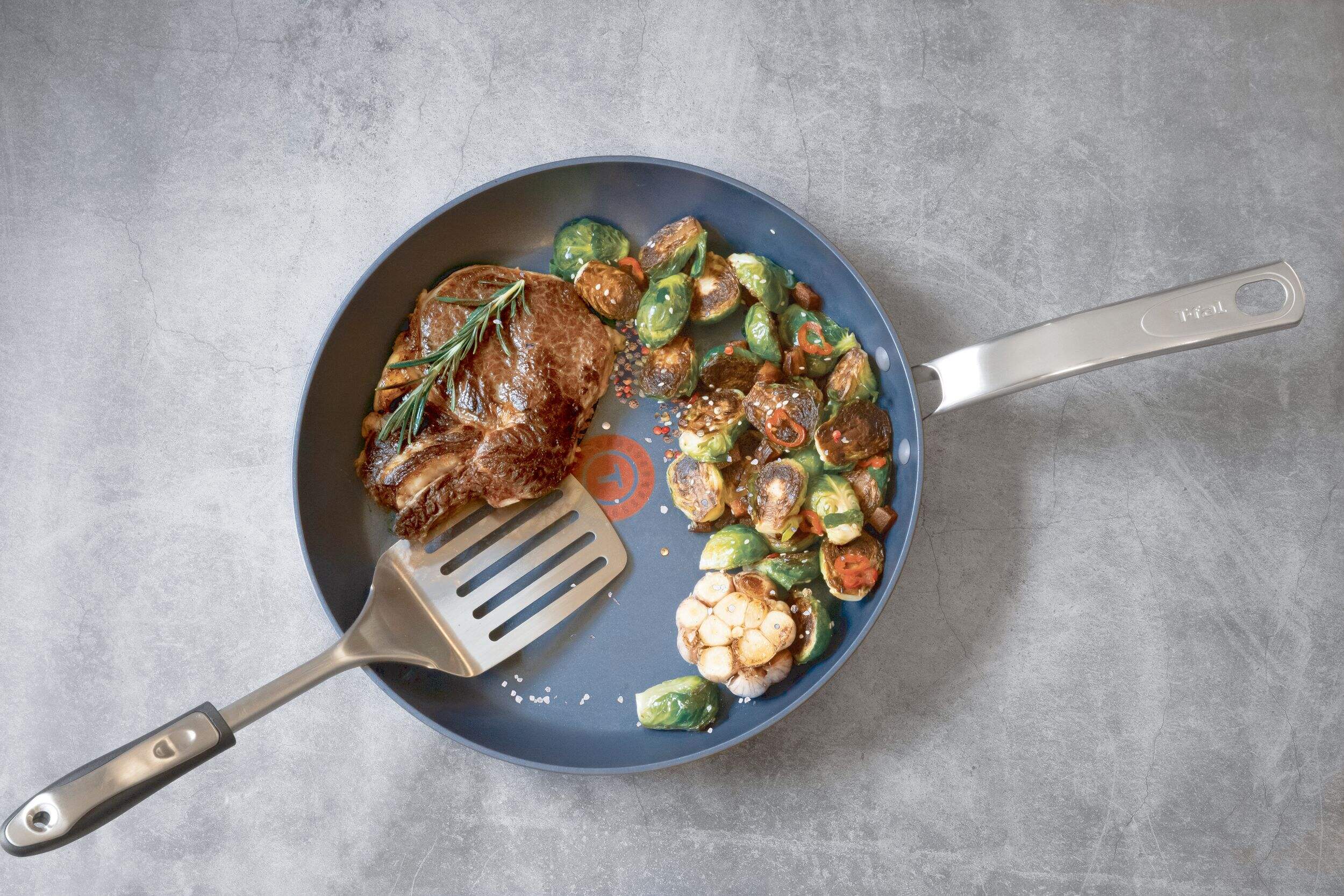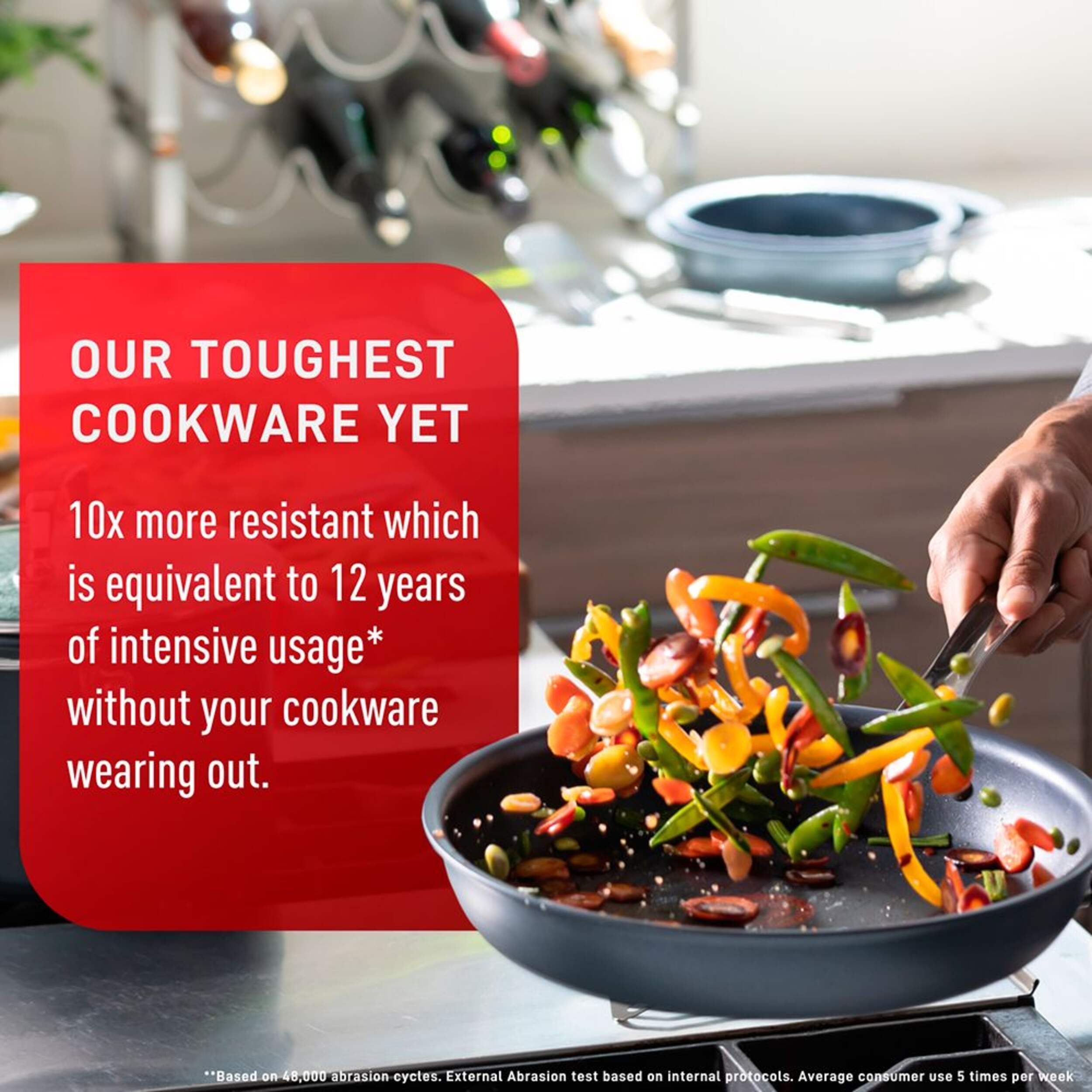 T-fal’s Platinum range is Canada’s longest-lasting non-stick *. It includes unique multilayer Platinum Coating Technology that includes Quartz and is 10x more resistant, equivalent to 12 years of intensive usage** for all your everyday cooking needs without your cookware wearing out* Based on abrasion and non-stick external testing done vs top 10 branded non-stick aluminum competitor pans average price of $49.99 (standard aluminum non-stick category only and excluding private labels). 2020 Independent volume data. **Based on 48,000 abrasion cycles. External Abrasion test based on internal protocols. Average consumer use 5 times per week