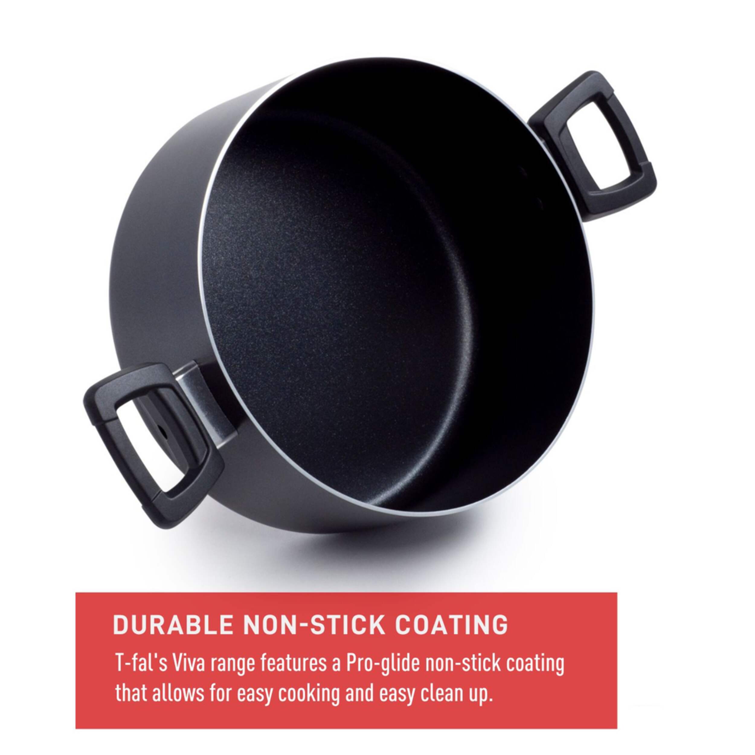 T-fal's Viva range brings you useful cookware pieces that are suitable for an endless range of dishes, including this convenient T-fal Viva Dutch Oven. The Dutch oven’s smooth non-stick coating allows healthier cooking and quick cleaning. Its handy ergonomic Bakelite riveted handles ensure a steady and comfortable grip. This Dutch oven is safe for both the dishwasher and the oven, up to a temperature of 350°F (175°C).