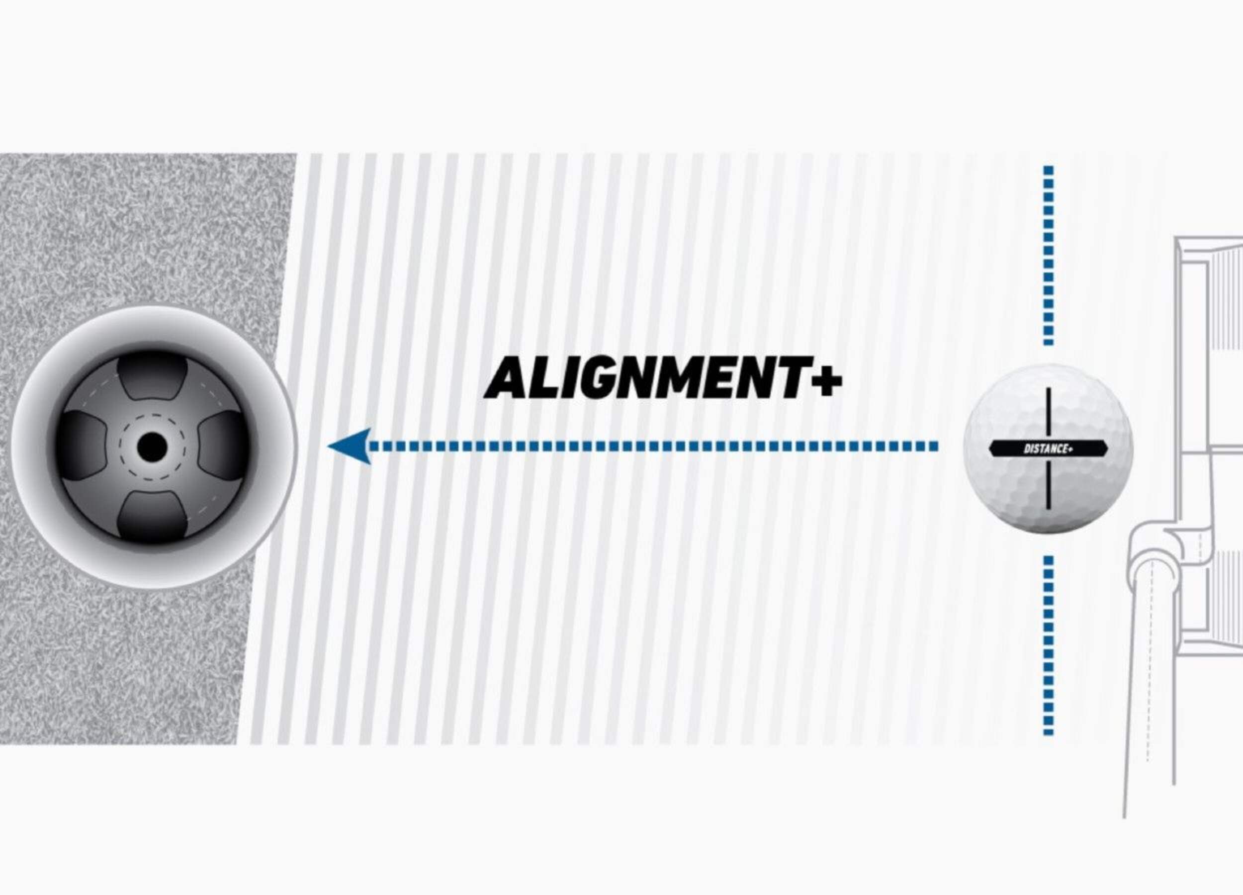 A new easy-to-use alignment aid is built directly into the Distance+ side stamp, helping you line up putts while providing feedback on how you roll the golf ball