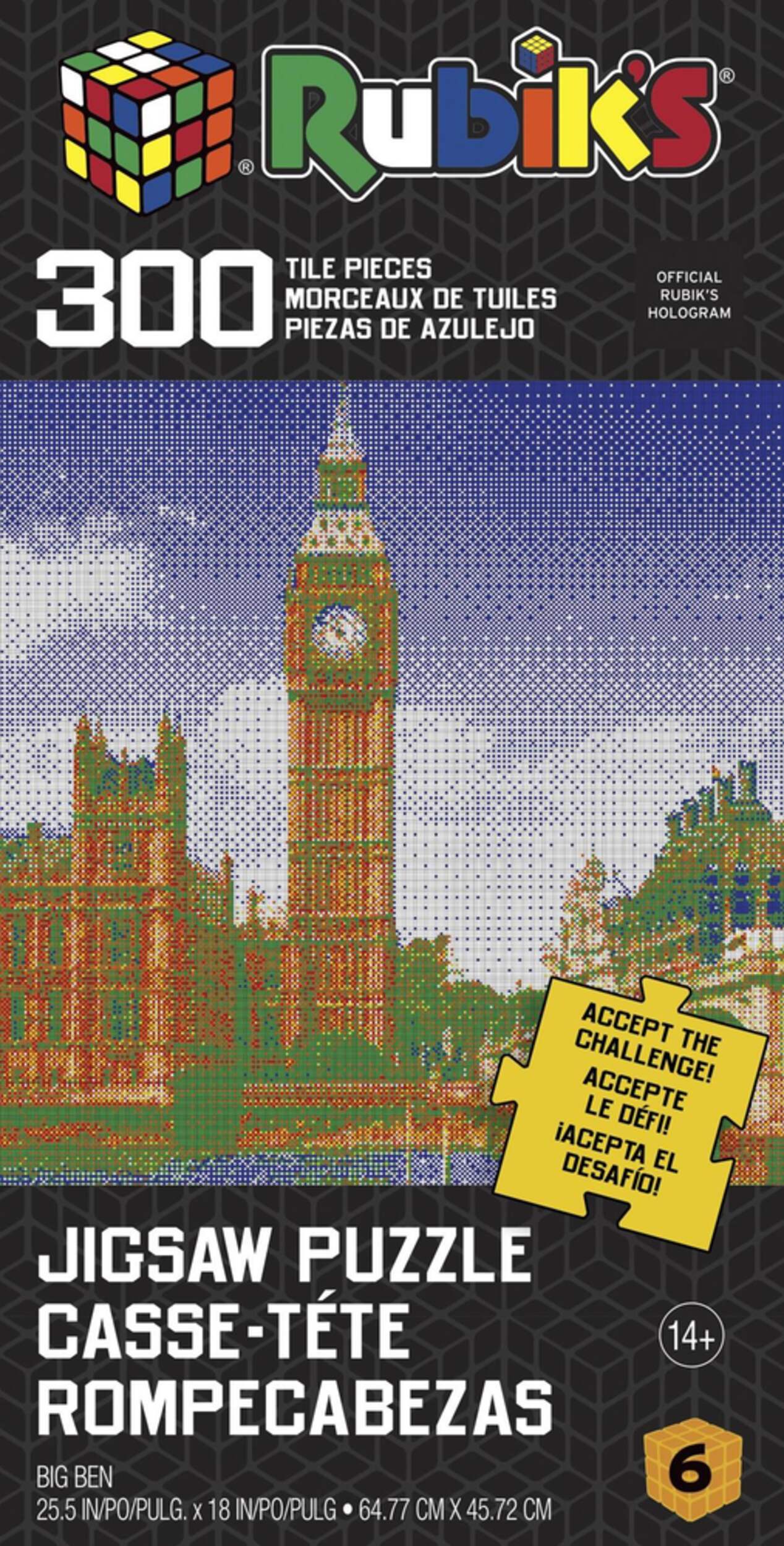 Will you dare to take the Rubik's™ challenge? Each puzzle has a difficulty rating call out on the box based on the Rubik's™ challenge level. Available in assortment of 200 and 300 piece counts.