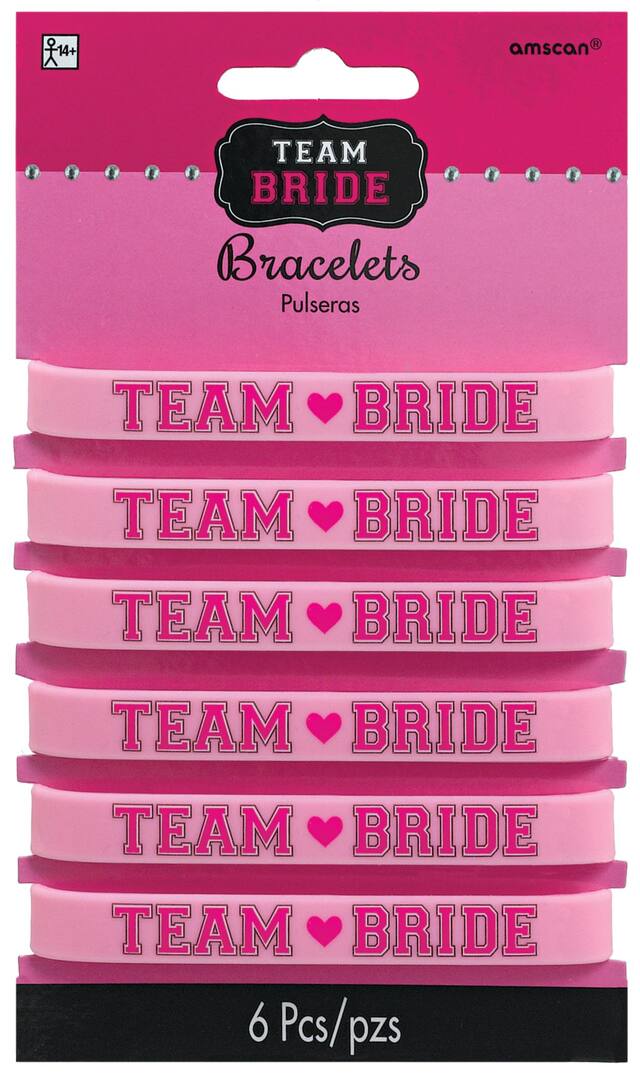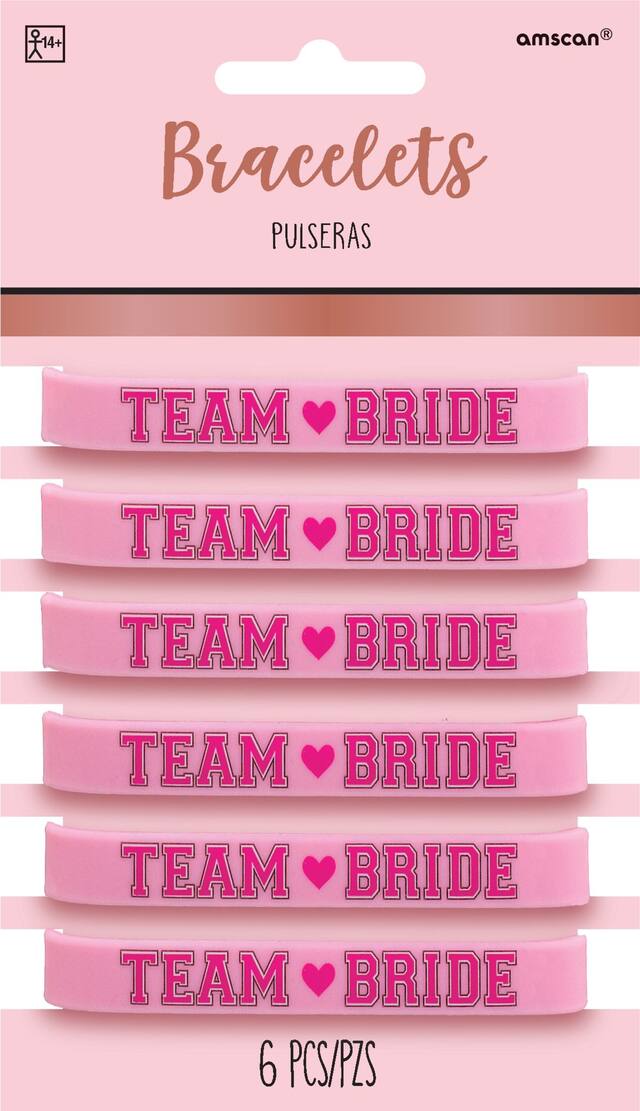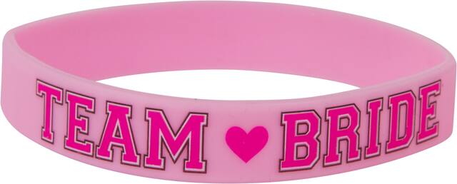 Show your support for the bride-to-be with our Team Bride Wristbands! These pink rubber bracelets feature a heart between the words "TEAM" and "BRIDE"