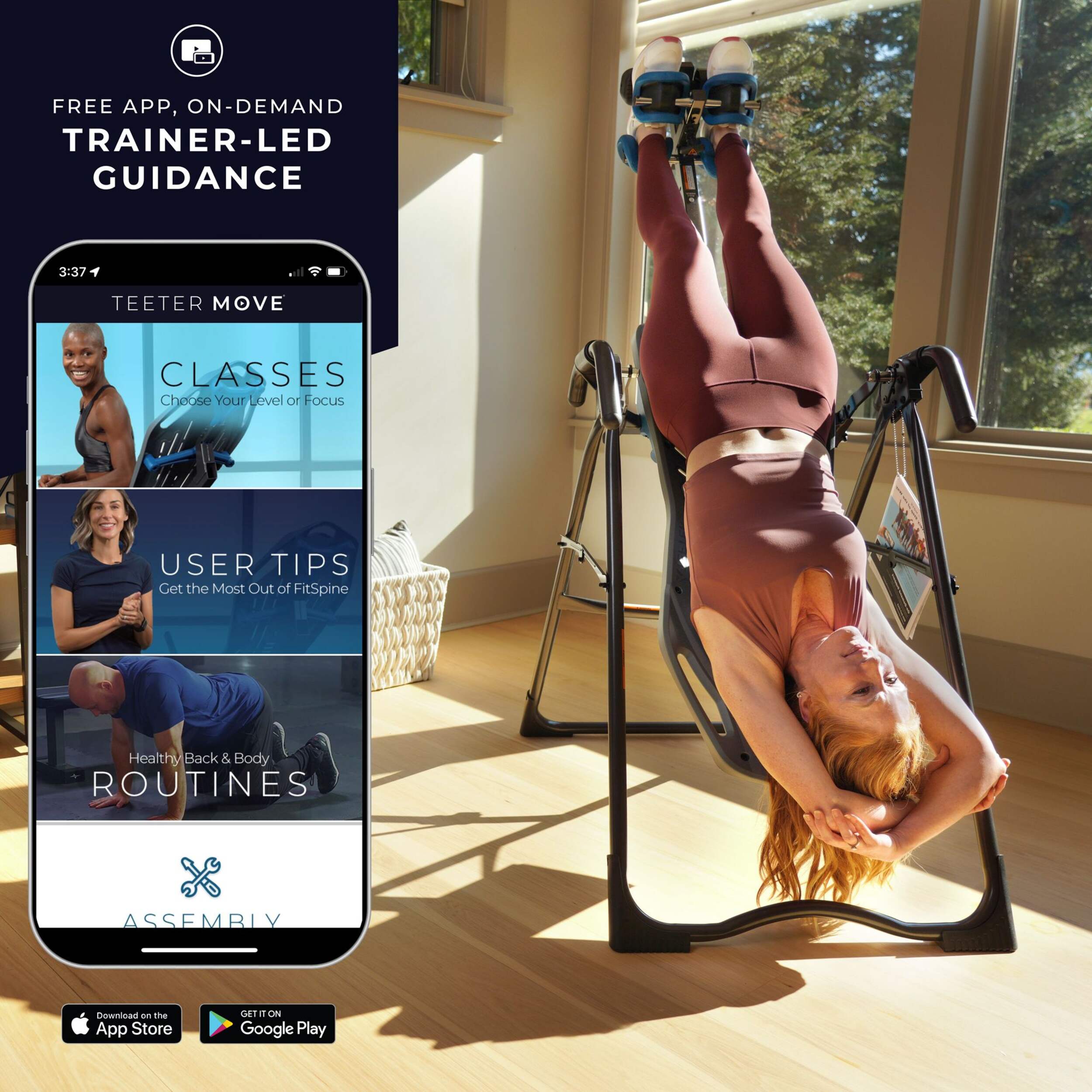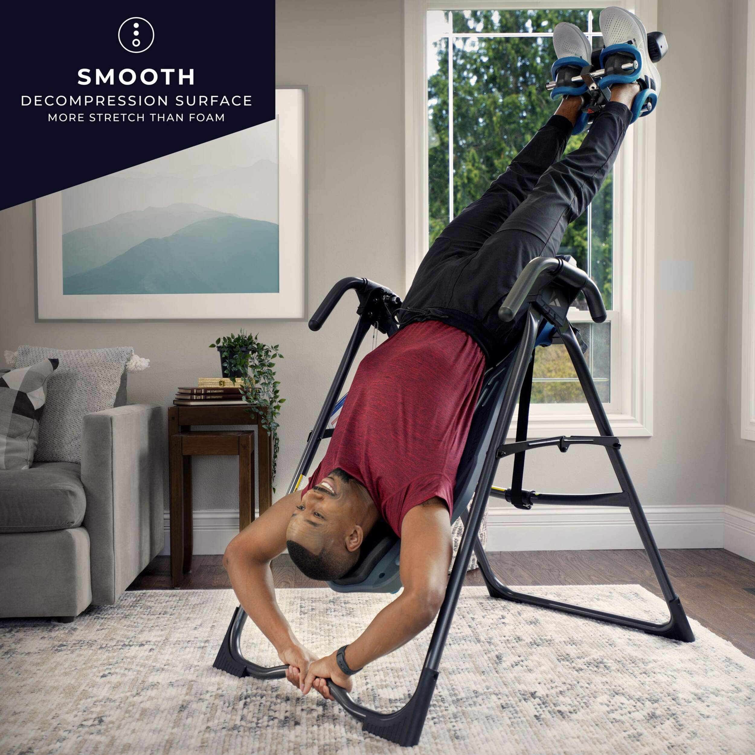 The Teeter FitSpine XT 1 Inversion Table offers a natural, effective solution for relieving back pain and enhancing flexibility. Designed for comfort and support, this inversion table features a FlexTech™ bed that moves with your body, maximizing decompression and stretching. With adjustable angles and ergonomic ankle supports, the FitSpine XT 1 provides a customized, secure experience, making it ideal for at-home therapy. Perfect for individuals seeking relief from back pain or tension, the Teeter Inversion Table is a reliable and safe addition to any wellness routine.