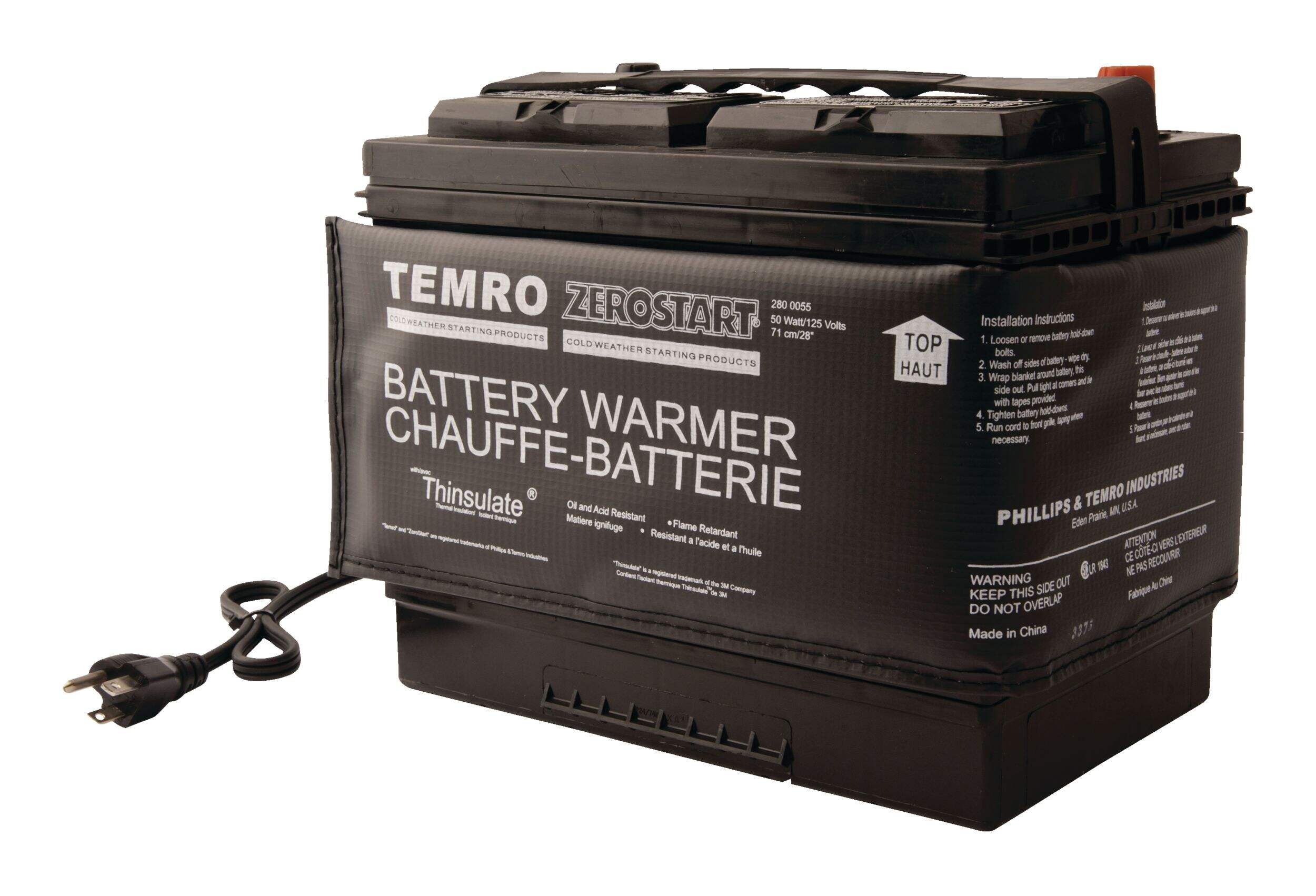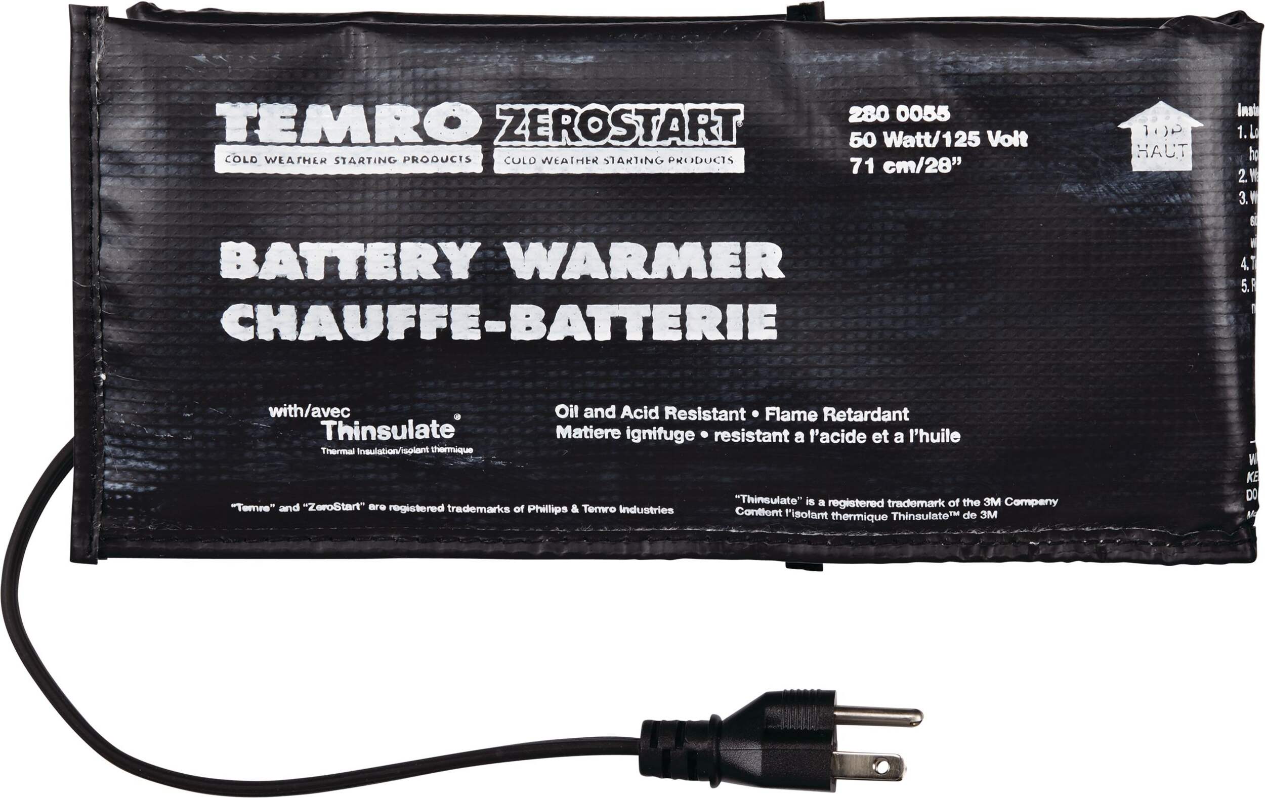 The Temro Zerostart 2800055 Battery Warmer/Blanket is an essential solution for maintaining battery performance in harsh winter conditions. Installation is simple—just lay the blanket over the battery and plug it in. The long power cord allows for flexible routing to nearby outlets, making it convenient to use. Designed for low maintenance and optimal functionality, this battery warmer is ideal for those who require their vehicles to start promptly every time.