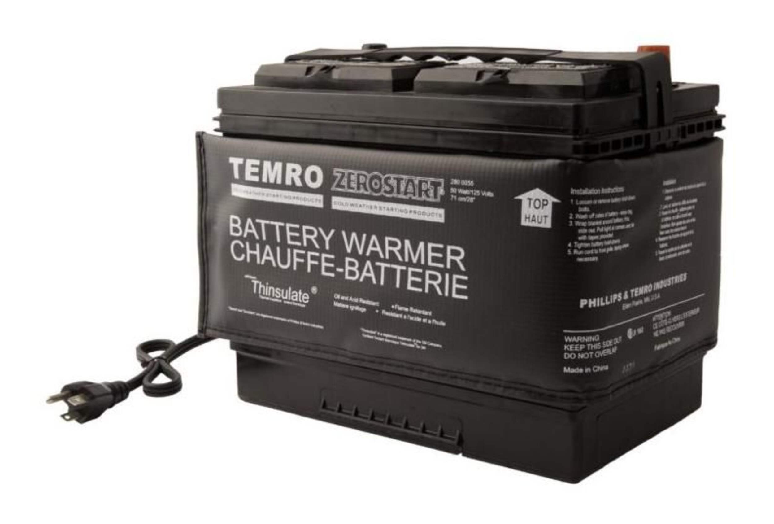 The Temro Zerostart 2800063 Battery Warmer/Blanket is a practical and durable solution for maintaining vehicle battery performance during winter months. This battery blanket is built to withstand harsh environments while providing protection. Ideal for older batteries needing assistance in cold weather or for extending the life of new ones, its straightforward installation makes this battery warmer a convenient and reliable choice.