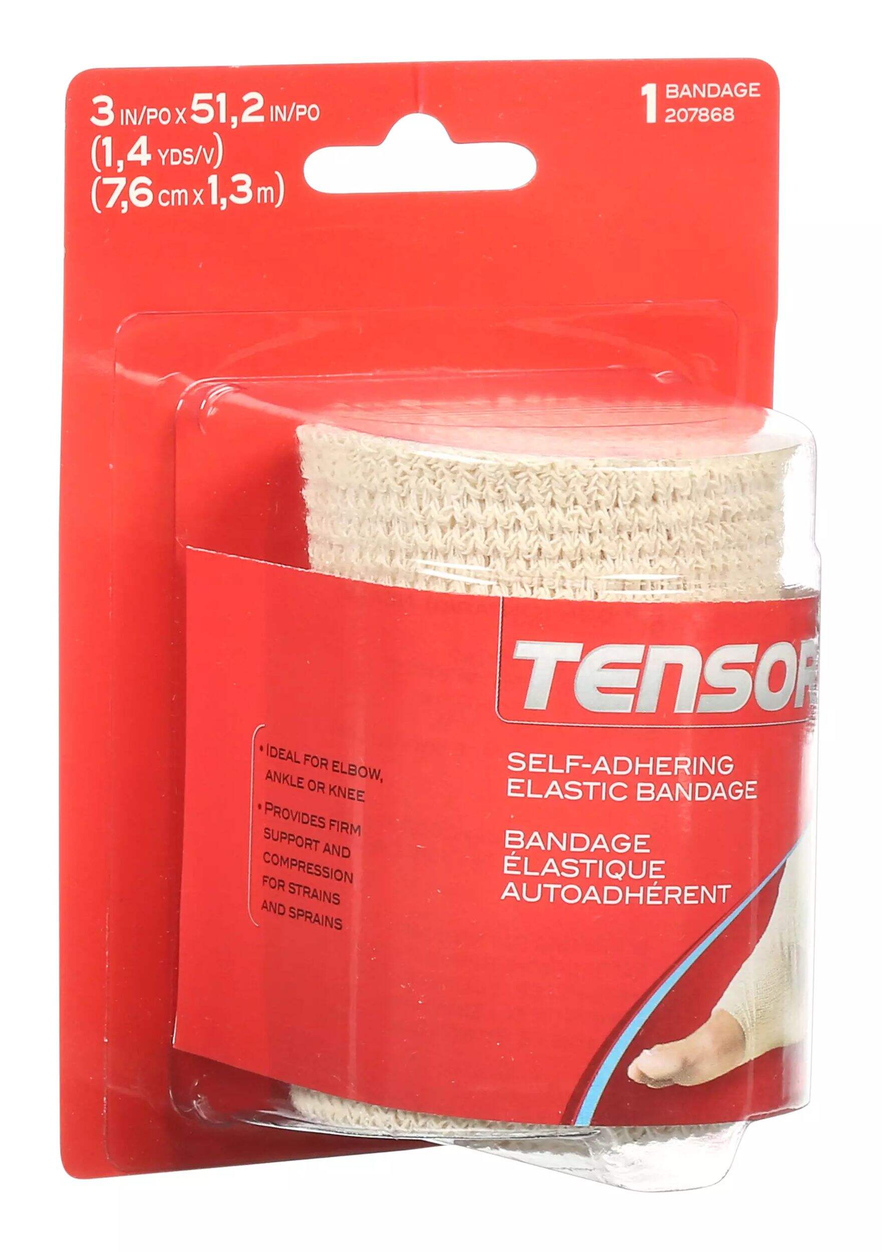 Tensor Self-Adhering Elastic Bandage needs no clips or fasteners and is designed to provide comfortable support for extended periods of time