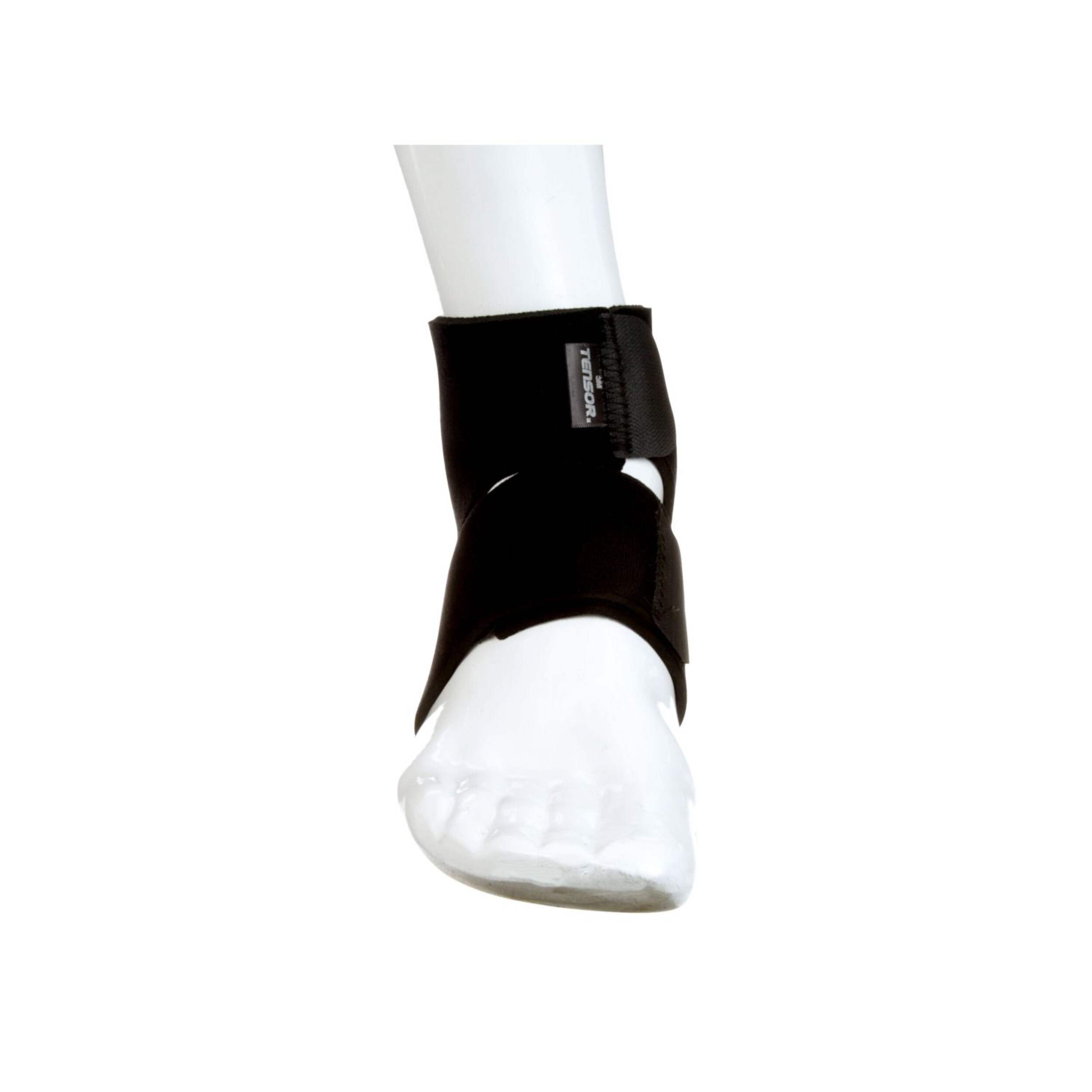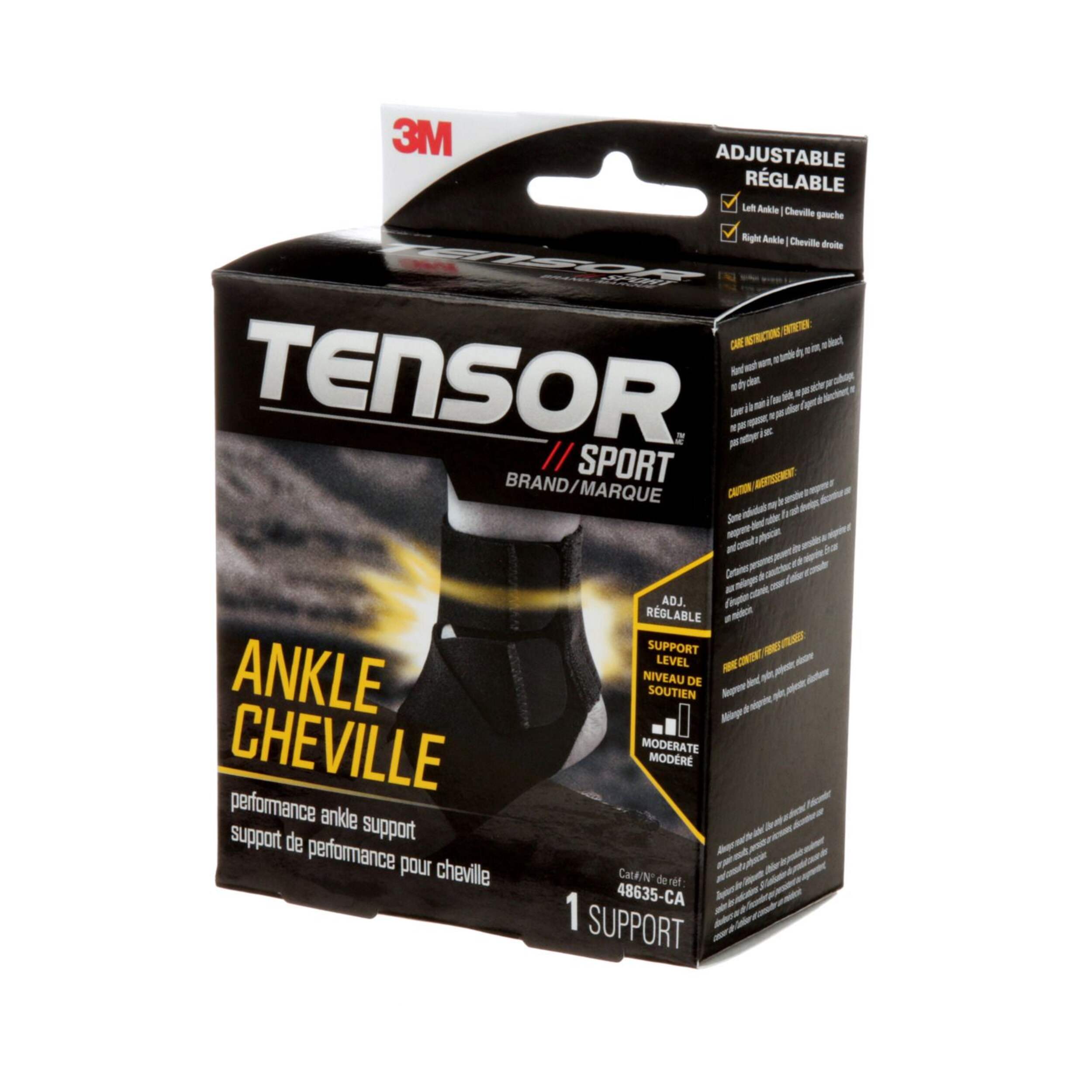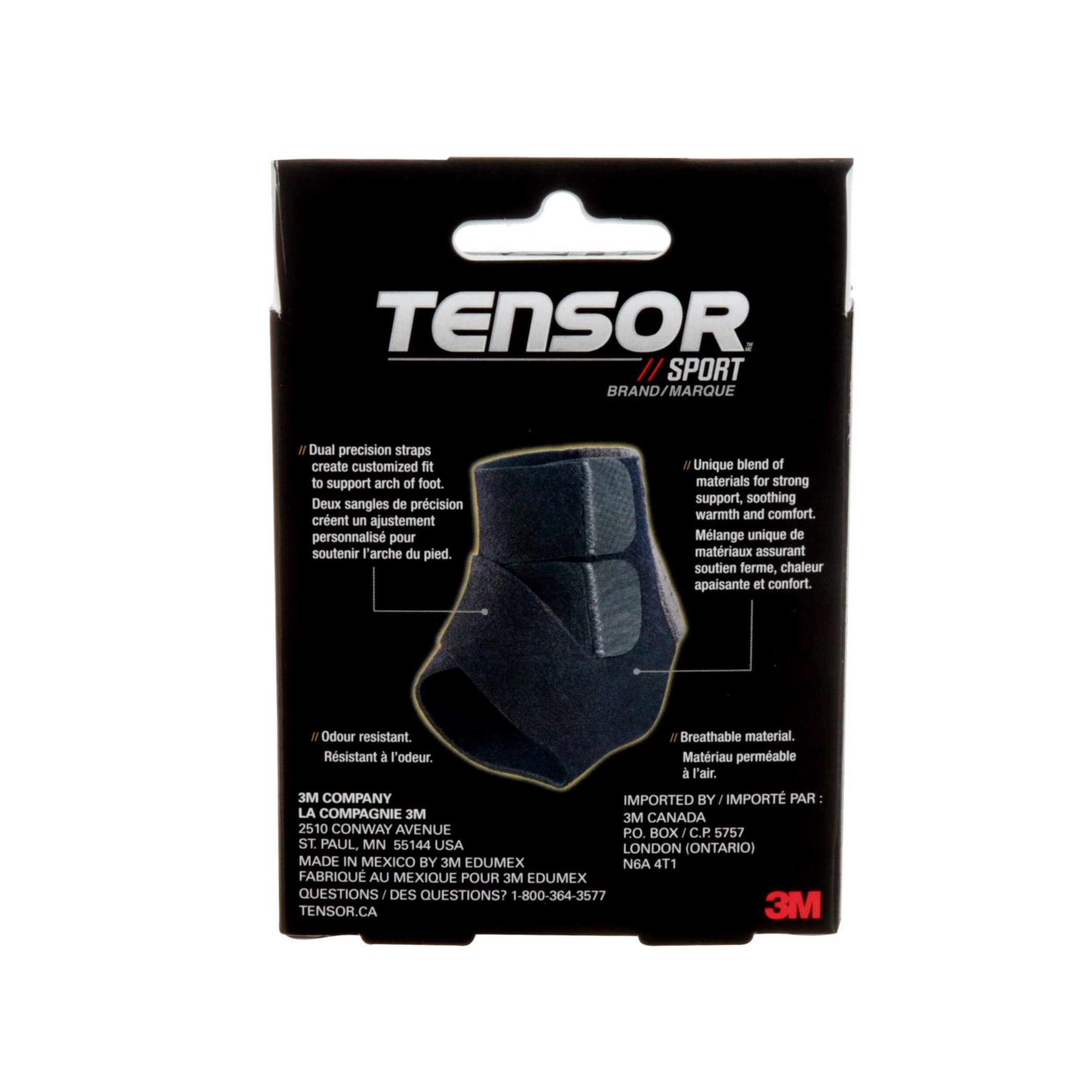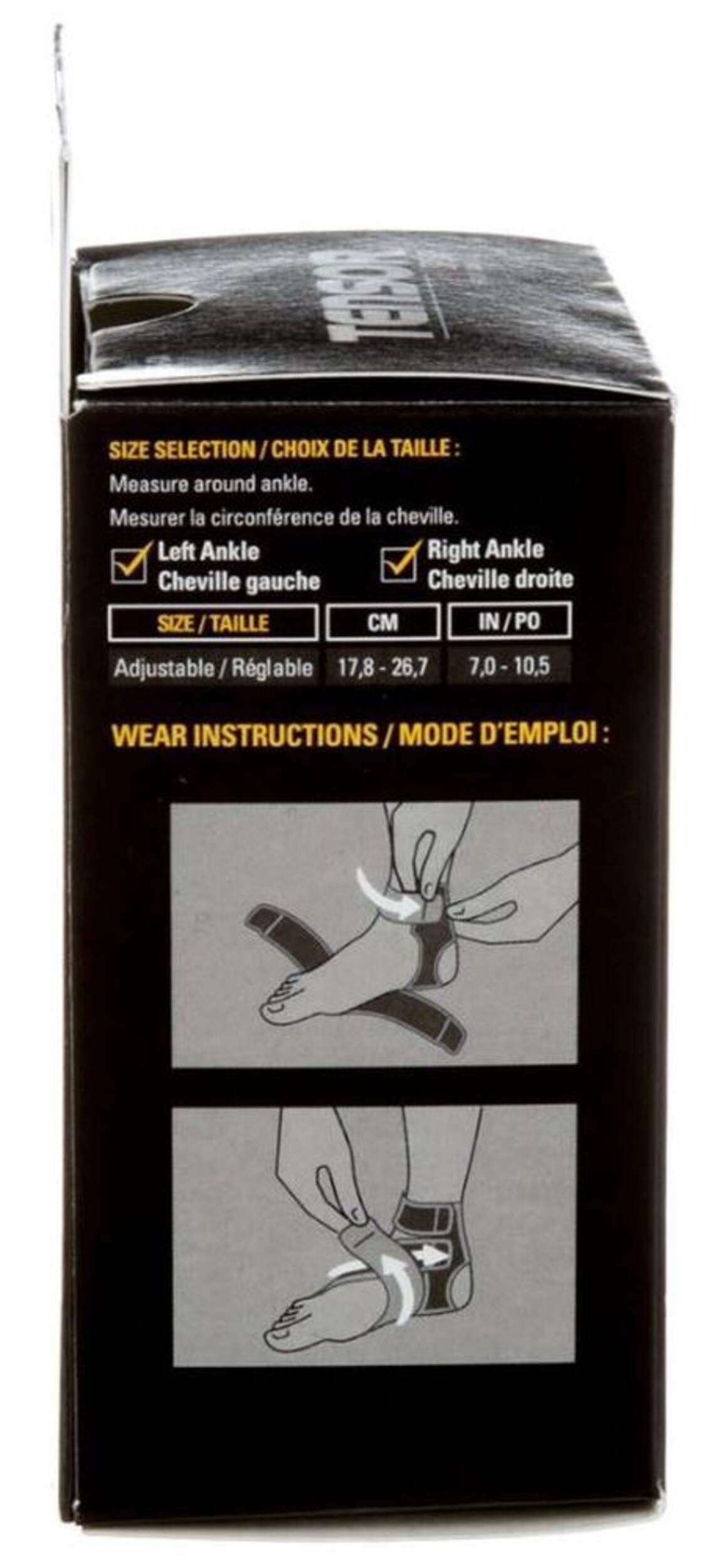 The Tensor Sport Ankle Support in black is designed to keep you dry and focused on your movements. Its unique design allows for customizable levels of moderate compression and support. The adjustable straps provide lift and support around the arch, aiding stiff, sore, weak, or injured ankles. Featuring breathable, moisture-wicking construction, it allows air to circulate, keeping skin dry. It can be worn on either ankle and fits comfortably with various footwear. Measurements for adjustable size are 7" - 10.5" and it is recommended to be worn with a sock for enhanced comfort. Do note that some may be sensitive to neoprene or neoprene-blend rubber.